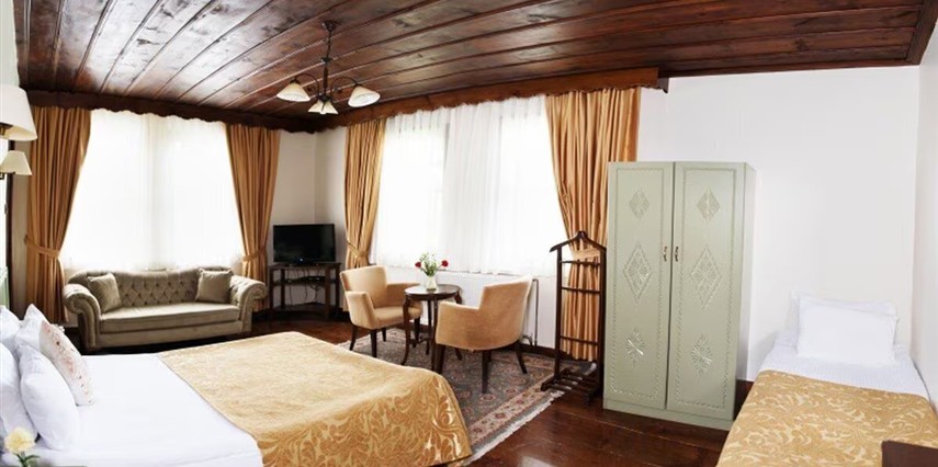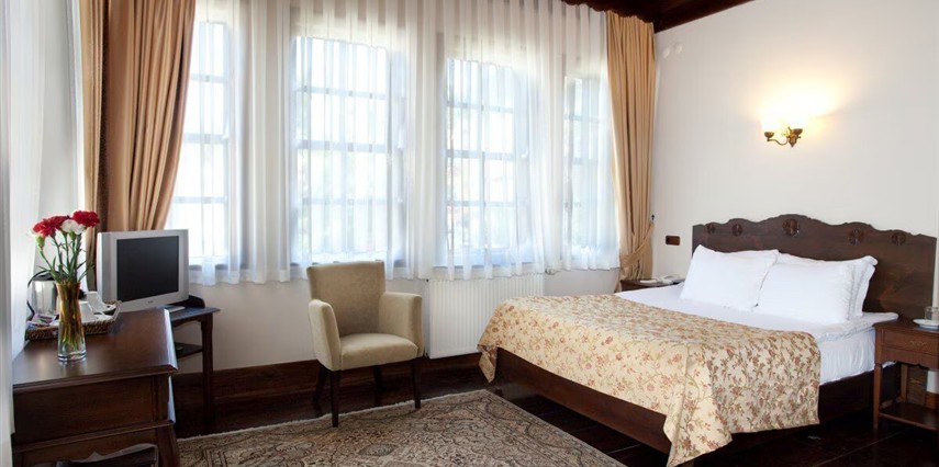 Daha Fazla GösterUğurlu Konakları, 2 tarihi bina ve bu binalarla uyumlu, modern bir binadan oluşan 35 odalı bir komplekstir. Kastamonu’nun kalbinde, tarihi dokunun ve doğanın büyüleyici atmosferinin buluştuğu Uğurlu Konakları, misafirlerine eşsiz bir konaklama deneyimi sunuyor. Yeşilliklerle çevrili iki dönümlük geniş bahçesi, şehre hâkim kale manzarası ve üç tarihi binasıyla Uğurlu Konakları, adeta bir zaman yolculuğuna çıkartıyor. Kastamonu’nun köklü geçmişini keşfederken, konaklarımızın rahat odalarında tarihle iç içe bir konaklama imkânı bulacaksınız. Odalarımızda, çam ağaçlarının ferahlatıcı kokusu eşliğinde huzur bulacak, tarihi Kastamonu’nun zarafetini her köşede hissedeceksiniz. Şehirde geçirdiğiniz keyifli bir günün ardından, kale manzarasına karşı içkinizi yudumlamak, ziyaretinize unutulmaz bir tat katacak. Kastamonu mutfağının en özel lezzetleri ise bu deneyimi taçlandıracak. Uğurlu Konakları, sadece bir konaklama yeri değil, aynı zamanda şehri tüm ruhuyla hissetmenizi sağlayacak özel bir durak.