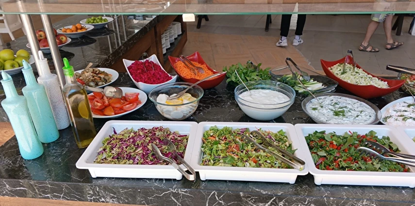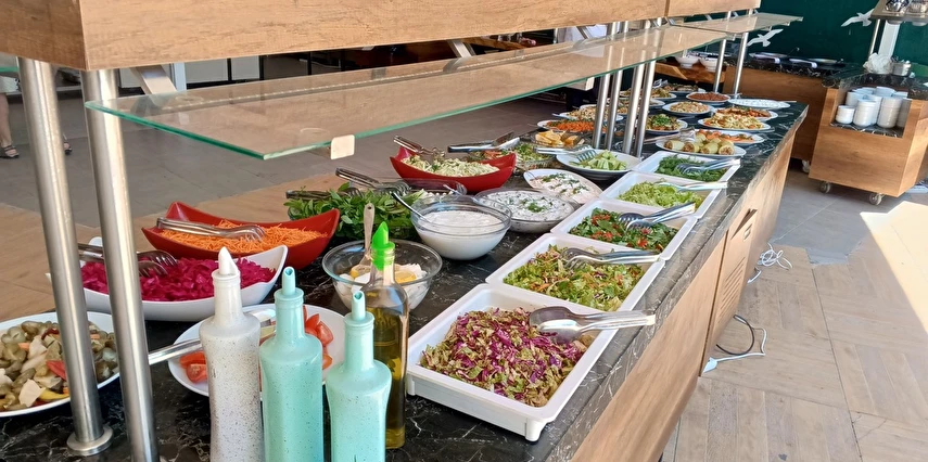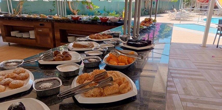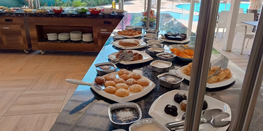 Kahvaltı: 07:00 – 09:30 Sahra Ana Restaurant: Yöresel ve uluslararası mutfaklara ait lezzetler açık büfe olarak misafirlerinizin beğenisine sunulmaktadır.
