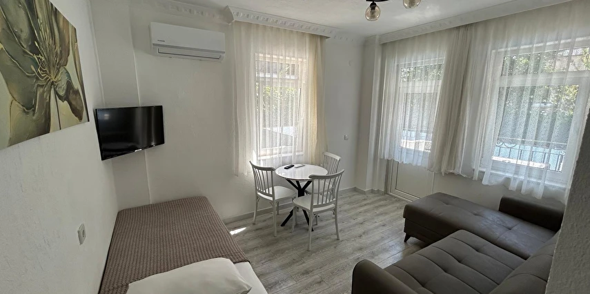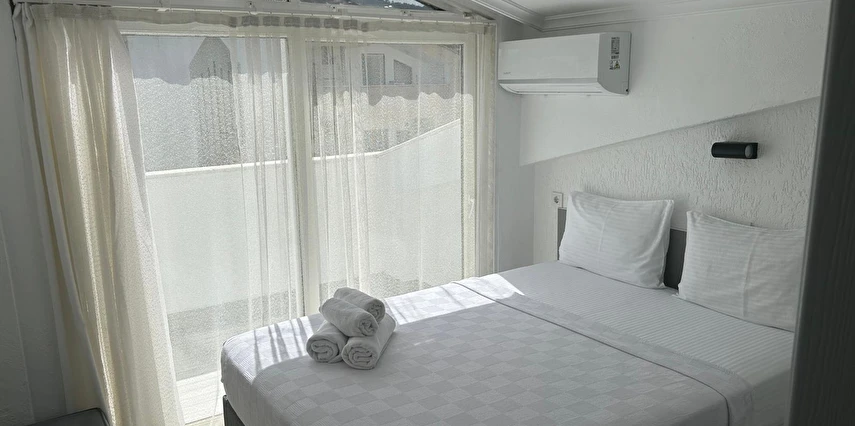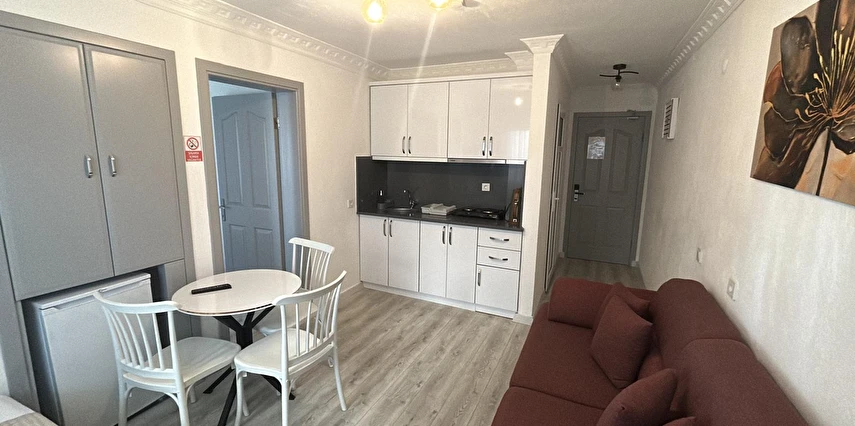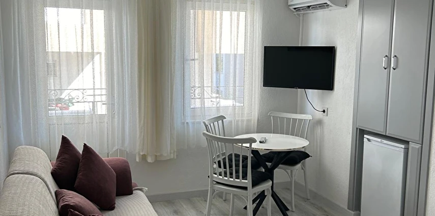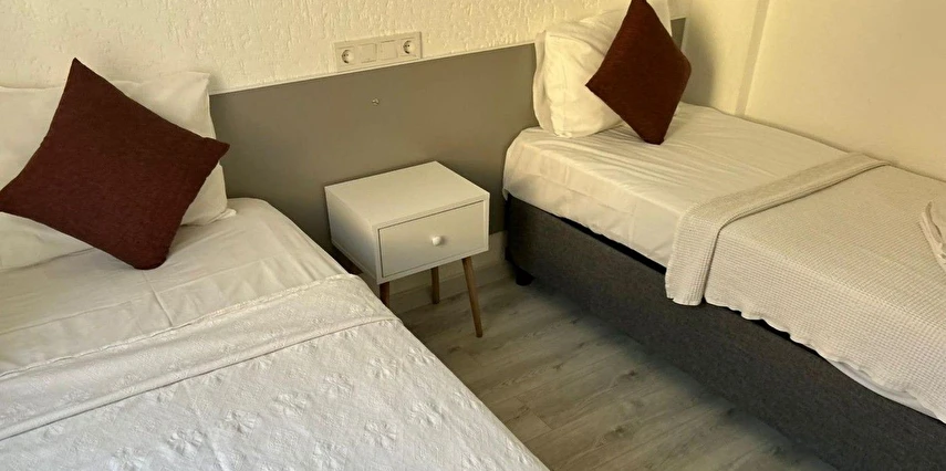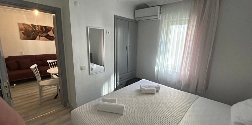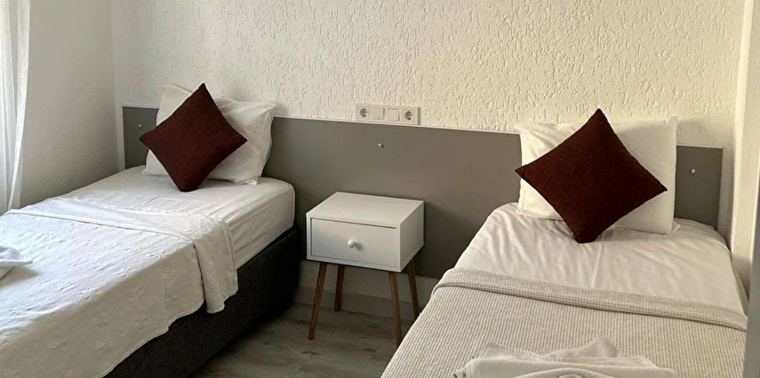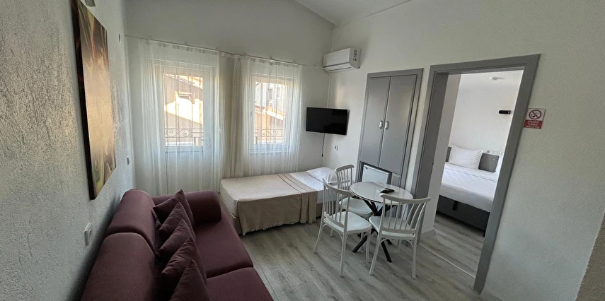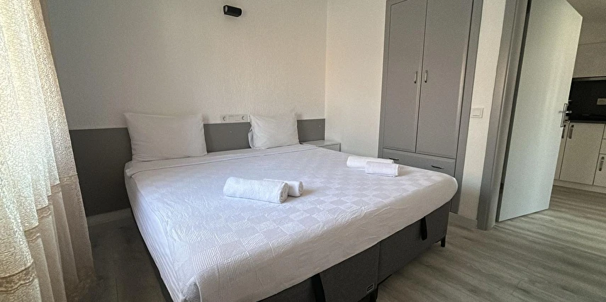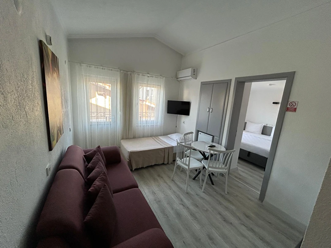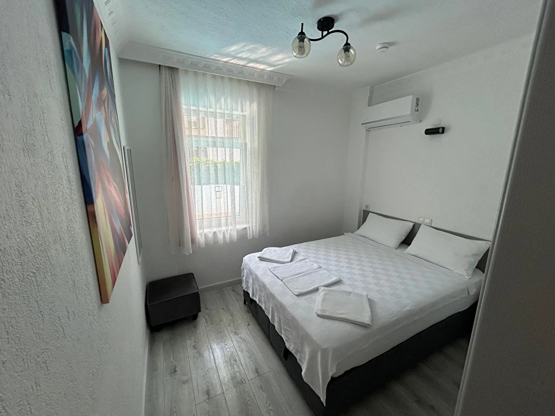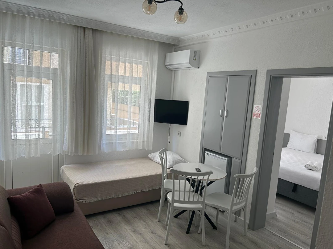 Tesisimiz 2024 ve 2025 yıllarında yenilenen 16 adet 1+1 daireden oluşmaktadır. Aile oteli konsepti ile dizayn edilmiş otelimizde her dairede, 1 adet yatak odası, 1 adet açık mutfağa sahip yaşam odası, 1 adet banyo-WC bölümü ve balkon yer almaktadır. Otelimizin tüm dairelerinde yatak odasında ayrı, yaşam odasında ayrı olmak üzere, ses desibeli çok düşük, yeni nesil 2024 yılında hizmete alınan 2 adet oldukça sessiz klima mevcuttur. Çift klimalı sistem sayesinde yatak odasında ve yaşam odasında ayrı ayrı konfor ortamı sağlanmıştır. Dairelerimizdeki tüm yataklar çift kişiliktir. Daire büyüklüklerimiz 35m2, 40 m2 ve 45 m2 olmak üzere farklı tarzlarda dizayn edilmiştir. Otelimiz yüksek zemin kat, 1.kat, 2.kat ve çatı katından oluşmakta olup; merdivenleri geniş ve havadardır. Asansör bulunmamaktadır.