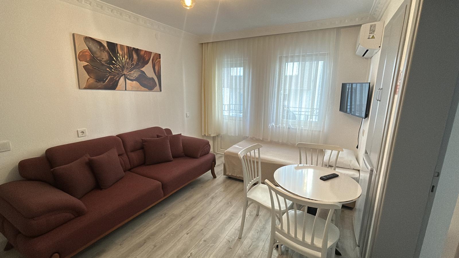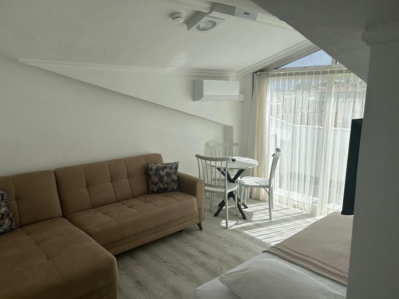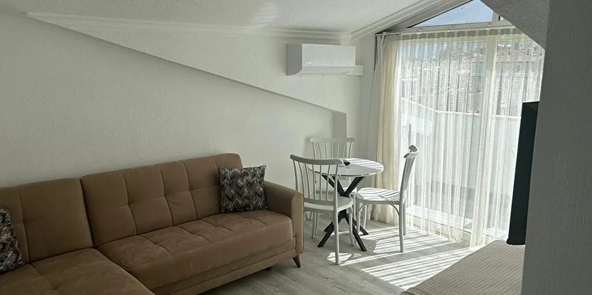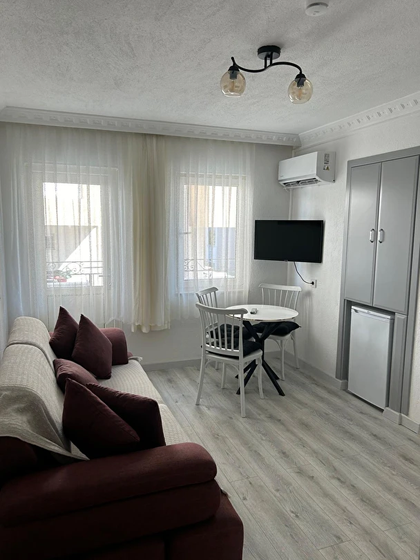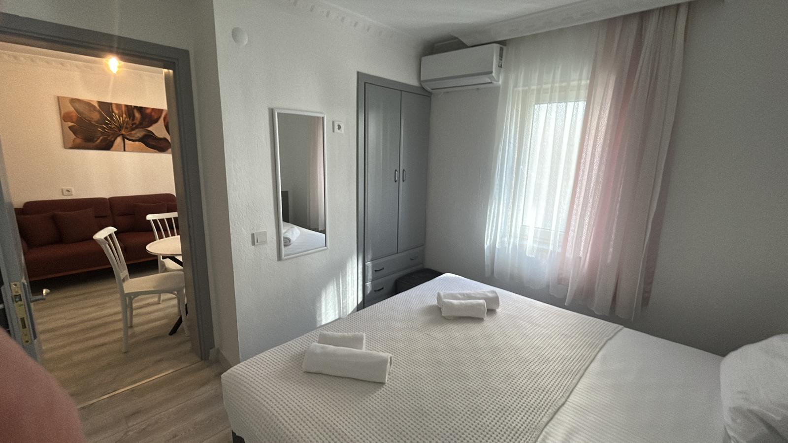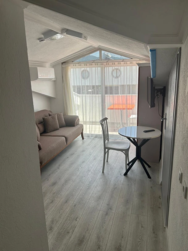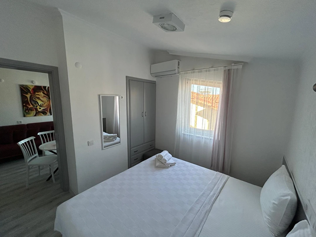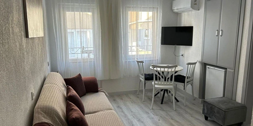Tesisimiz 2024 ve 2025 yıllarında yenilenen 16 adet 1+1 daireden oluşmaktadır. Aile oteli konsepti ile dizayn edilmiş otelimizde her dairede, 1 adet yatak odası, 1 adet açık mutfağa sahip yaşam odası, 1 adet banyo-WC bölümü ve balkon yer almaktadır. Otelimizin tüm dairelerinde yatak odasında ayrı, yaşam odasında ayrı olmak üzere, ses desibeli çok düşük, yeni nesil 2024 yılında hizmete alınan 2 adet oldukça sessiz klima mevcuttur. Çift klimalı sistem sayesinde yatak odasında ve yaşam odasında ayrı ayrı konfor ortamı sağlanmıştır. Dairelerimizdeki tüm yataklar çift kişiliktir. Daire büyüklüklerimiz 35m2, 40 m2 ve 45 m2 olmak üzere farklı tarzlarda dizayn edilmiştir. Otelimiz yüksek zemin kat, 1.kat, 2.kat ve çatı katından oluşmakta olup; merdivenleri geniş ve havadardır. Asansör bulunmamaktadır.