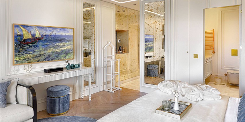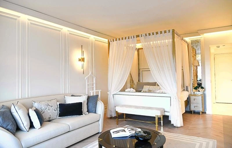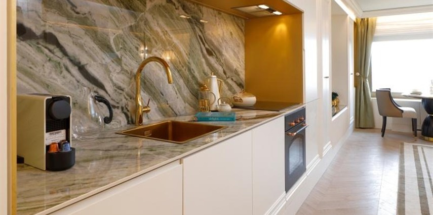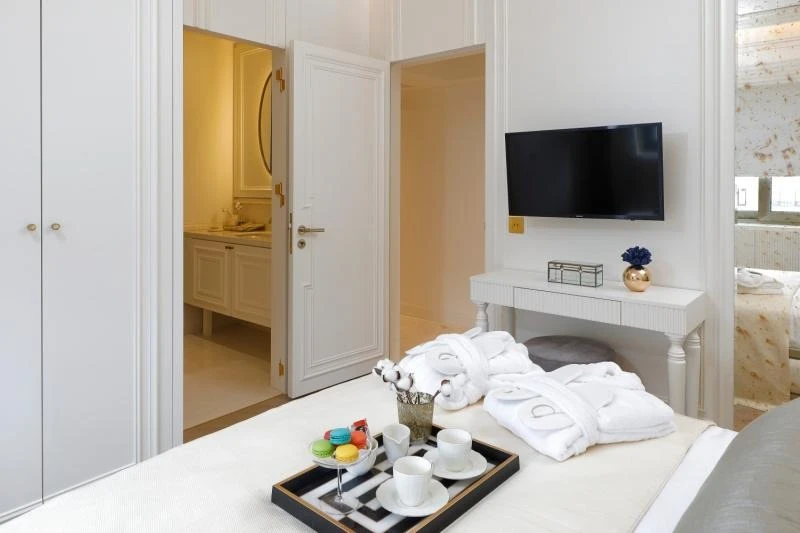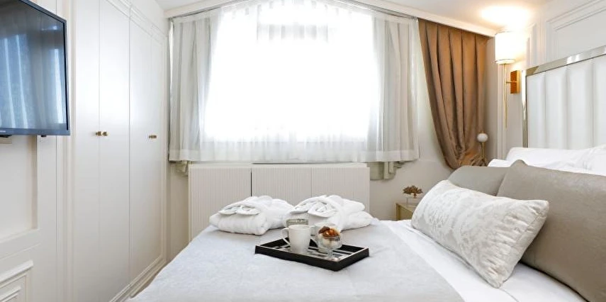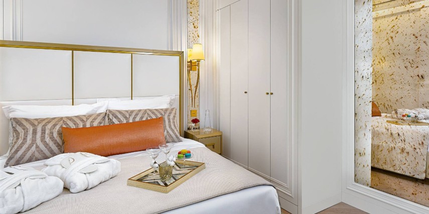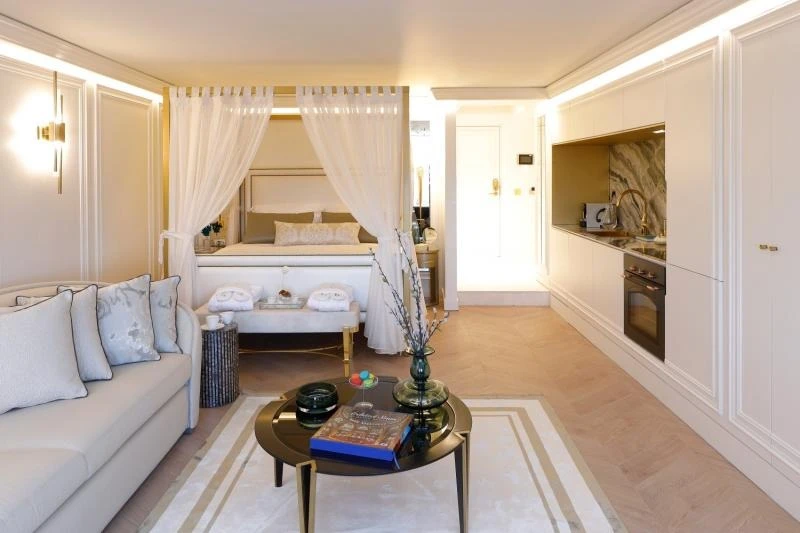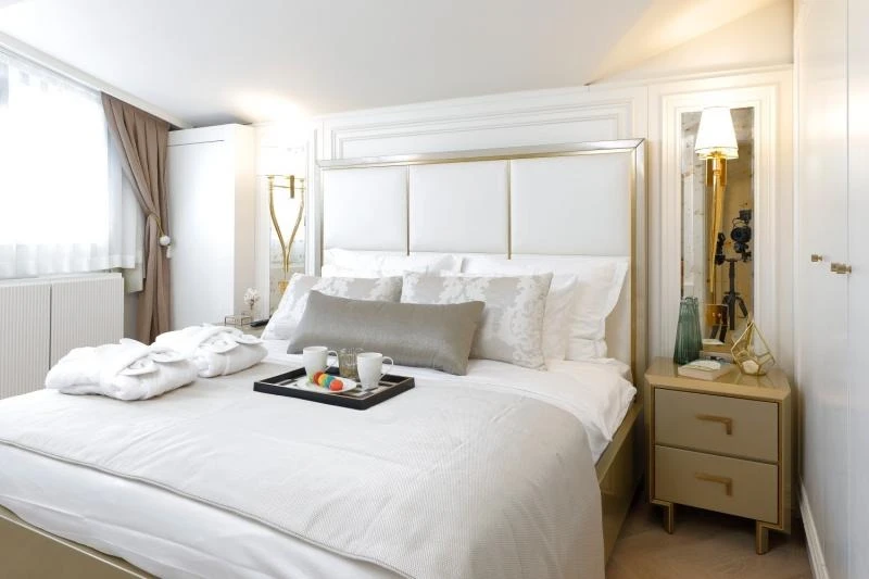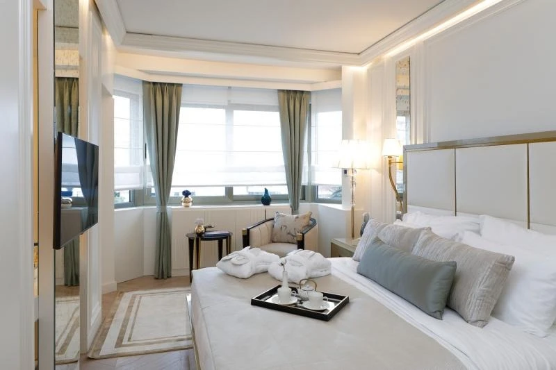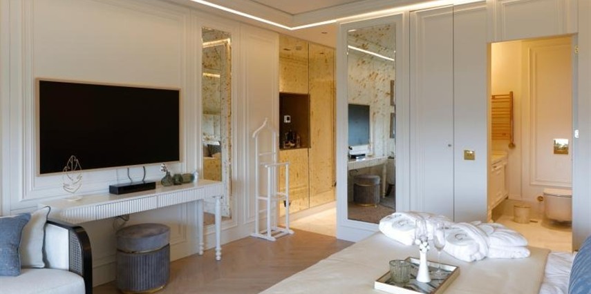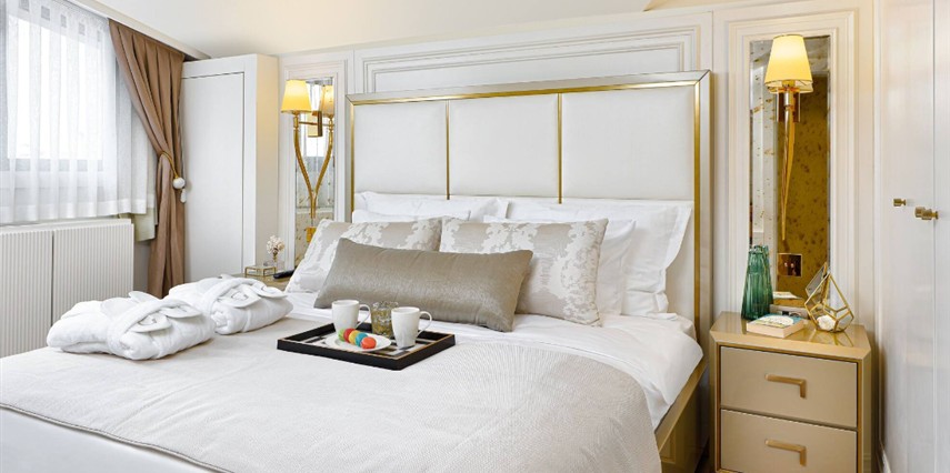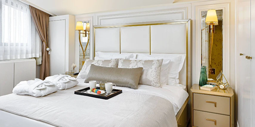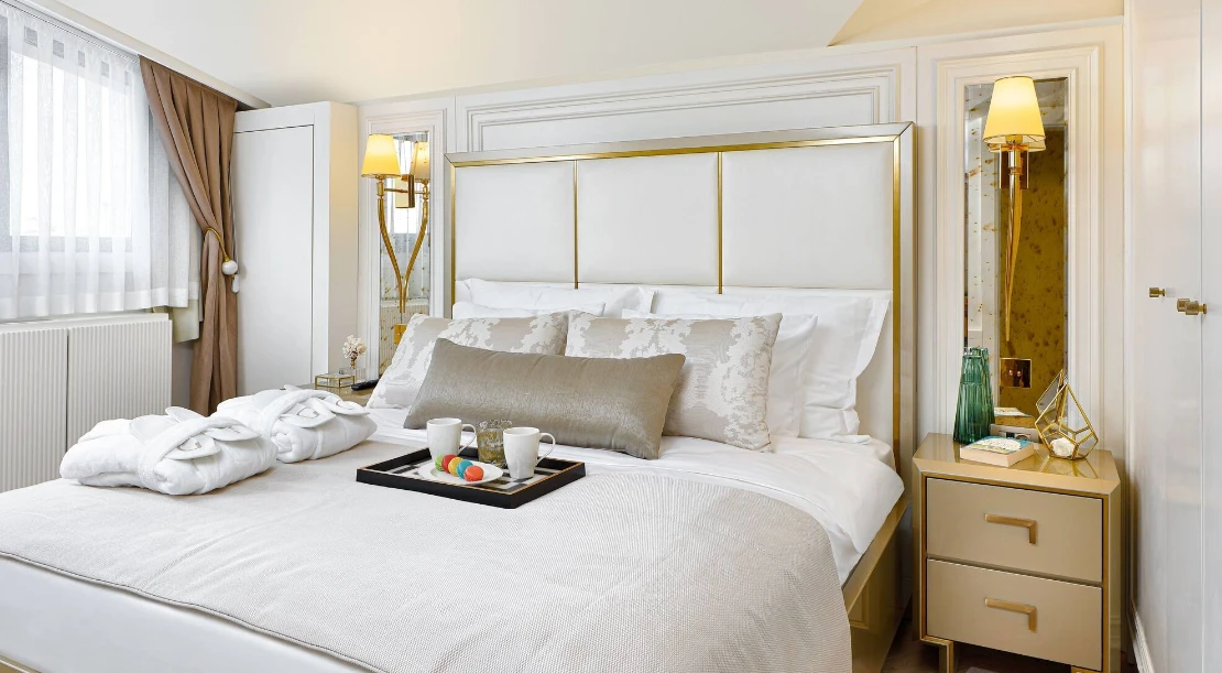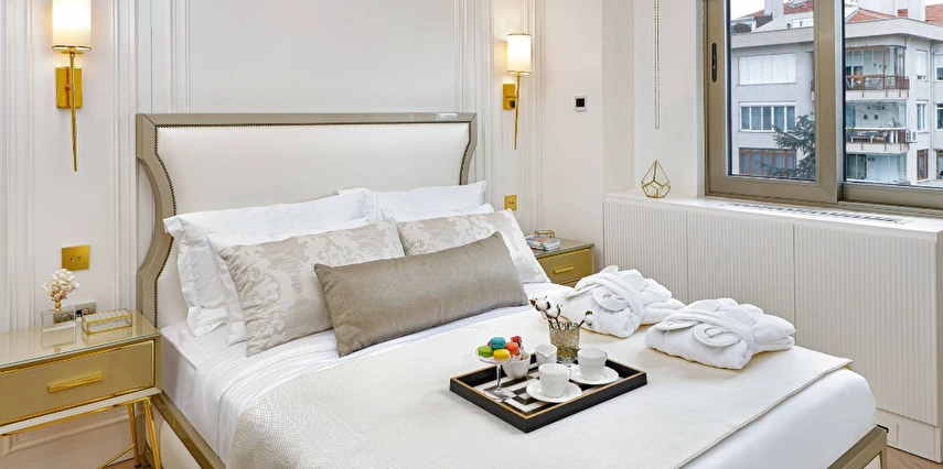 Espresso kahve makinesi, bornoz, Select Comfort yatak ve kuştüyü yorgan gibi yüksek standartlara sahip oda içi donanımlar