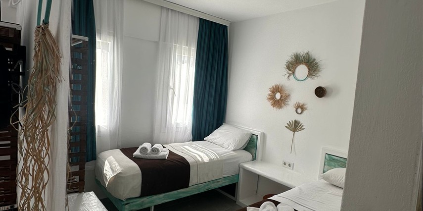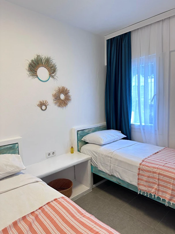 Denize sadece 50 metre mesafede, Cycladic ilhamıyla tasarlanmış minimal ve bohem tarzıyla huzurlu bir konaklama deneyimi sunuyoruz. Begonvillerle çevrili otelimiz, Ege’nin dingin atmosferini hissetmek isteyen misafirler için özel bir kaçış noktasıdır.