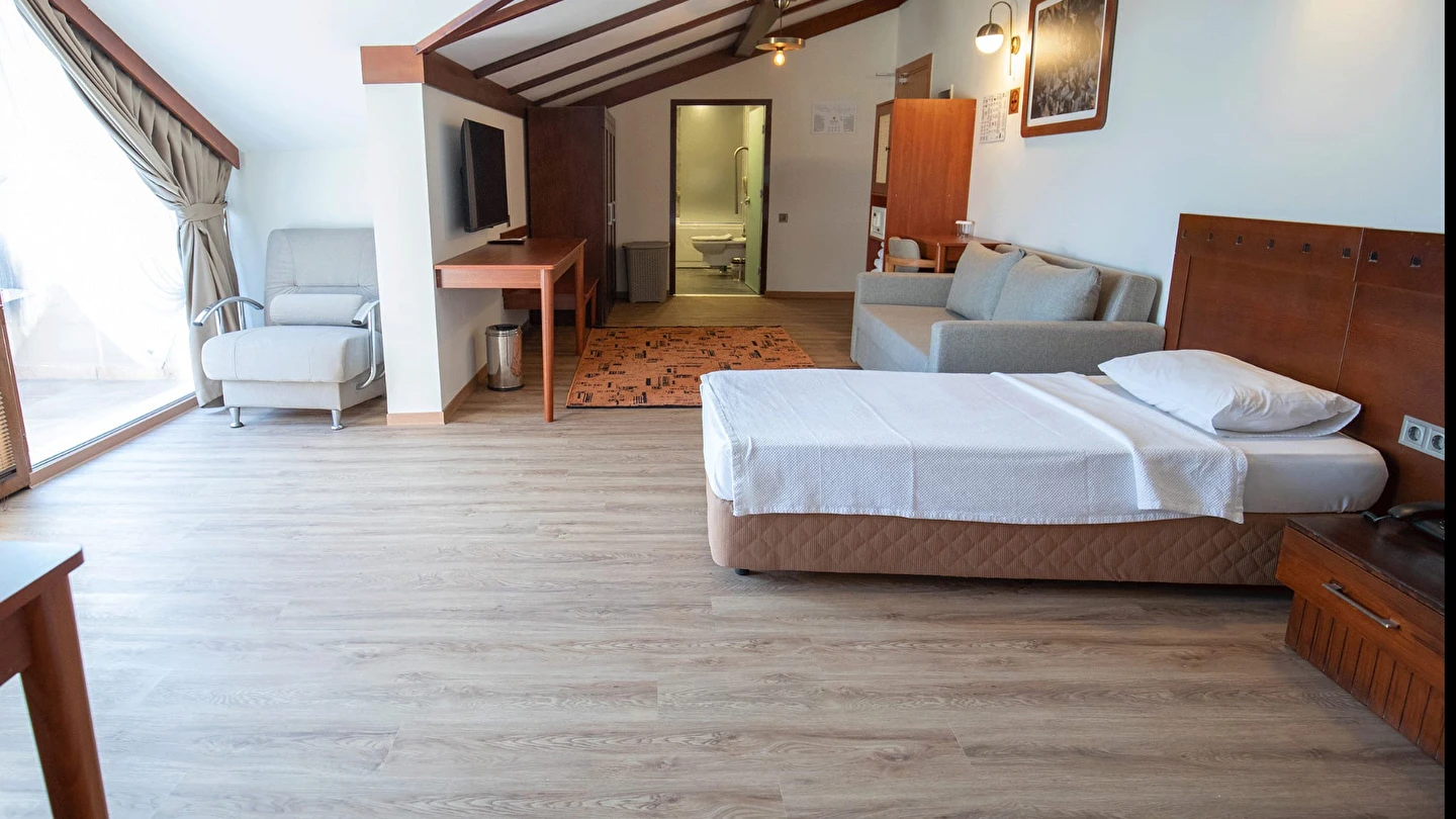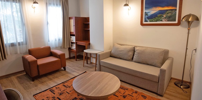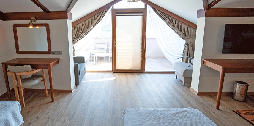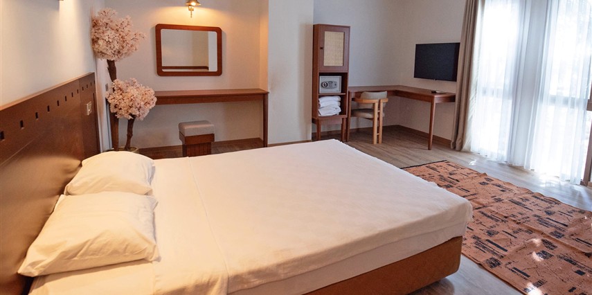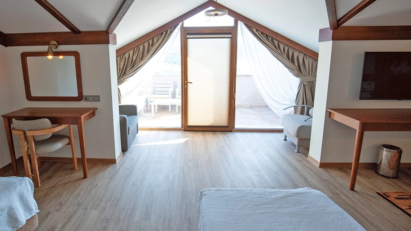 Çalışmalar sırasında oluşabilecek gürültüden etkilenmek istemeyen misafirler için Ege Evleri odaları daha konforlu bir konaklama alternatifi olacaktır.