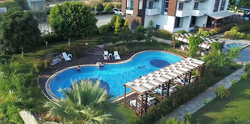 Tesisin ortak olanakları arasında açık yüzme havuzu, fitness salonu, geniş peyzajlı bahçe alanı, otopark, ücretsiz Wi-Fi ve çeşitli sosyal alanlar bulunur; bu olanaklar spor yapmak, dinlenmek ya da keyifli zaman geçirmek isteyenler için idealdir.