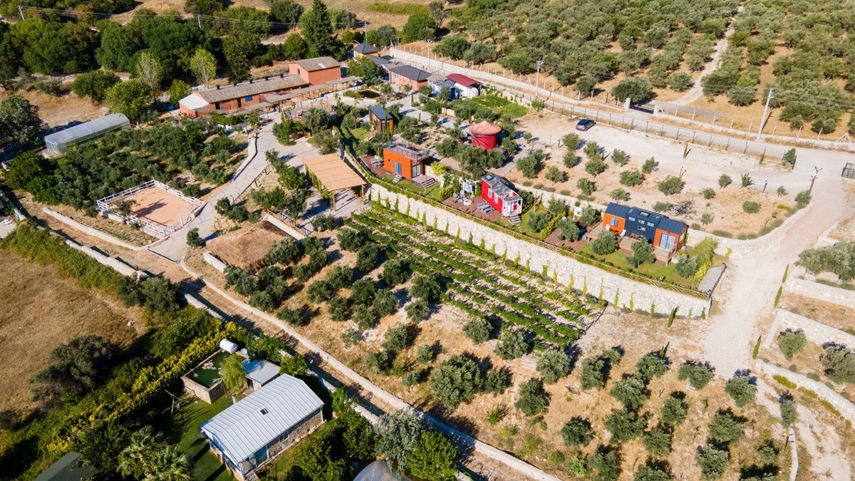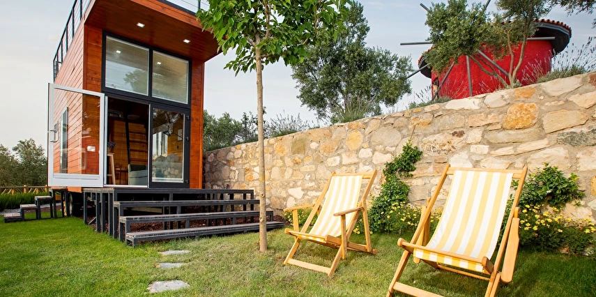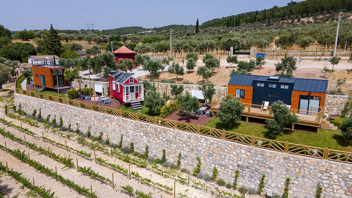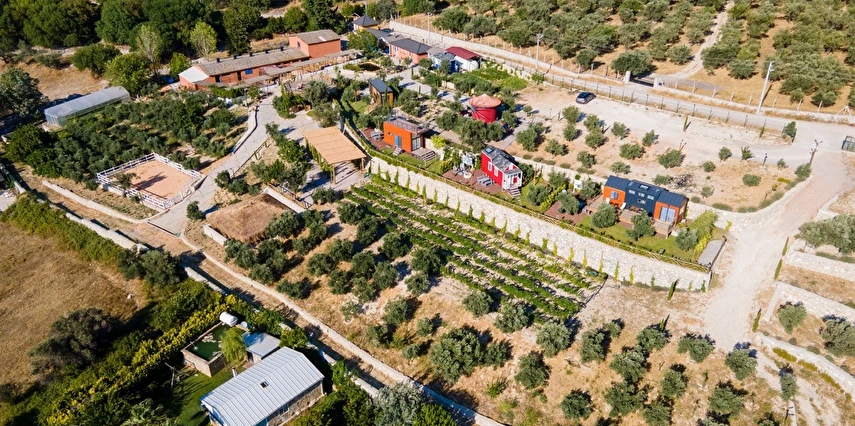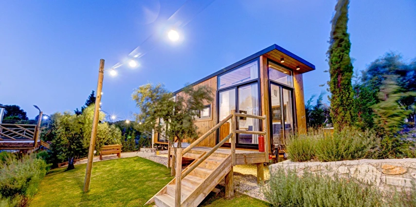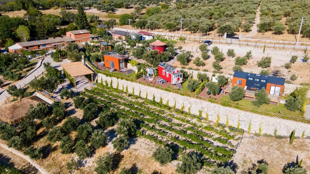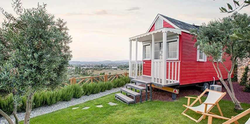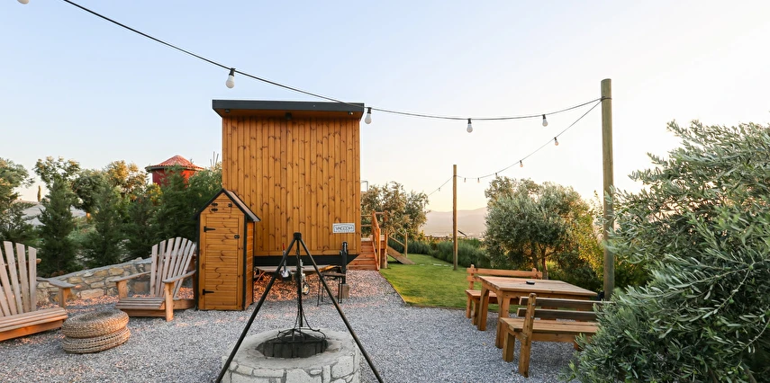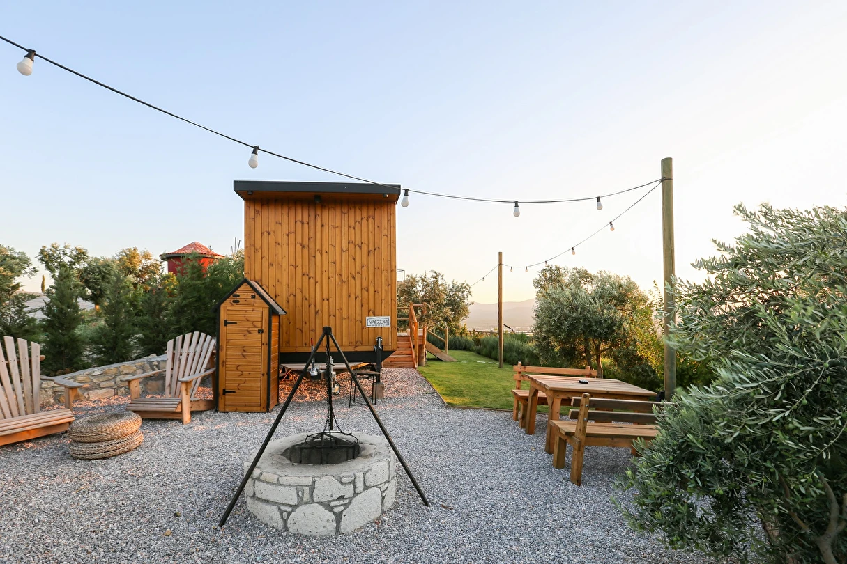 Tarlalarından sofralara sağlık aşılayan ürünlerimizle Tiny House konseptimizde konakladığınız süre boyunca hem damak zevki yaşatıyor hem de sağlıklı yaşamın inceliklerini keşfetmenizi sağlıyoruz. Her evde kendinizle baş başa kalabileceğiniz bir bahçe, şarabınızı yudumlarken içinizi ısıtacak ateş çukuru ve şarabın yanına eşlikçiler hazırlamak isterseniz de mangal bulunuyor. Ayrıca doğallığa dönüş ve nostalji havasını tamamlayacak, sadece size ait yazlık sinema film gösterimlerine hazır!