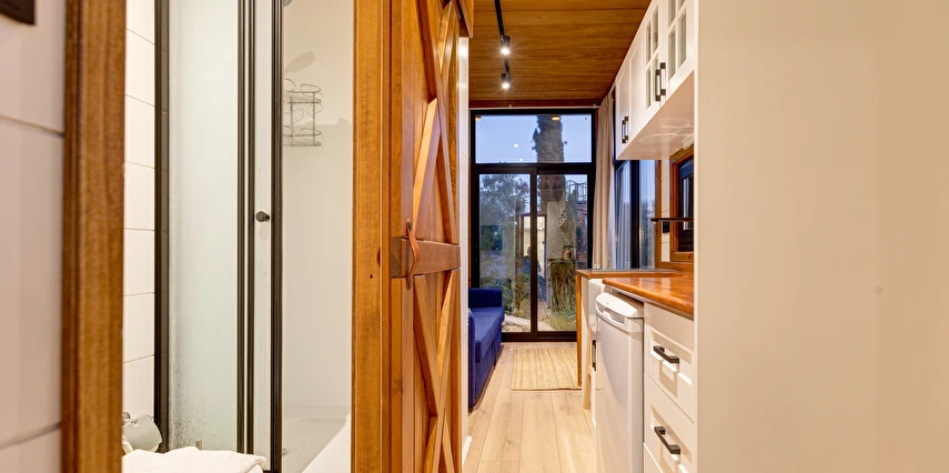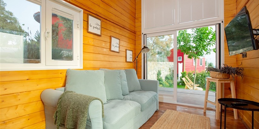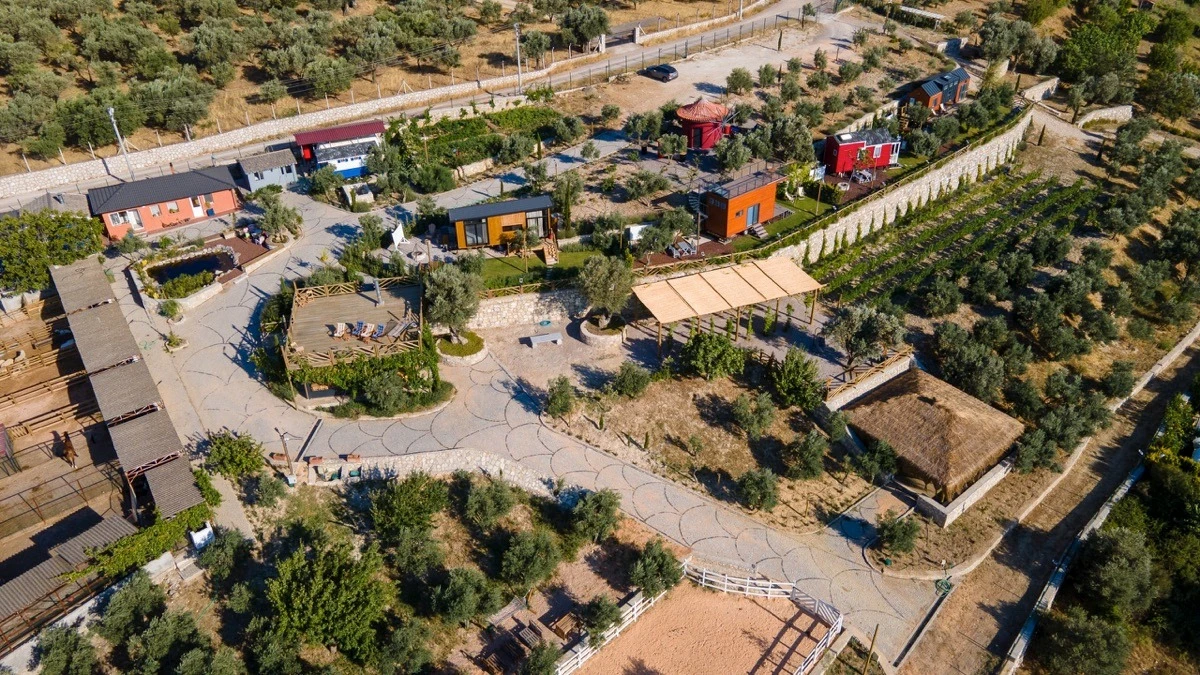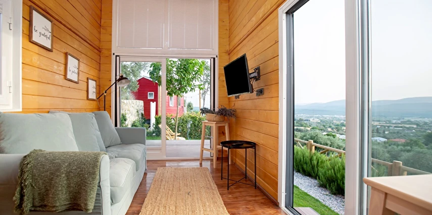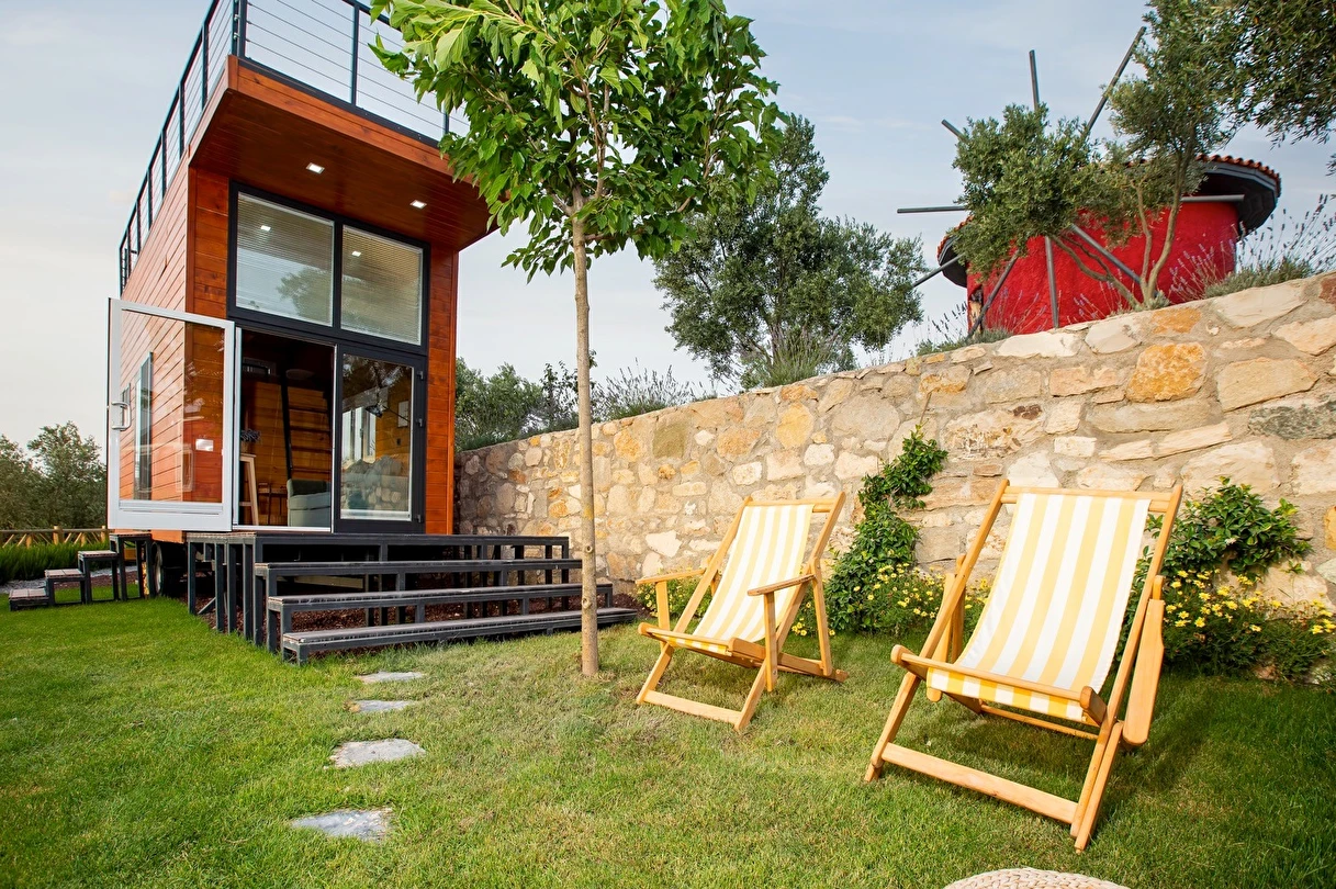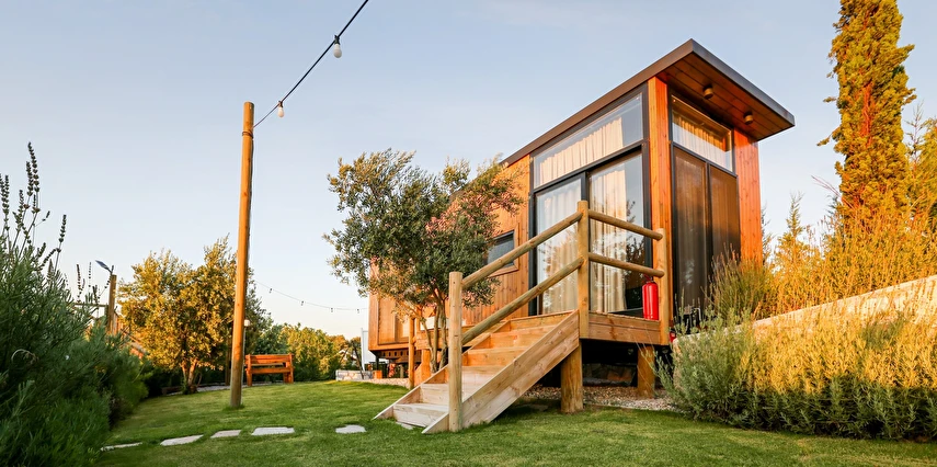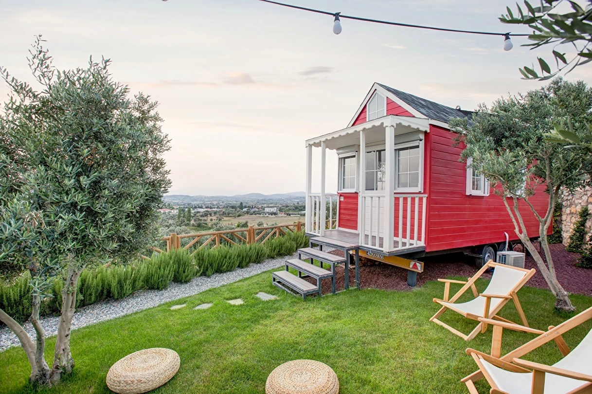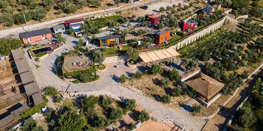 Tarlalarından sofralara sağlık aşılayan ürünlerimizle Tiny House konseptimizde konakladığınız süre boyunca hem damak zevki yaşatıyor hem de sağlıklı yaşamın inceliklerini keşfetmenizi sağlıyoruz. Her evde kendinizle baş başa kalabileceğiniz bir bahçe, şarabınızı yudumlarken içinizi ısıtacak ateş çukuru ve şarabın yanına eşlikçiler hazırlamak isterseniz de mangal bulunuyor. Ayrıca doğallığa dönüş ve nostalji havasını tamamlayacak, sadece size ait yazlık sinema film gösterimlerine hazır!