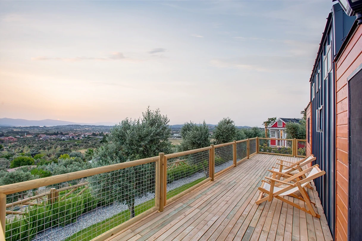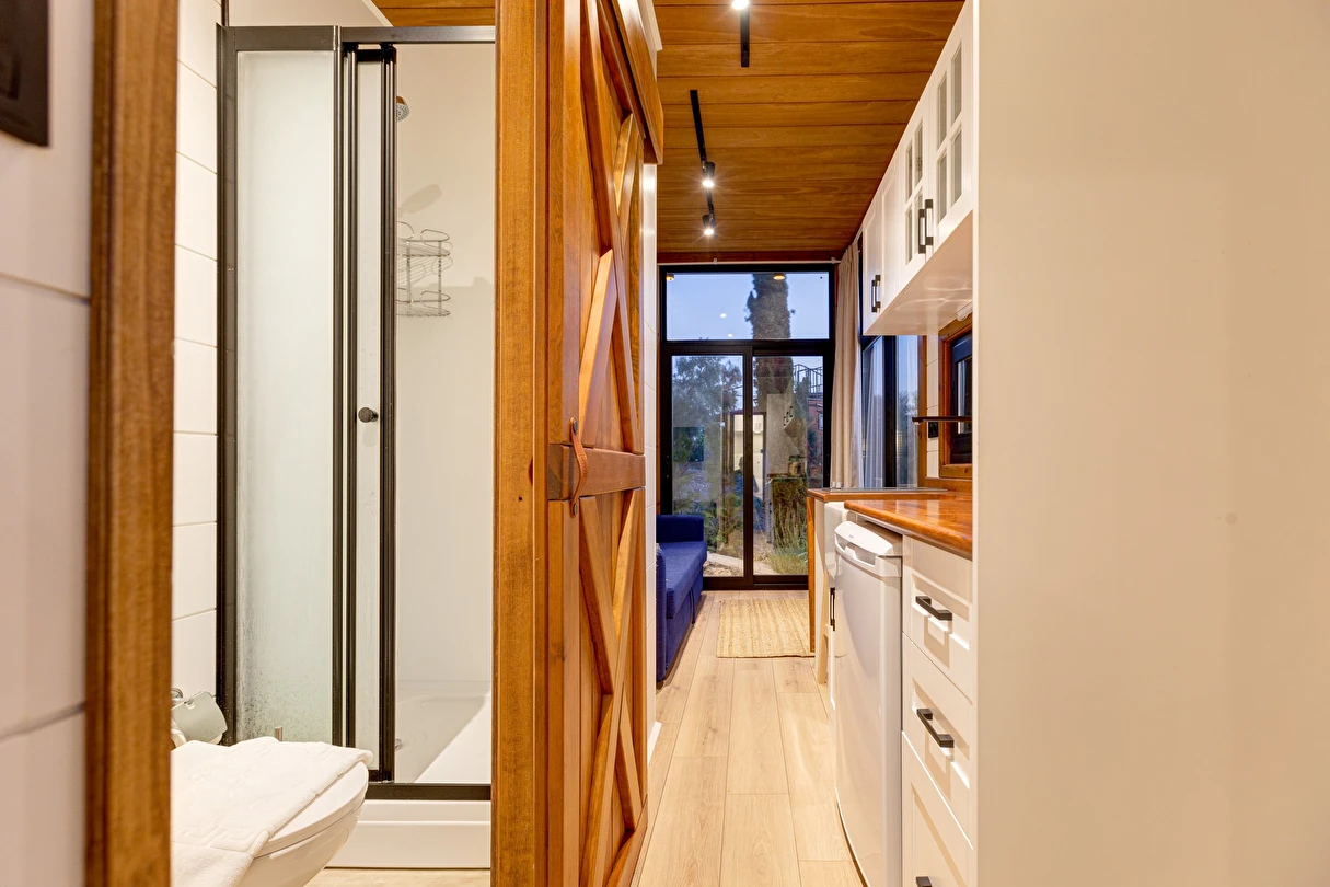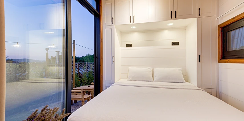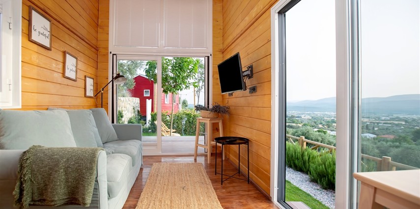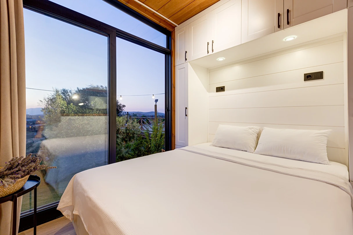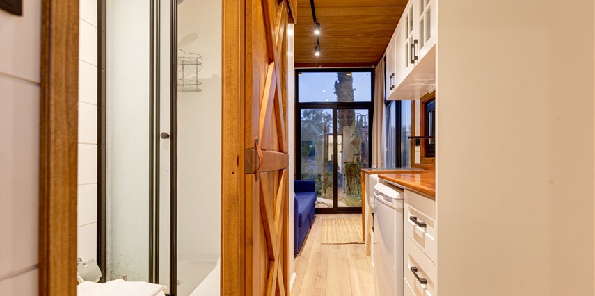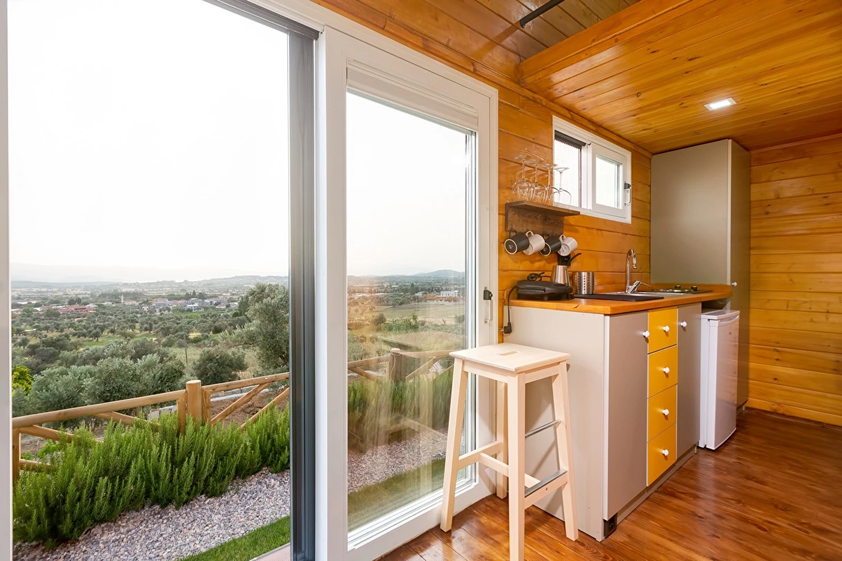 Tarlalarından sofralara sağlık aşılayan ürünlerimizle Tiny House konseptimizde konakladığınız süre boyunca hem damak zevki yaşatıyor hem de sağlıklı yaşamın inceliklerini keşfetmenizi sağlıyoruz. Her evde kendinizle baş başa kalabileceğiniz bir bahçe, şarabınızı yudumlarken içinizi ısıtacak ateş çukuru ve şarabın yanına eşlikçiler hazırlamak isterseniz de mangal bulunuyor. Ayrıca doğallığa dönüş ve nostalji havasını tamamlayacak, sadece size ait yazlık sinema film gösterimlerine hazır!