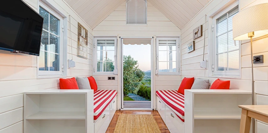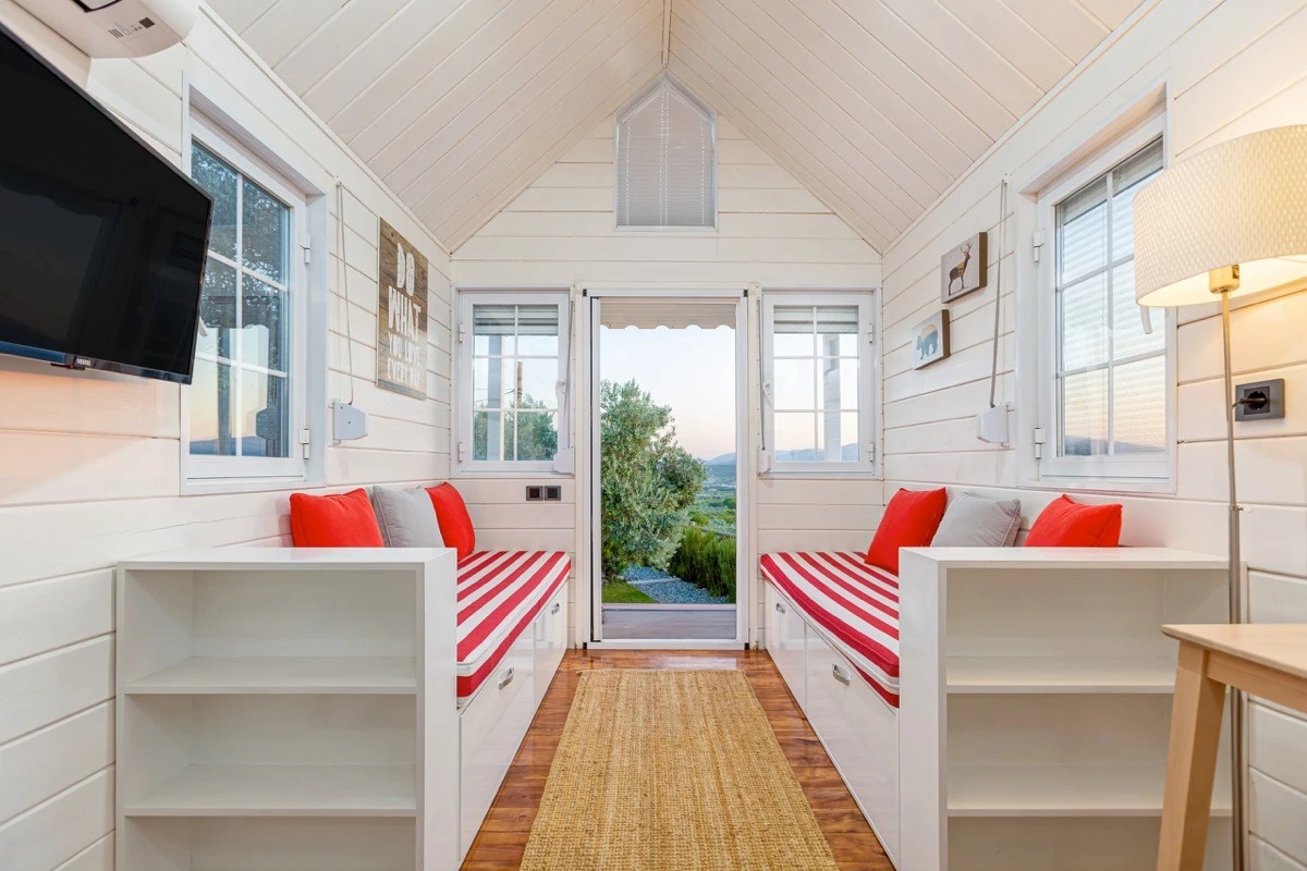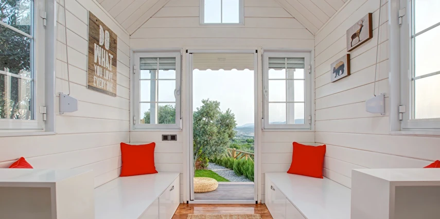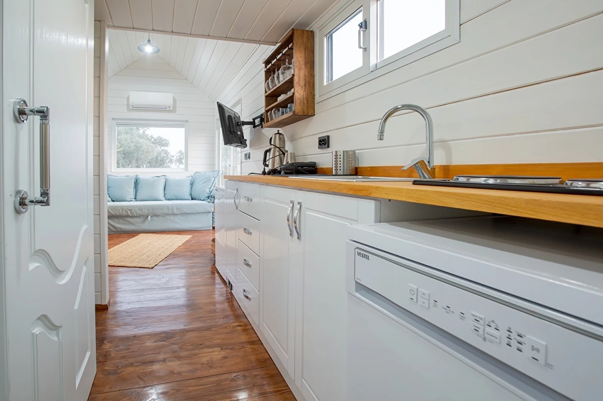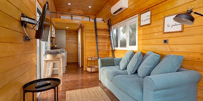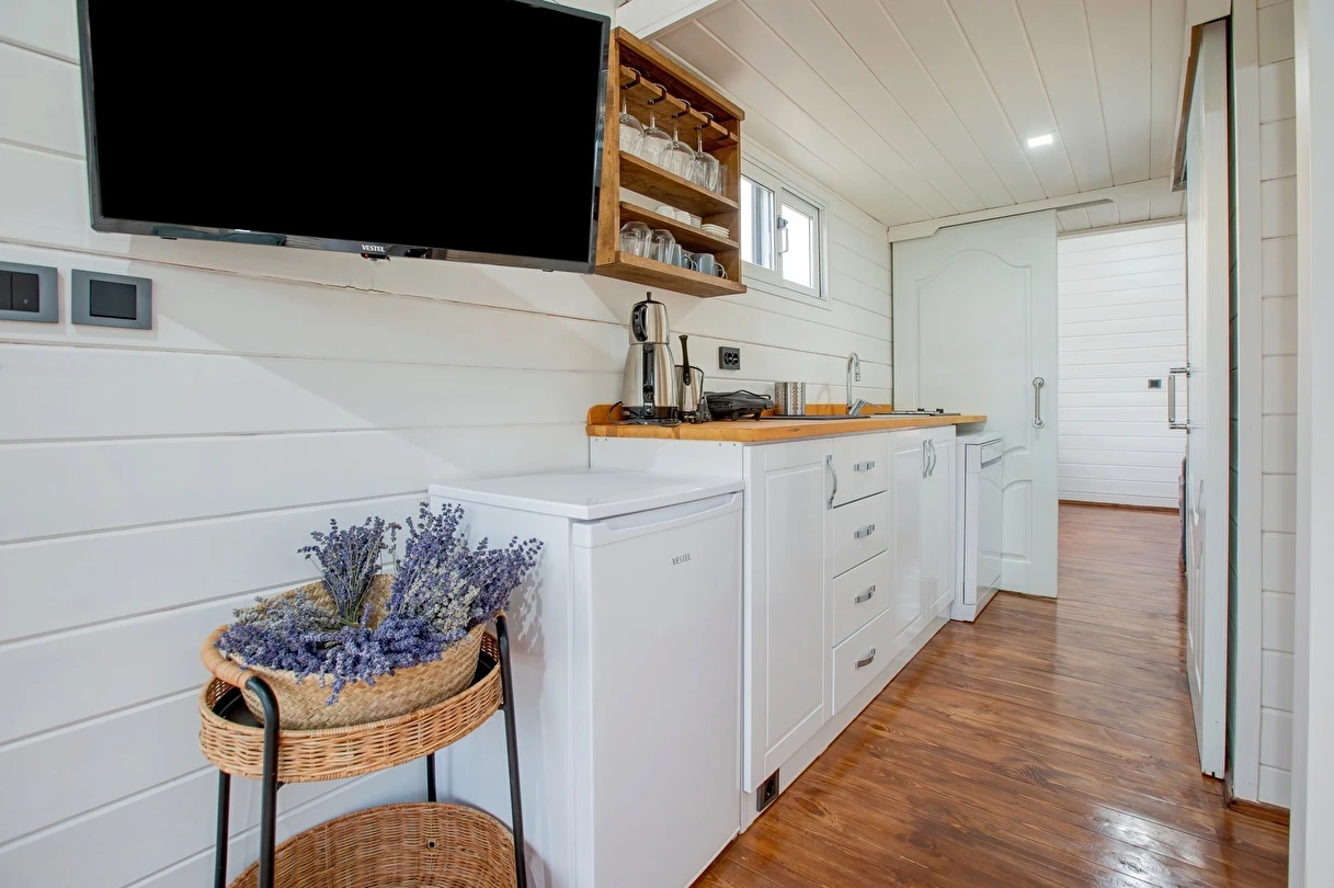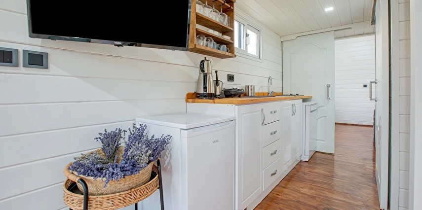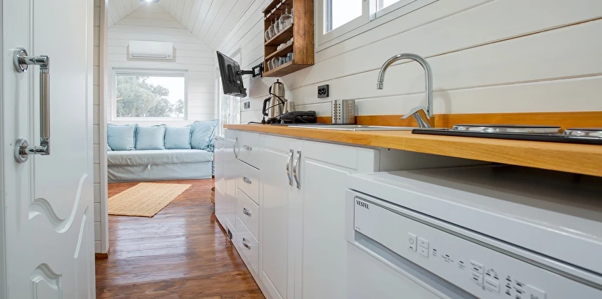 Tarlalarından sofralara sağlık aşılayan ürünlerimizle Tiny House konseptimizde konakladığınız süre boyunca hem damak zevki yaşatıyor hem de sağlıklı yaşamın inceliklerini keşfetmenizi sağlıyoruz. Her evde kendinizle baş başa kalabileceğiniz bir bahçe, şarabınızı yudumlarken içinizi ısıtacak ateş çukuru ve şarabın yanına eşlikçiler hazırlamak isterseniz de mangal bulunuyor. Ayrıca doğallığa dönüş ve nostalji havasını tamamlayacak, sadece size ait yazlık sinema film gösterimlerine hazır!