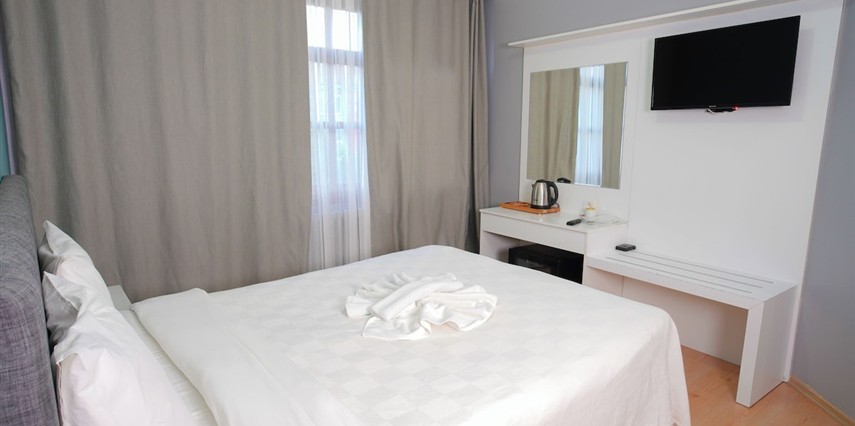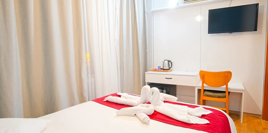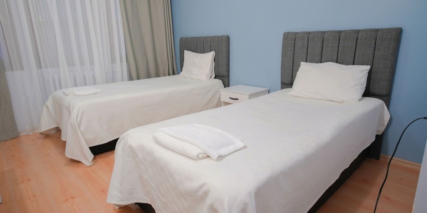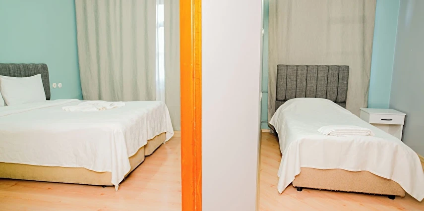 Modern ve ferah odalar; rahat yataklar, klima, düz ekran TV, ücretsiz Wi-Fi, çalışma masası ve geniş depolama alanları ile donatılmıştır. Günün yorgunluğunu atabileceğiniz konforlu yaşam alanları, hem kısa hem uzun süreli konaklamalar için uygundur. Hijyen ve temizlik standartları titizlikle uygulanarak güvenli bir ortam sağlanır.