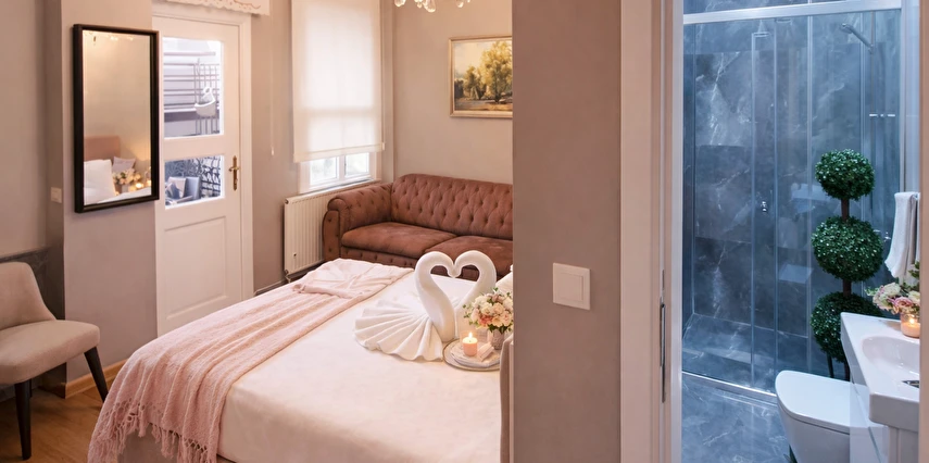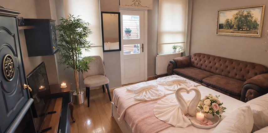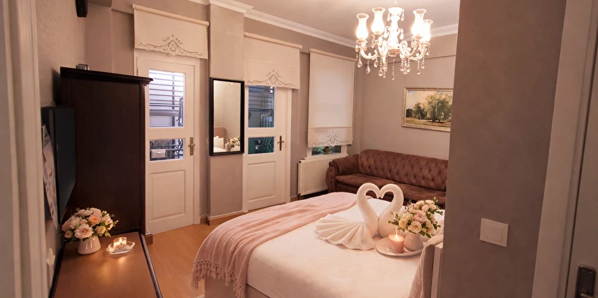 Daha Fazla GösterKonaklama için tercihiniz Valide-i Suit Havuz & Sauna olduğunda Boğaziçi ve Kadıköy İskelesi hedefine sadece 5 dakikalık sürüş mesafesinde bulunacaksınız. Misafirler kahve dükkânı/kafe olanağından yararlanıp bir şeyler atıştırabilir. Ayrıca sauna günün sonunda rahatlama imkânı sunar. Teras ve bahçe, bu Viktorya dönemi stili otel dâhilindeki diğer öne çıkan özellikler arasındadır.Çift konaklamalarında evlilik şartı aranmaktadır.