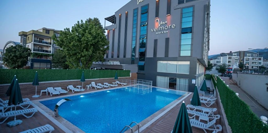 Velmore Hotel & Spa Bursa Kestel Bölgesi’nde 4 yıldız statüsünde olup Ankara-İstanbul otoban kesişim noktasındaki ulaşım kolaylığı ve hizmet kalitesi ile bölgenin en yeni ve 4 yıldızlı tek oteli olarak hizmet vermektedir.