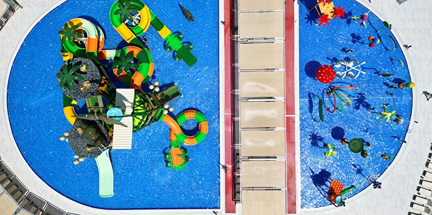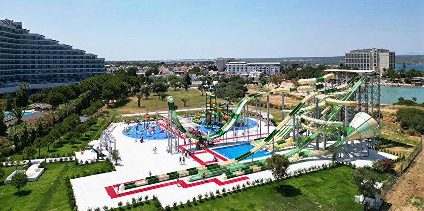 Tesiste 7 kaydıraklı aquapark, 5 kaydıraklı oyun kulesi ve 23 oyuncaklı su oyun alanı bulunmaktadır.