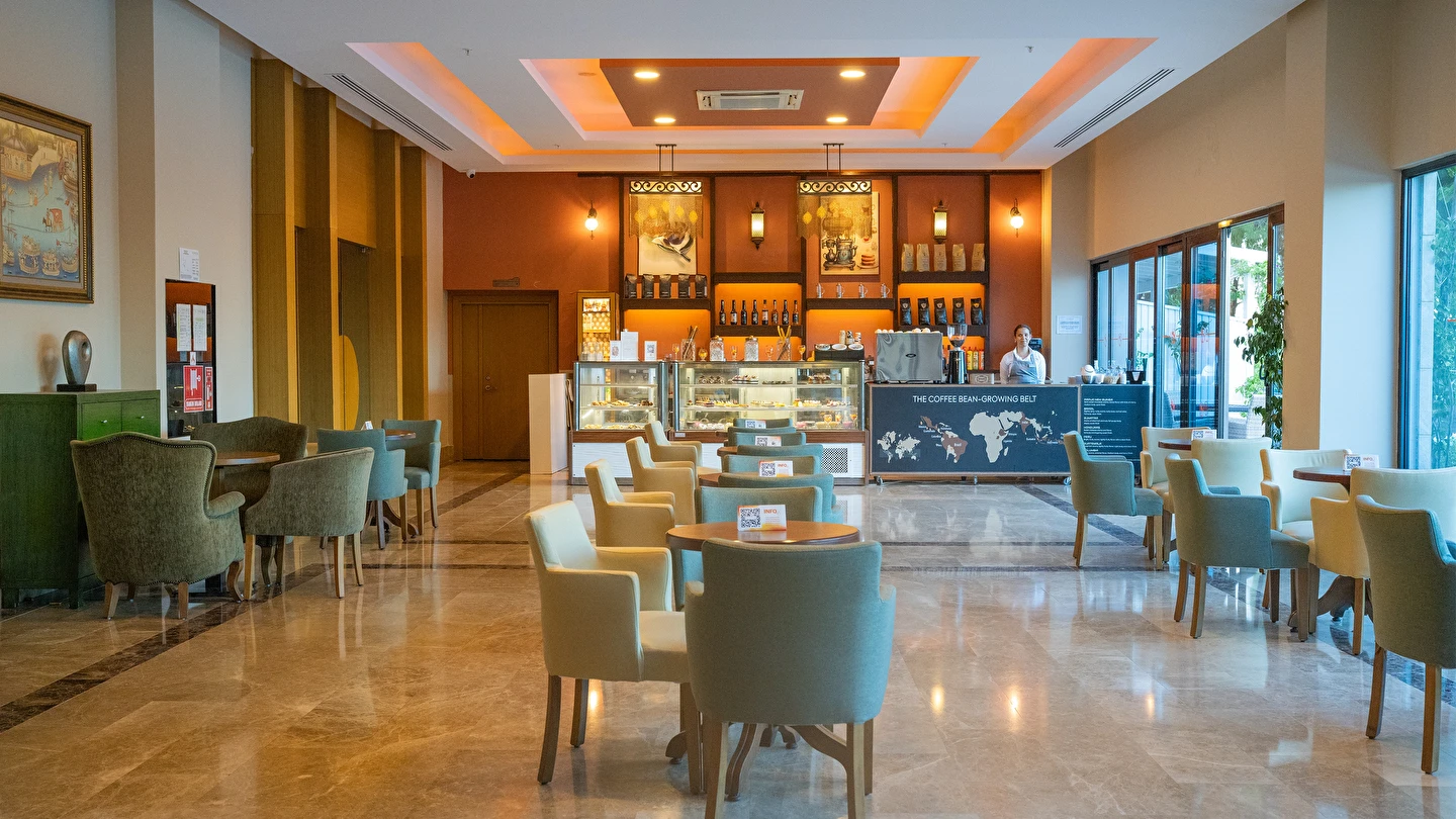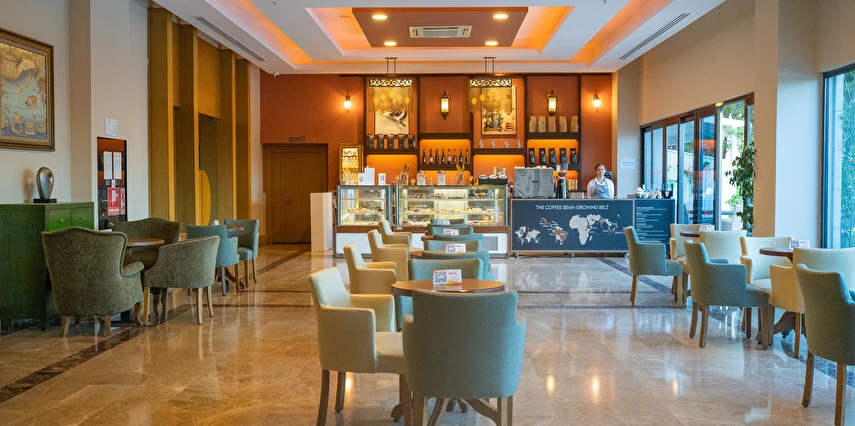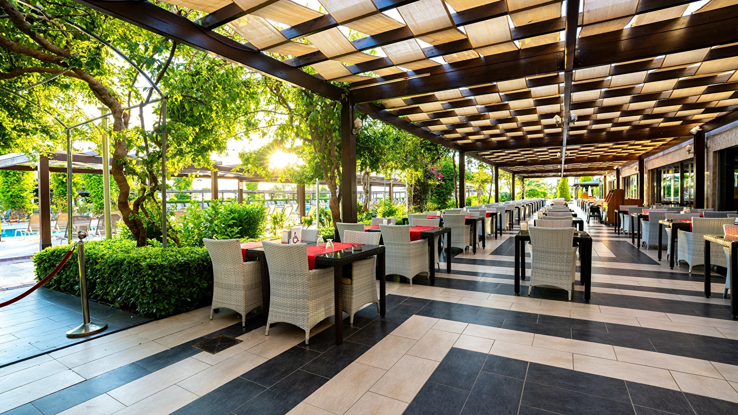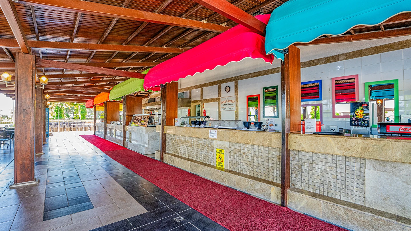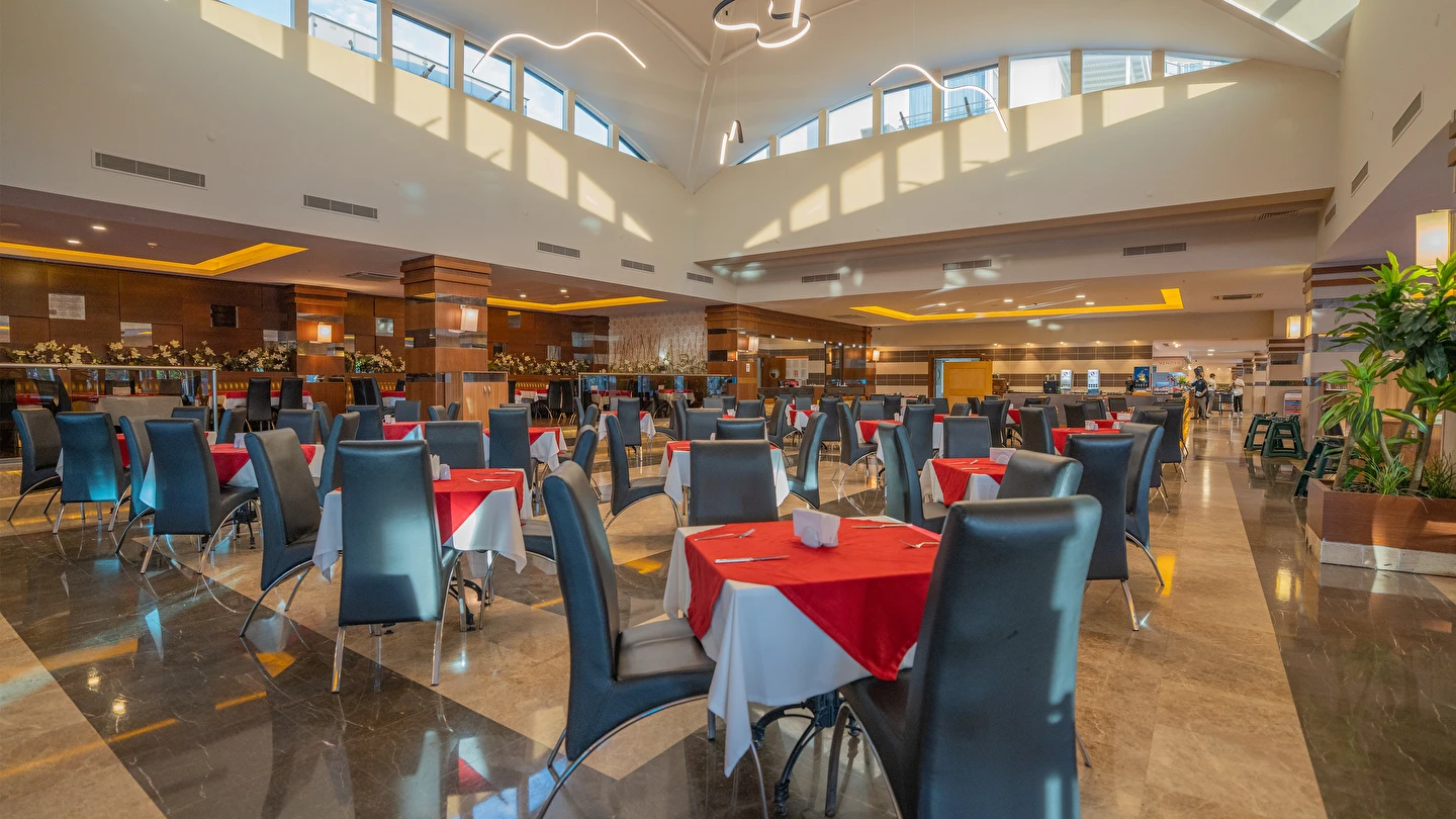Sabah kahvaltısı, öğle ve akşam yemekleri açık büfe olup, tesisin belirlemiş olduğu markalar dahilinde tüm yerli alkollü (bira, şarap, rakı, votka, cin, bazı likörler) bazı yabancı alkollü içecekler (viski,votka,cin) ve alkolsüz içecekler, sıcak içecekler 24 saat ücretsizdir. Türk kahvesi lobi barda ücretsizdir. Kutu içecekler ve bazı yabancı alkollü içecekler ücretlidir.