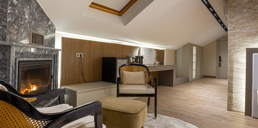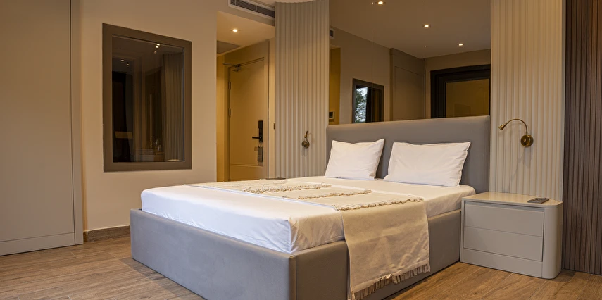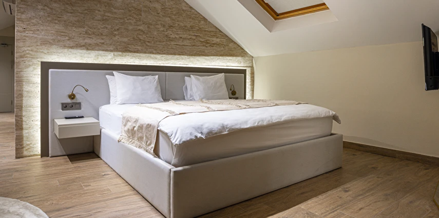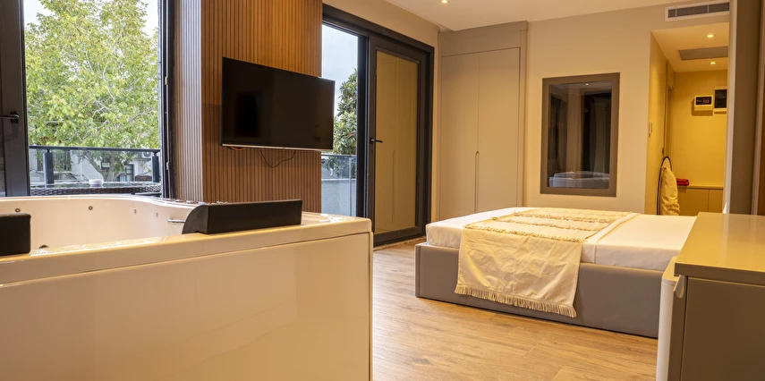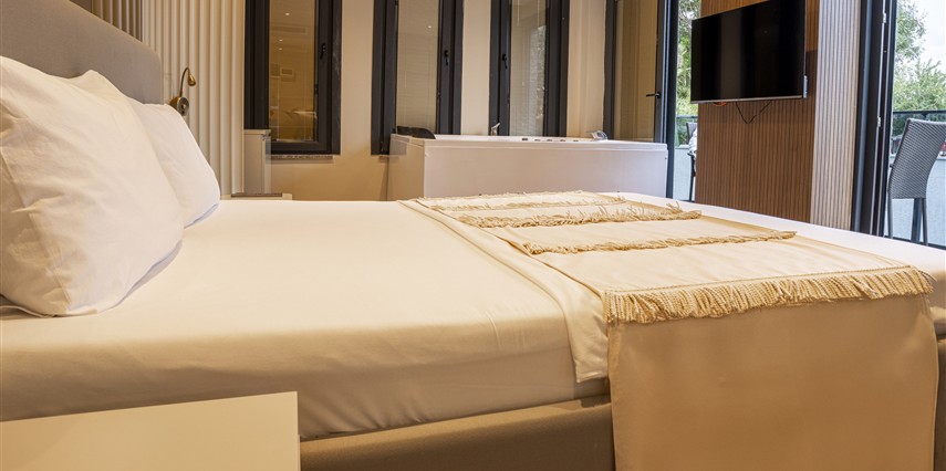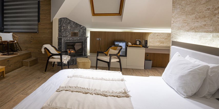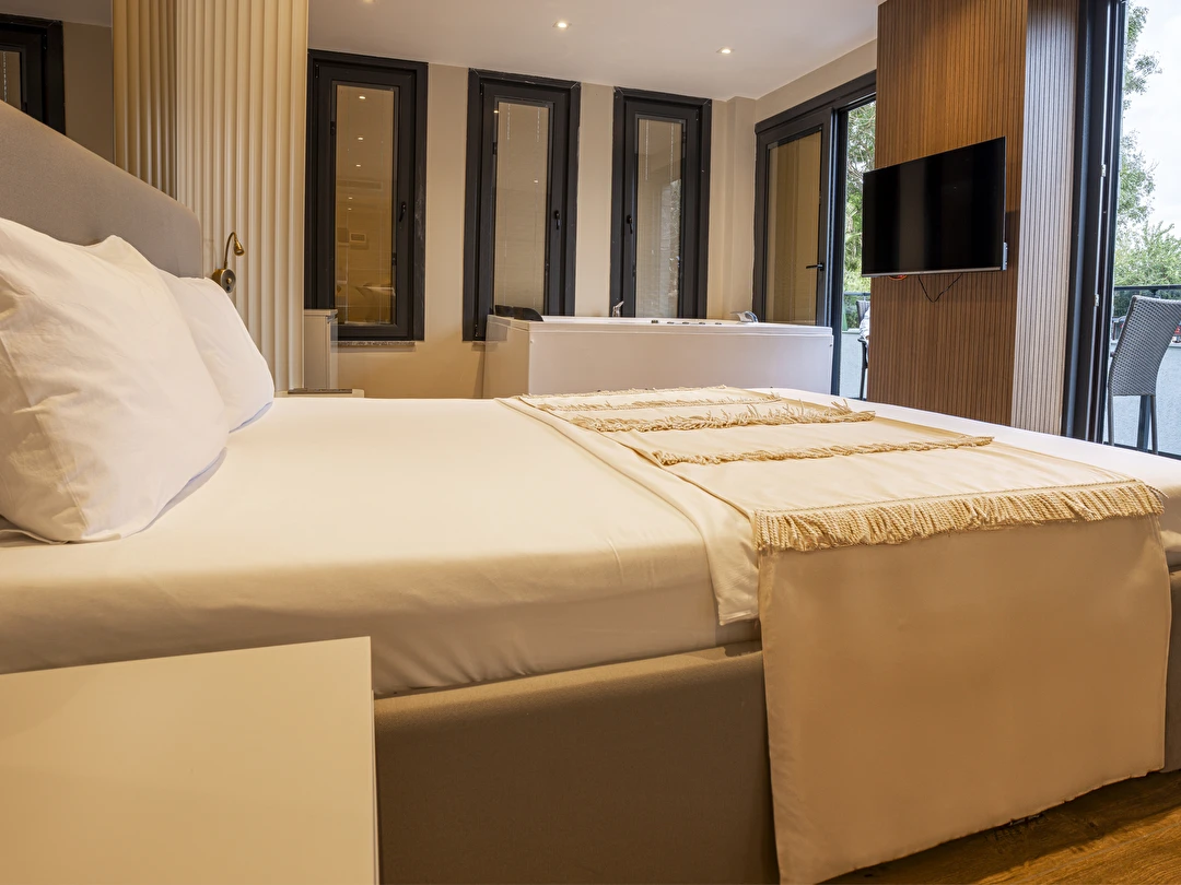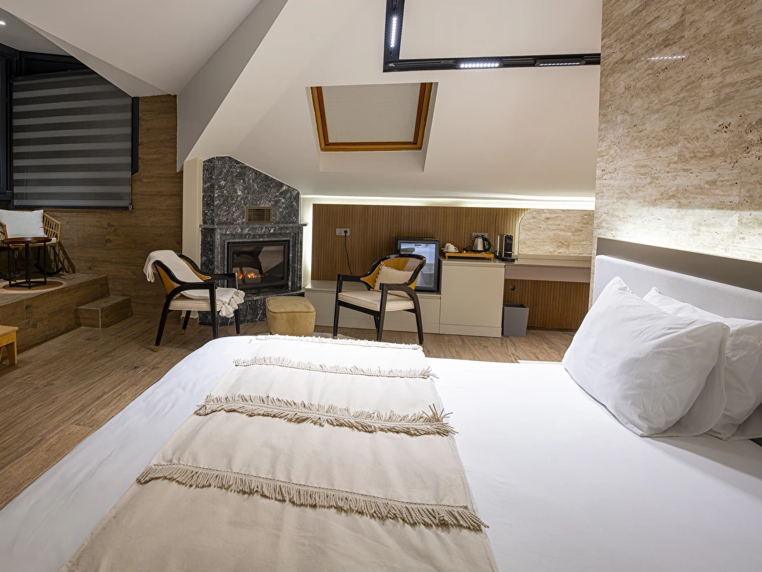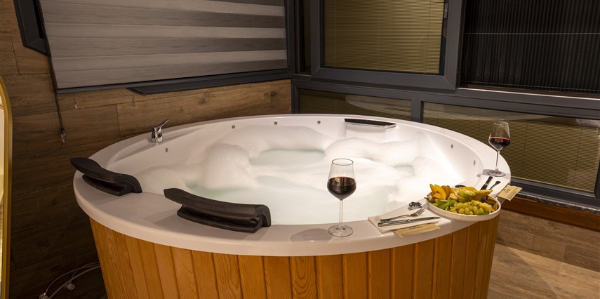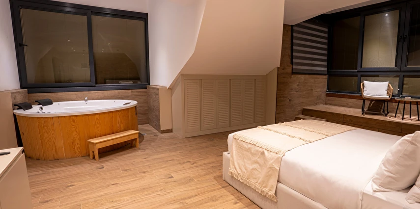 Jakuzili Suit Oda, Kısmi Nehir ve Havuz Manzaralı, Sauna ve Hamamlı, Jakuzili Balayı Odası, Bahçe Manzaralı, Sauna ve Hamamlı ve Çatı Katı Oda-Jakuzili, Dağ veya Havuz Manzaralı, Sauna ve Hamamlı tiplerinde 3. kişi için ilave yatak eklenebilmektedir.