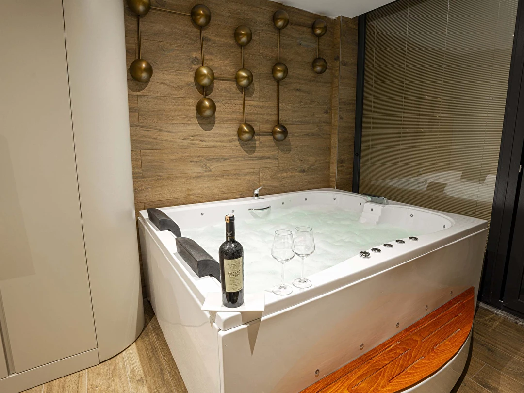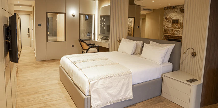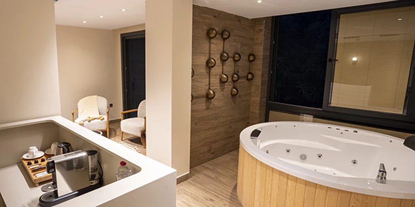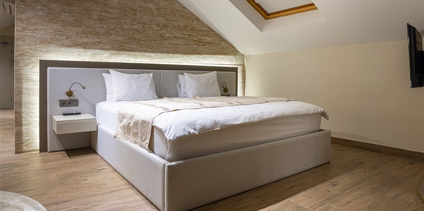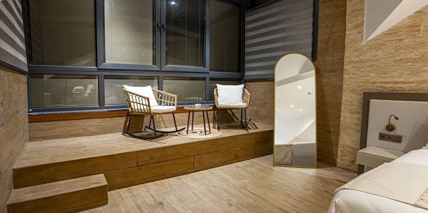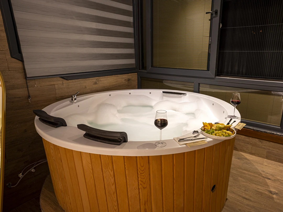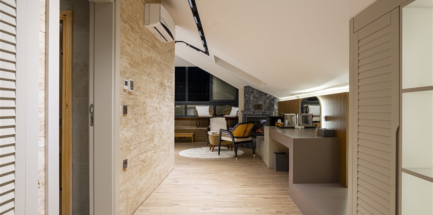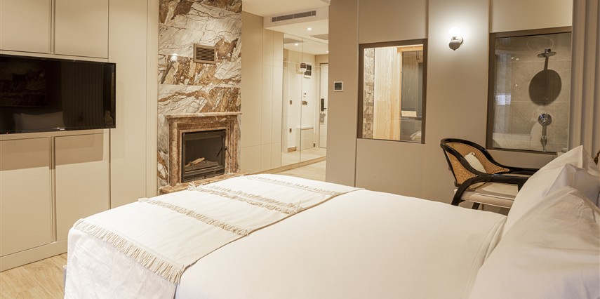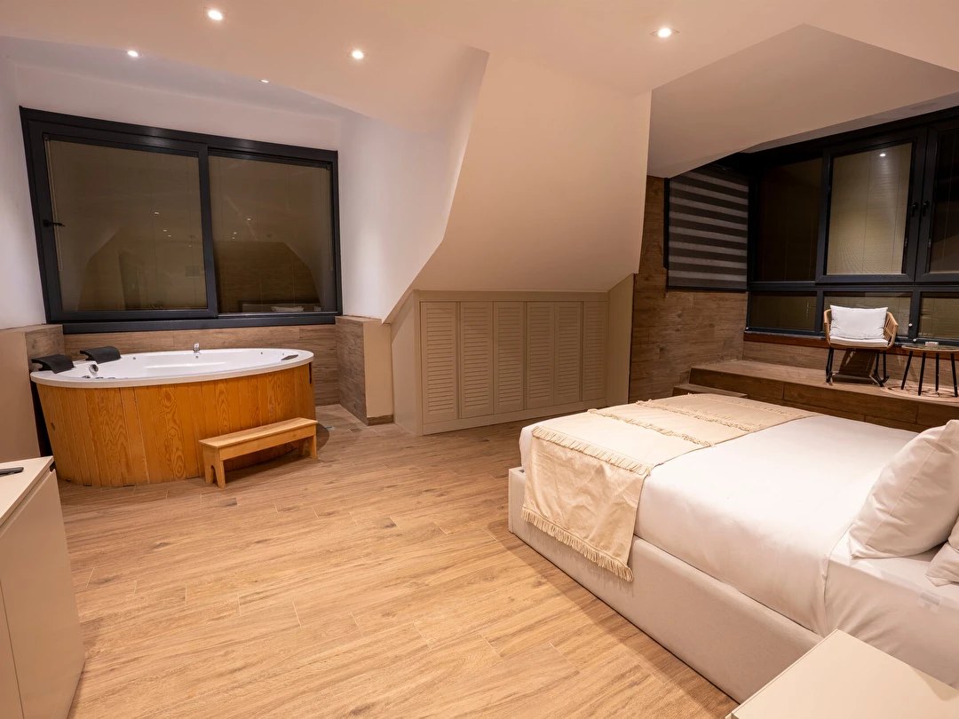 Jakuzili Suit Oda, Kısmi Nehir ve Havuz Manzaralı, Sauna ve Hamamlı, Jakuzili Balayı Odası, Bahçe Manzaralı, Sauna ve Hamamlı ve Çatı Katı Oda-Jakuzili, Dağ veya Havuz Manzaralı, Sauna ve Hamamlı tiplerinde 3. kişi için ilave yatak eklenebilmektedir.