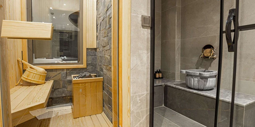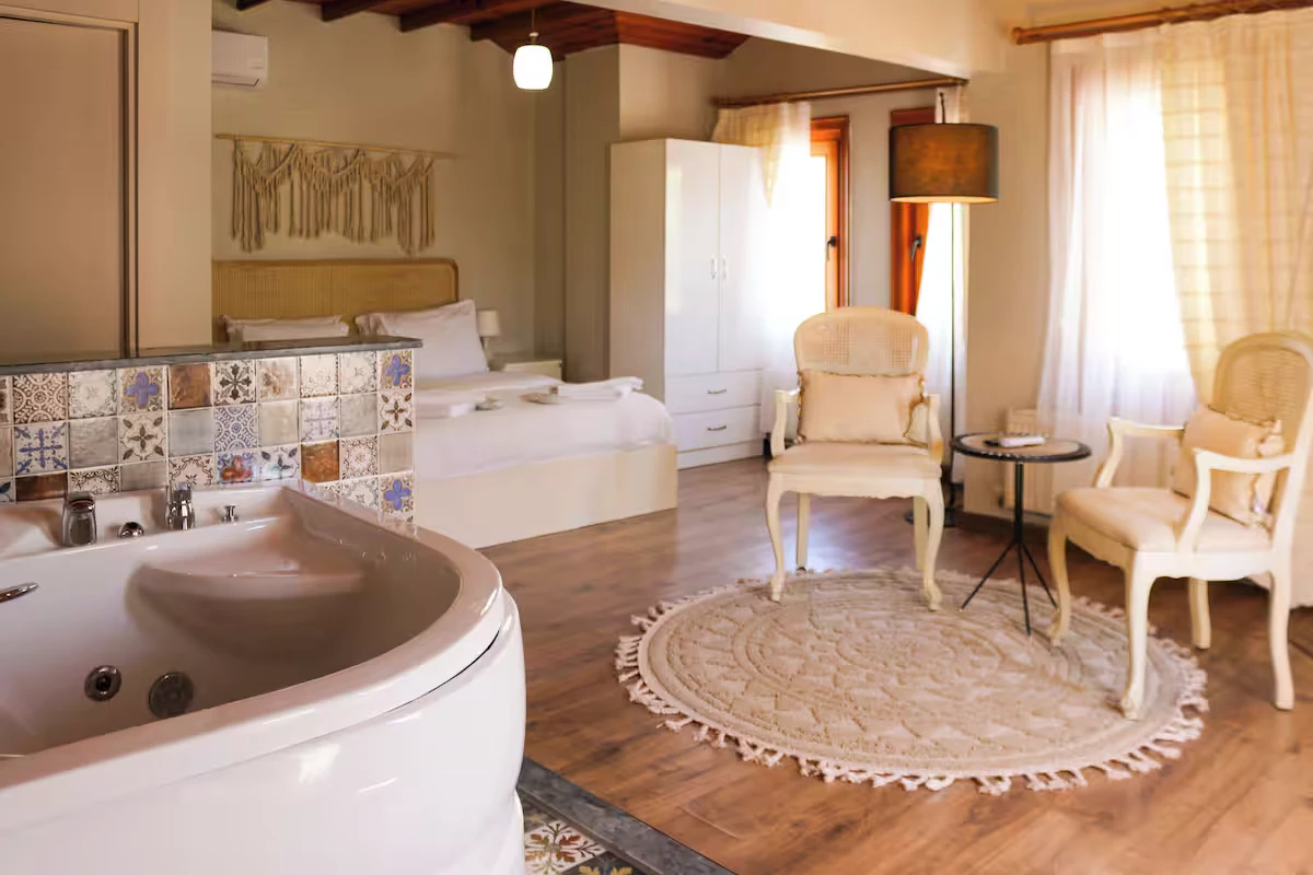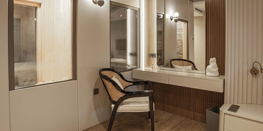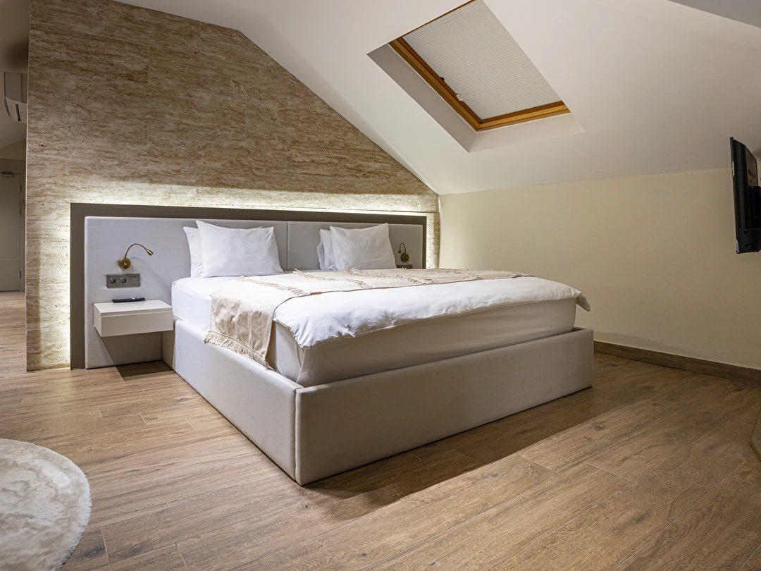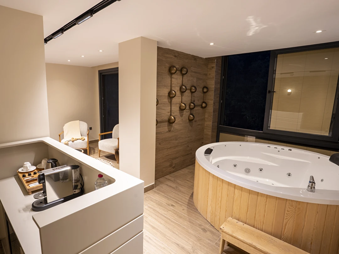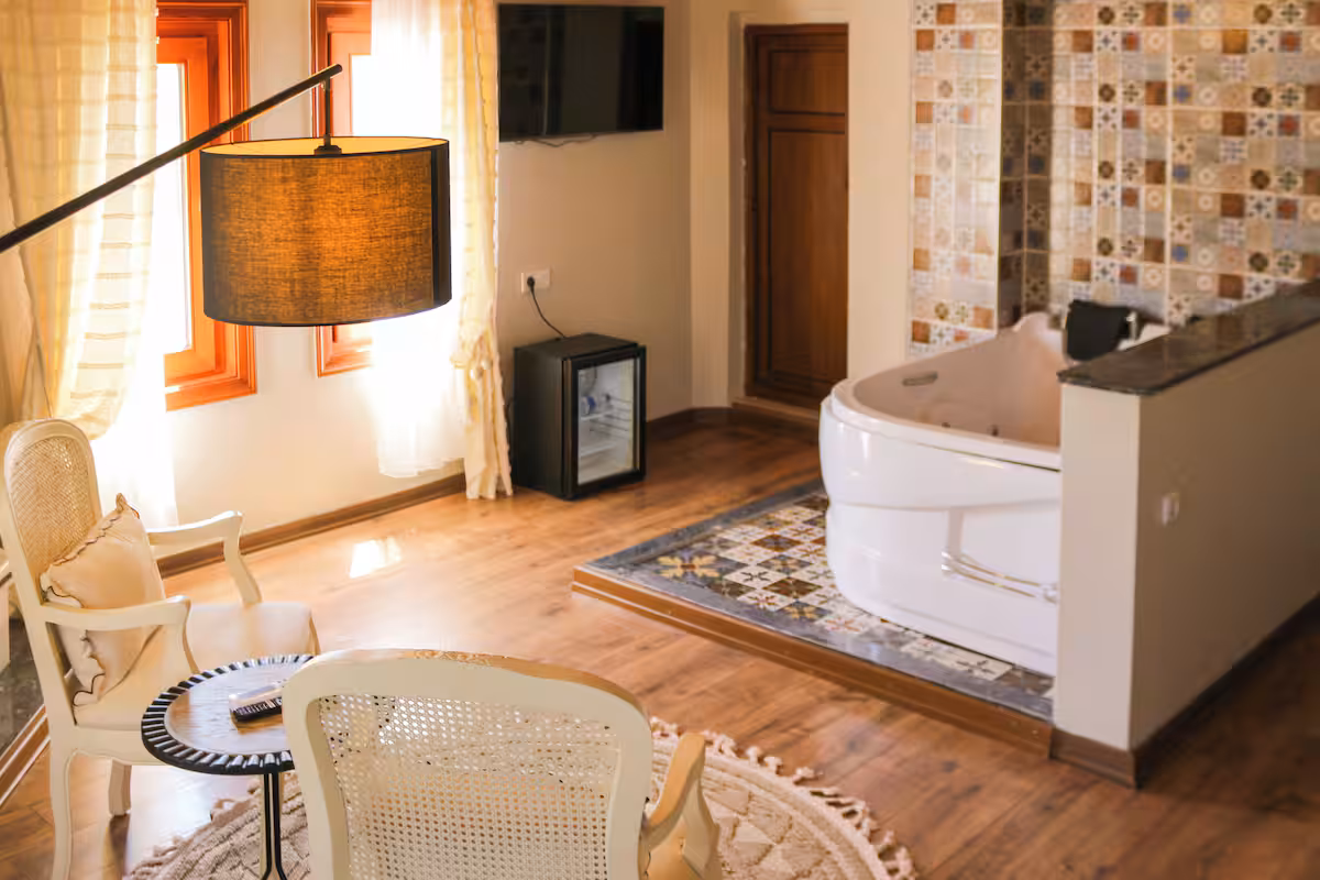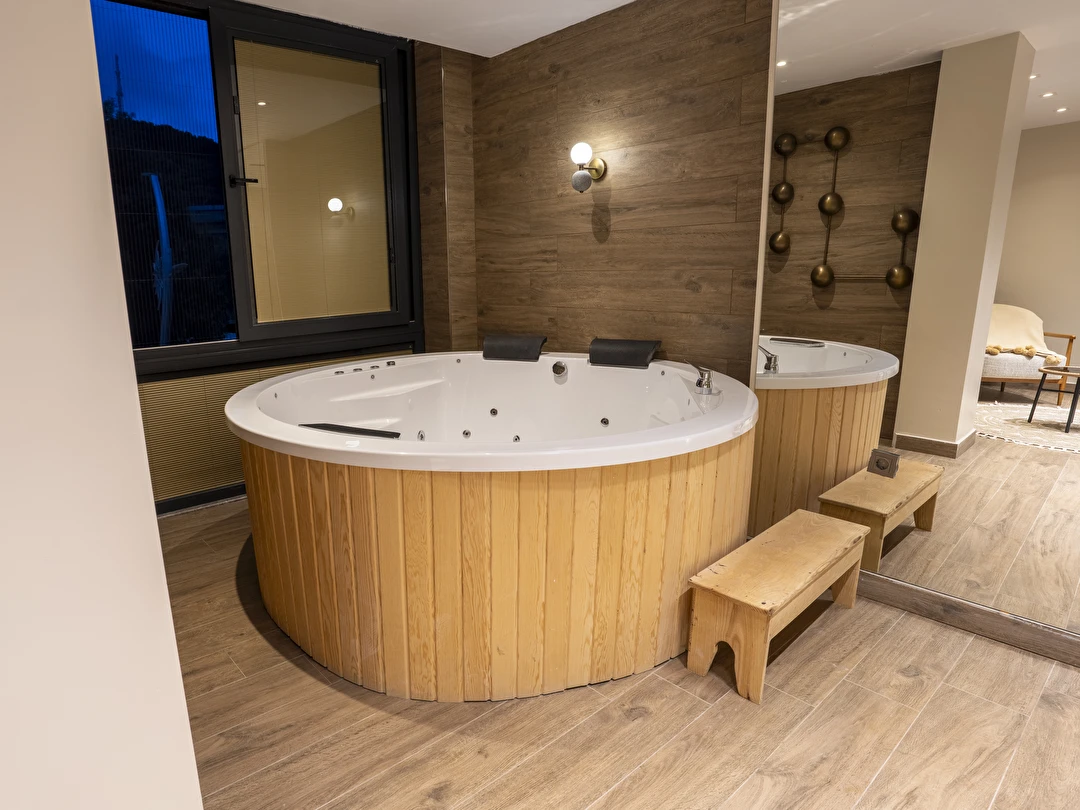 Jakuzili Suit Oda, Kısmi Nehir ve Havuz Manzaralı, Sauna ve Hamamlı, Jakuzili Balayı Odası, Bahçe Manzaralı, Sauna ve Hamamlı ve Çatı Katı Oda-Jakuzili, Dağ veya Havuz Manzaralı, Sauna ve Hamamlı tiplerinde 3. kişi için ilave yatak eklenebilmektedir.