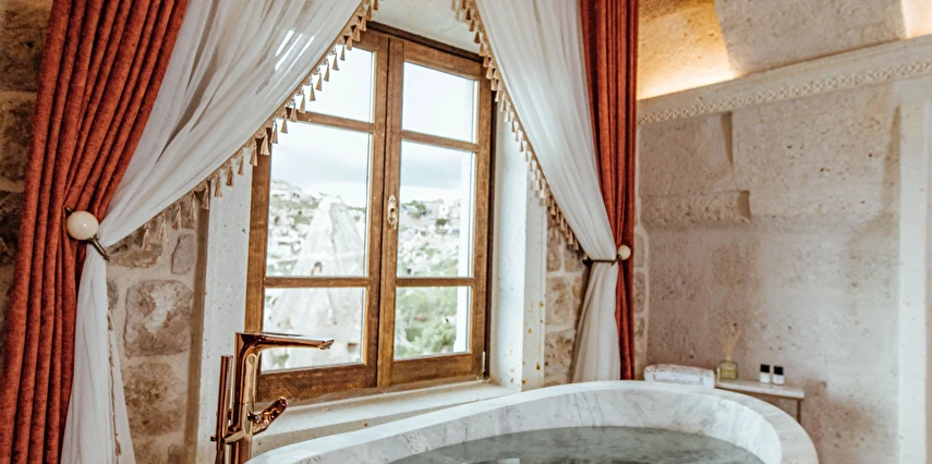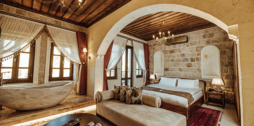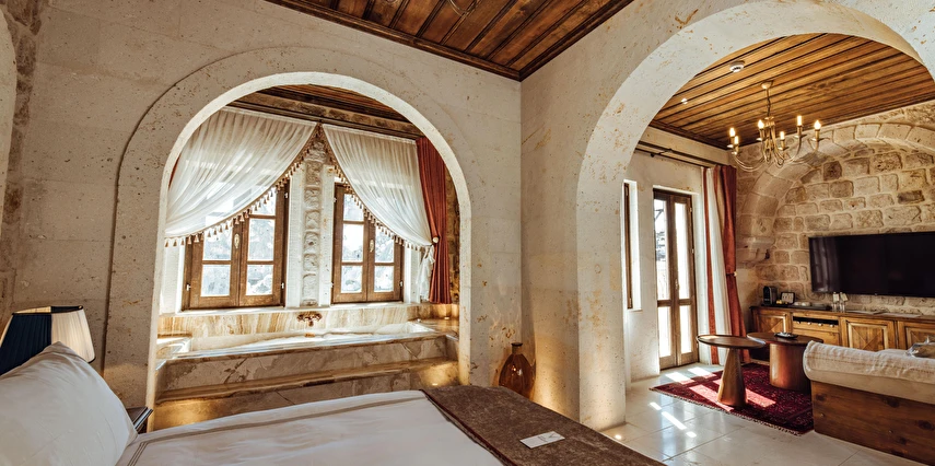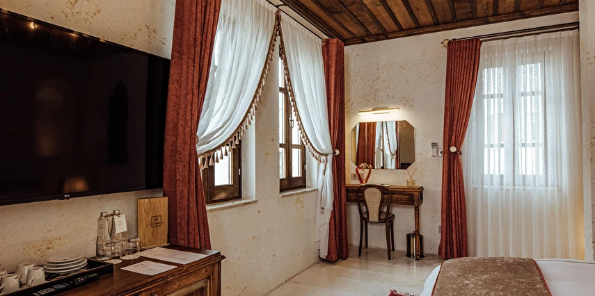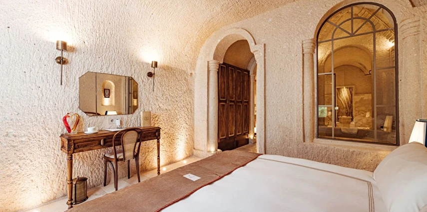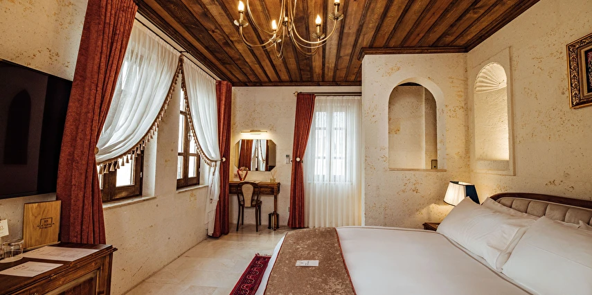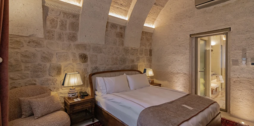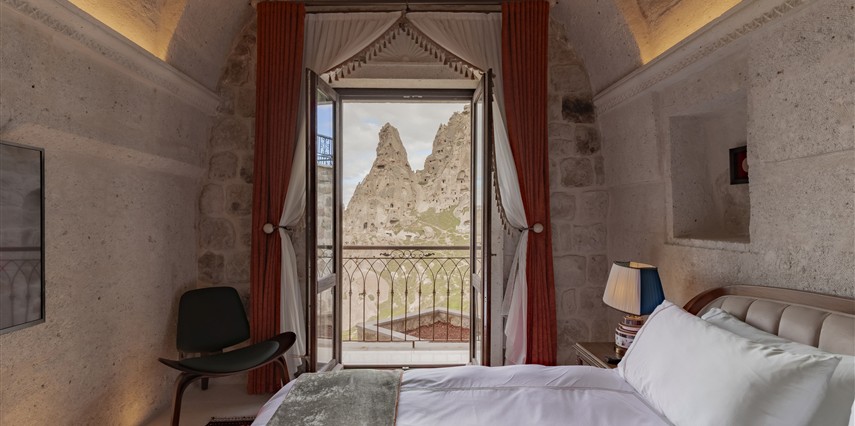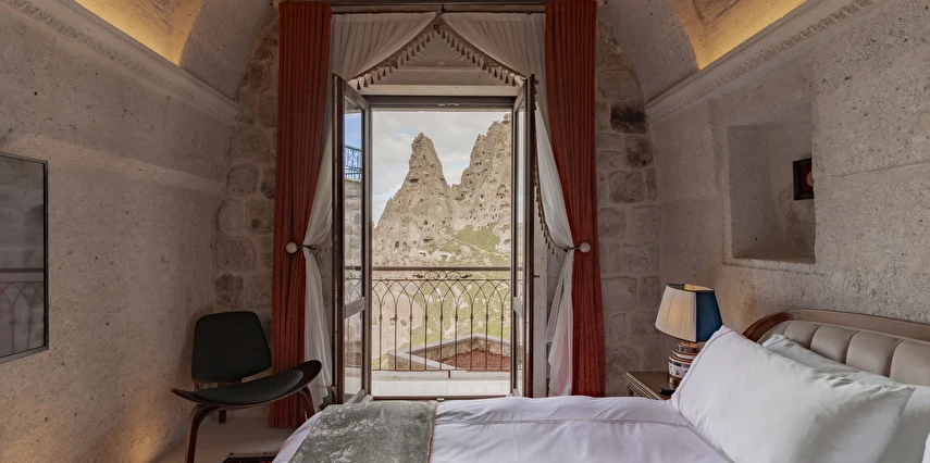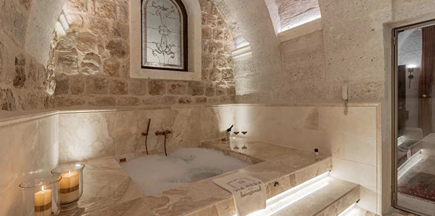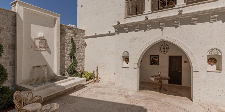Kapadokya’nın tarihi dokusu ile sizi bekleyen benzersiz bir deneyim. Özgün ve çağdaş mimarinin, usta ellerin estetik dokunuşlarıyla buluşması sonucu, birbirinden farklı ve özel olarak tasarlanan 11 odası ile, lüksün ve konforun tanımını yeniden değiştiren Via Regia Hotel Cappadocia, milyonlarca yıllık geçmişi, olağanüstü güzel doğası ve tarihin bütünleştiği, Kapadokya bölgesinin, en özel yeri olan Uçhisar kalesinin yanı başında konumlanmıştır