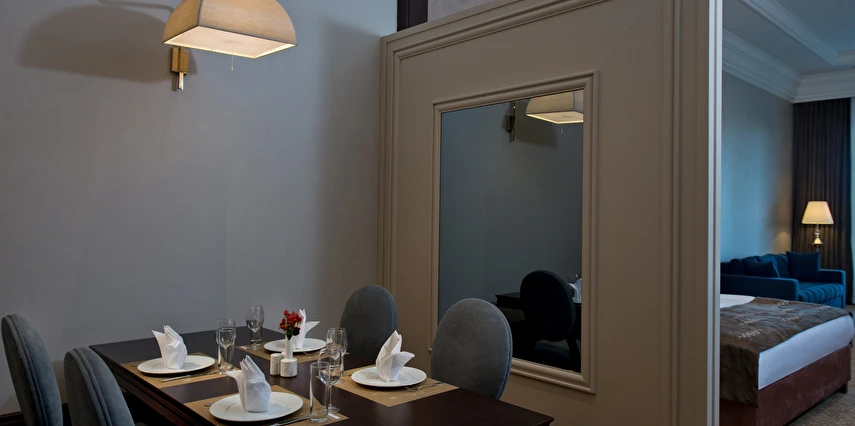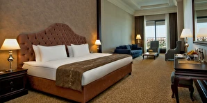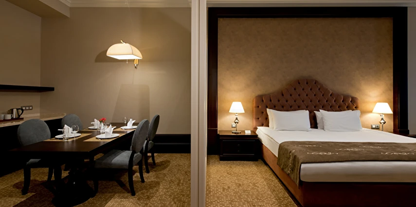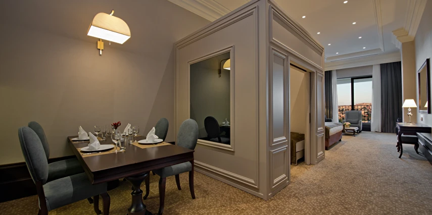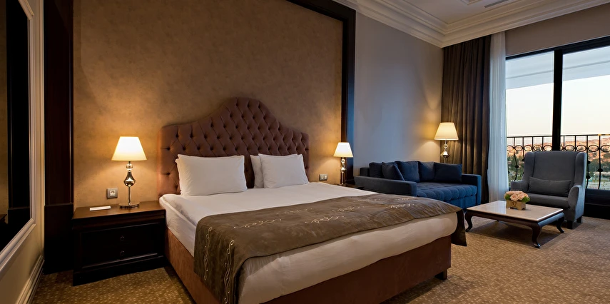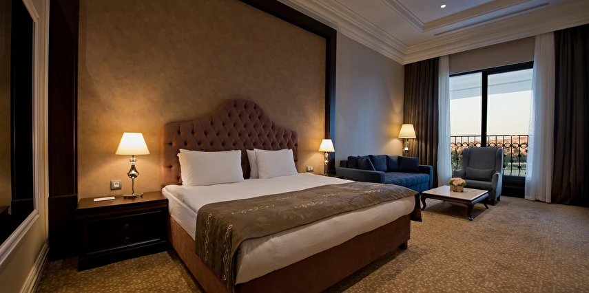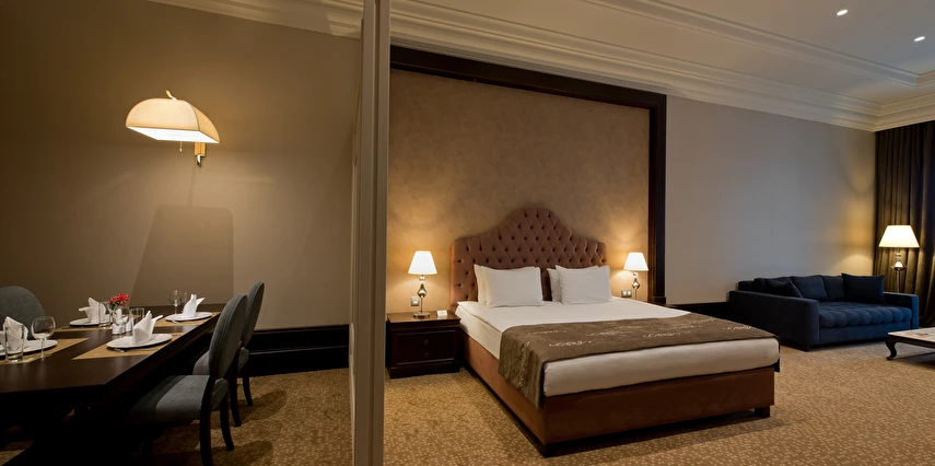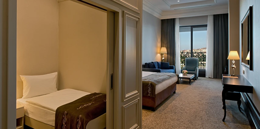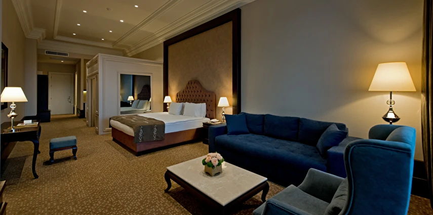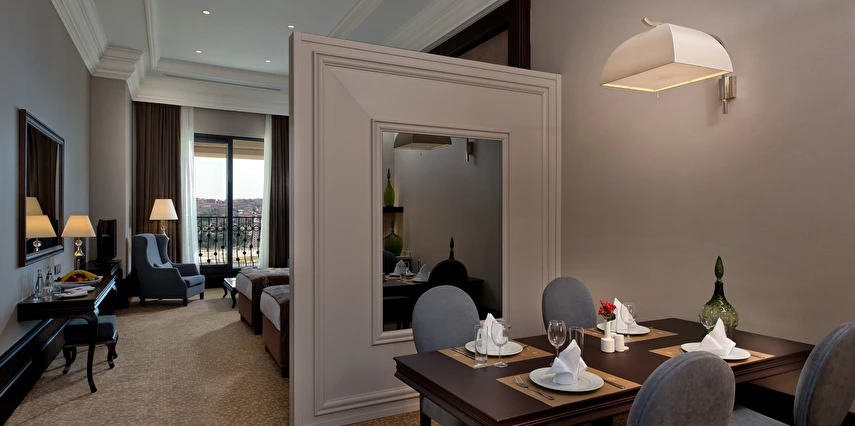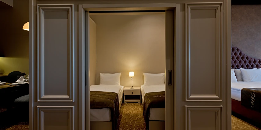 Vialand Palace Hotel; 60 ve 110 metrekare arasında değişen 100 süit: 74 Deluxe Süit, 22 Family Süit (özel çocuk bölmesi ve iki adet çocuk yatağı) 2 Honeymoon Süit and 3 King Süiti’yle, eşsiz bir konaklama imkanı sunuyor. Seçkin bir otel konforunu, ev sıcaklığında tecrübe edin. Bir veya iki yatak odalı süitlerimizde; oturma grubu alanı, yemek masası ve diğer imkanlarla evinizin konforunda konaklayabilirsiniz.