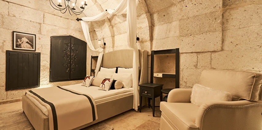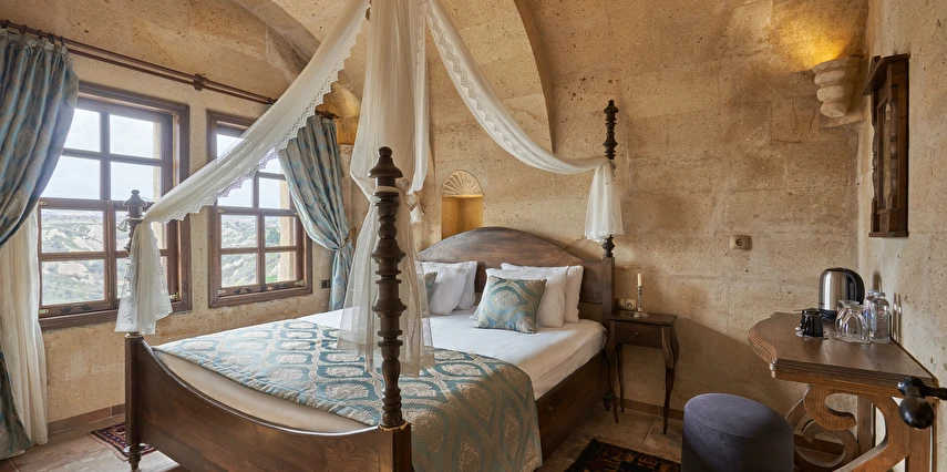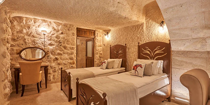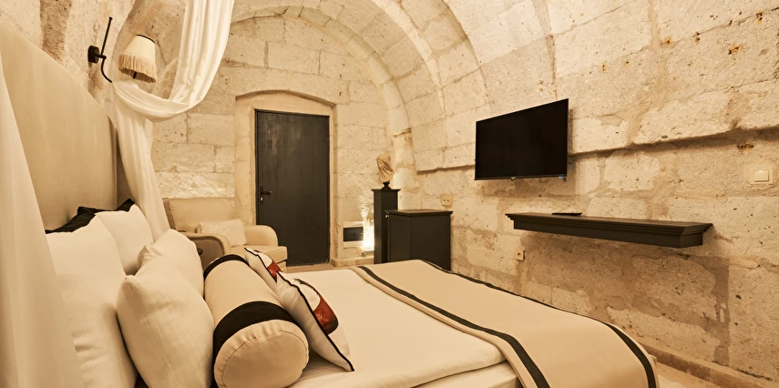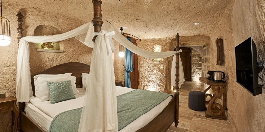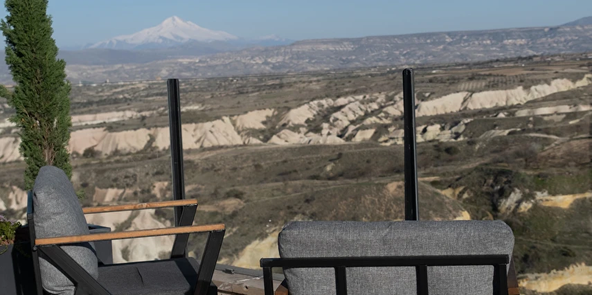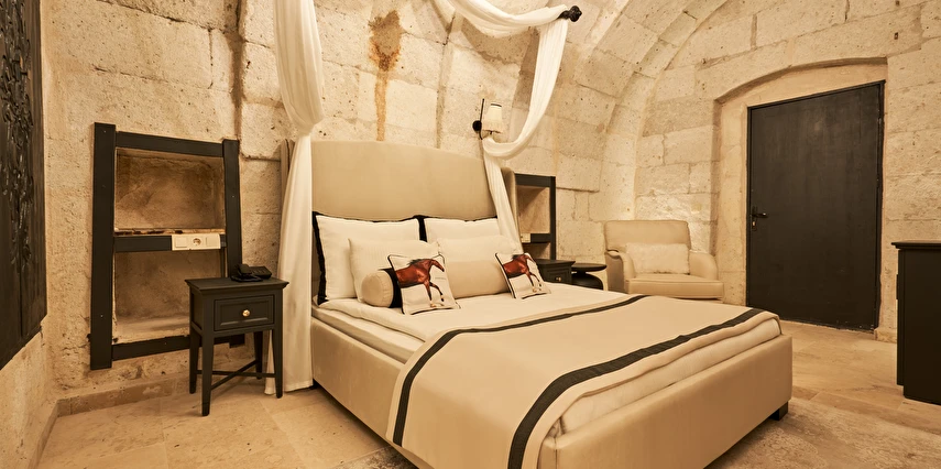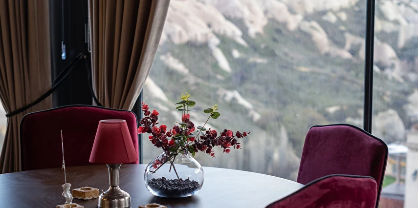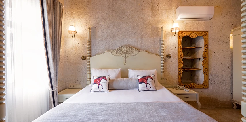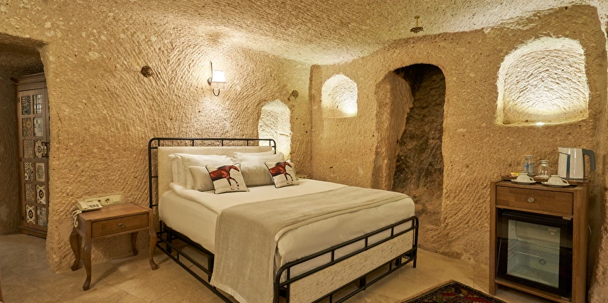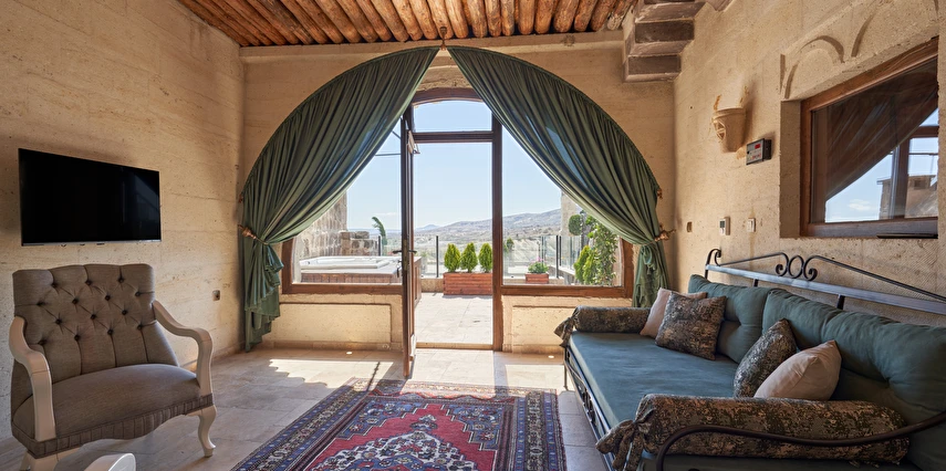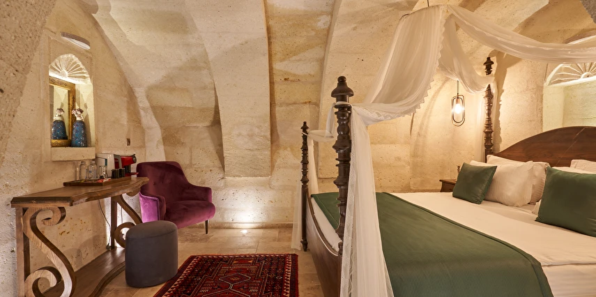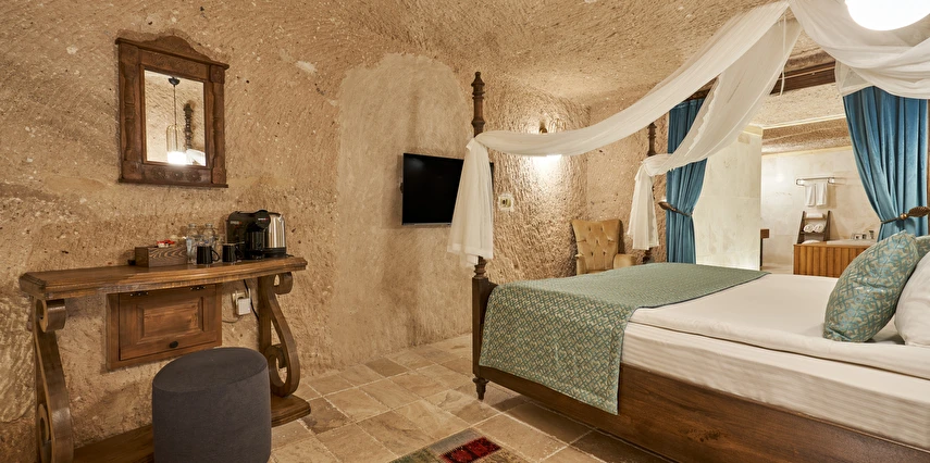 Tesis, bölgenin karakteristik kaya ve vadi manzaralarının tam ortasında konumlanmış olup, hem kültürel keşifler hem de dinlenme odaklı konaklamalar için ideal bir nokta sunar. Gününüzü Kapadokya’nın hikâyelerini keşfederek, sabahları ise gün doğumunun ve vadilerin büyüsünü izleyerek geçirebilirsiniz.