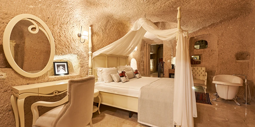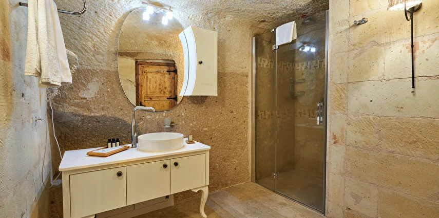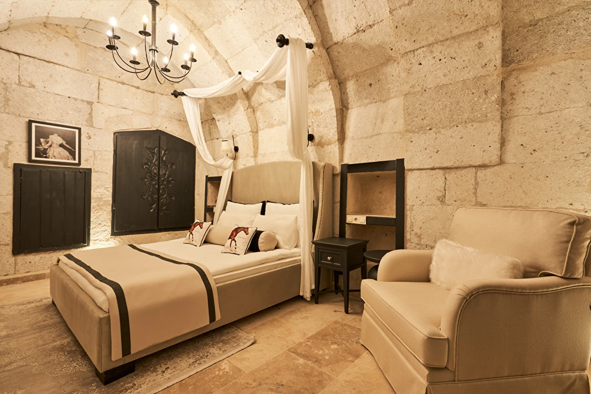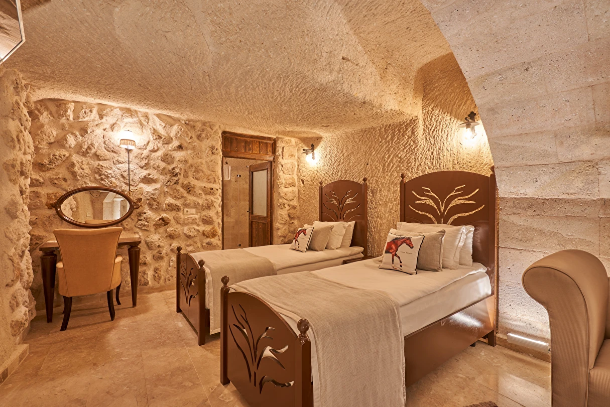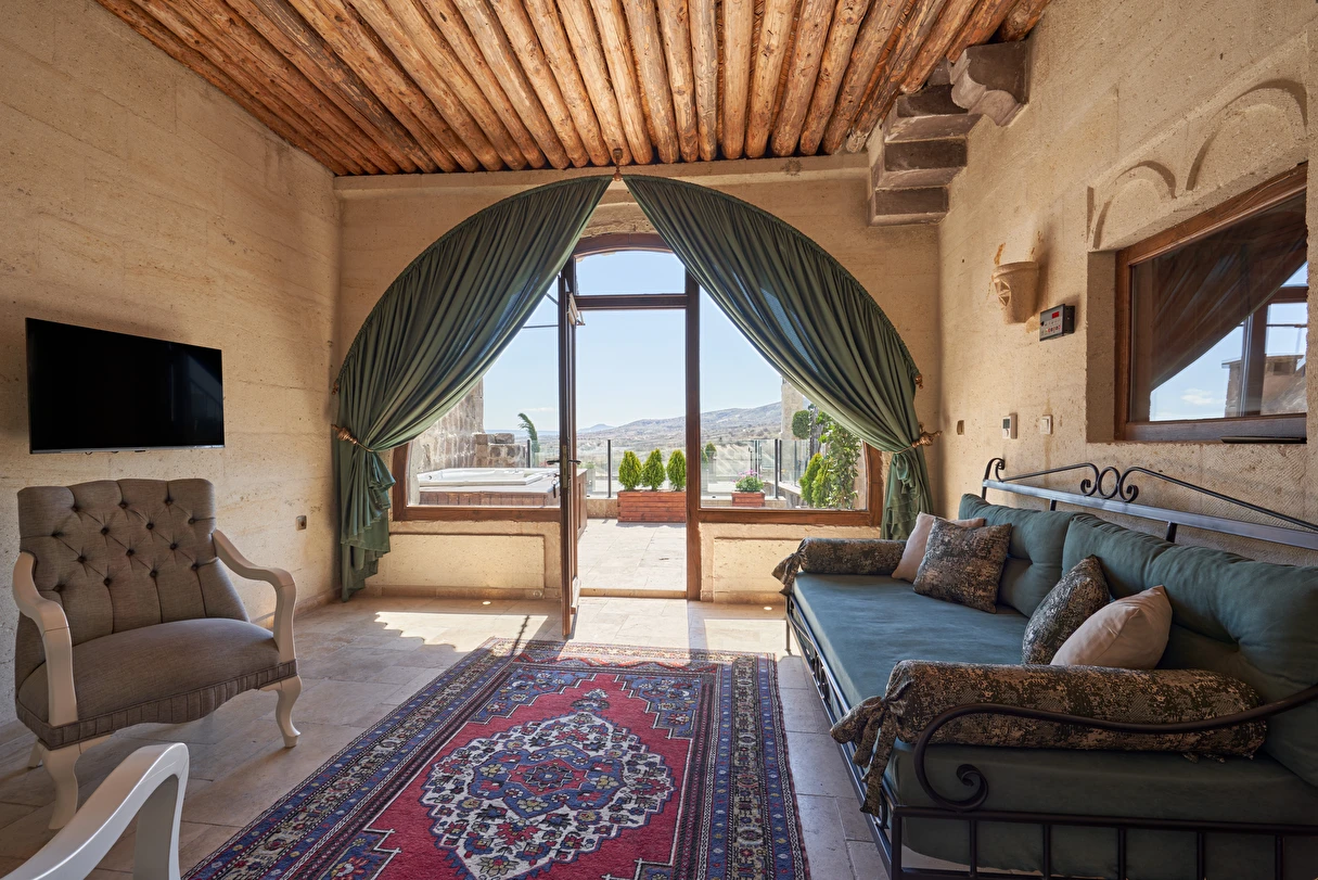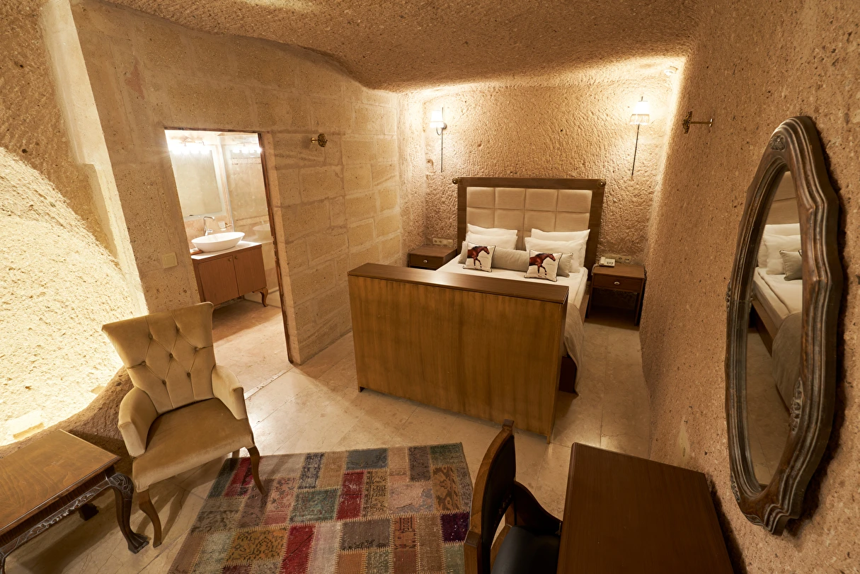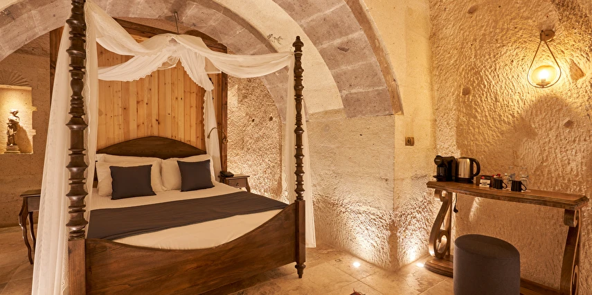 Tesis, bölgenin karakteristik kaya ve vadi manzaralarının tam ortasında konumlanmış olup, hem kültürel keşifler hem de dinlenme odaklı konaklamalar için ideal bir nokta sunar. Gününüzü Kapadokya’nın hikâyelerini keşfederek, sabahları ise gün doğumunun ve vadilerin büyüsünü izleyerek geçirebilirsiniz.
