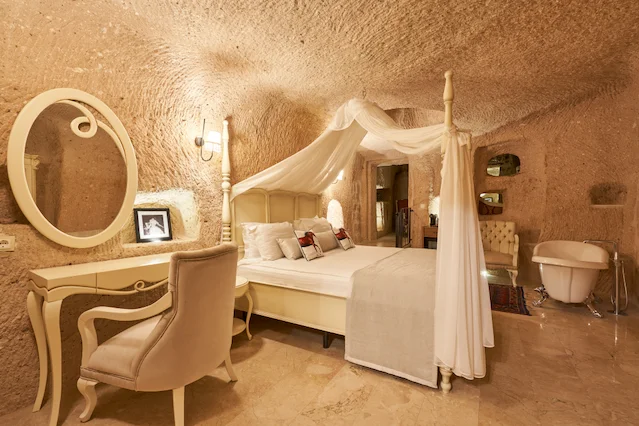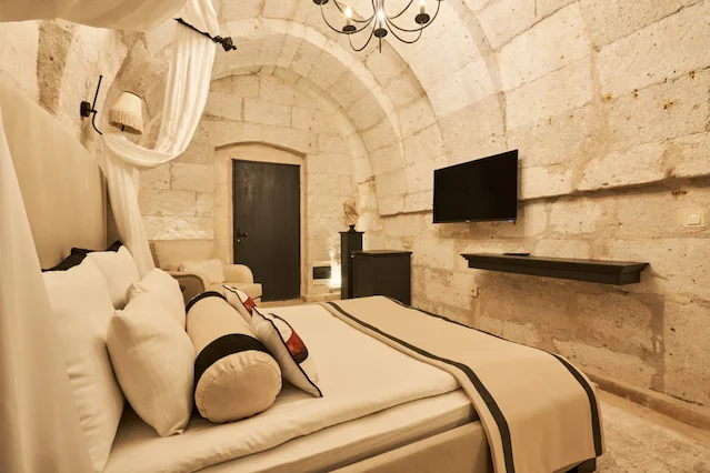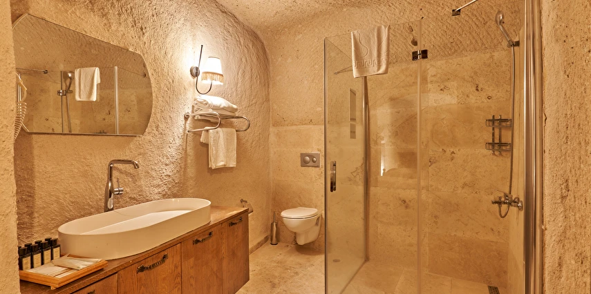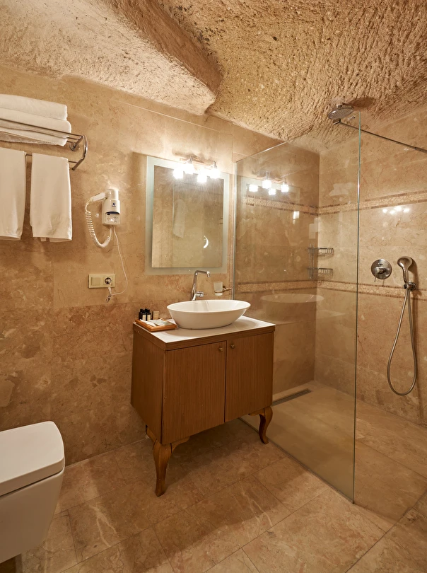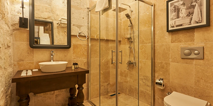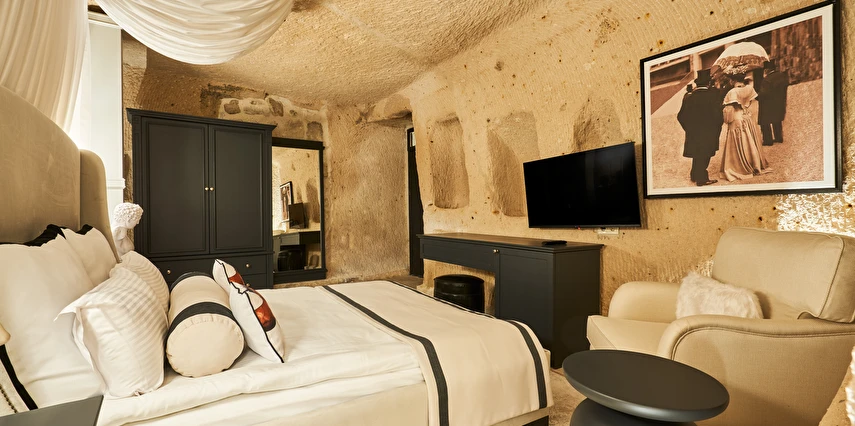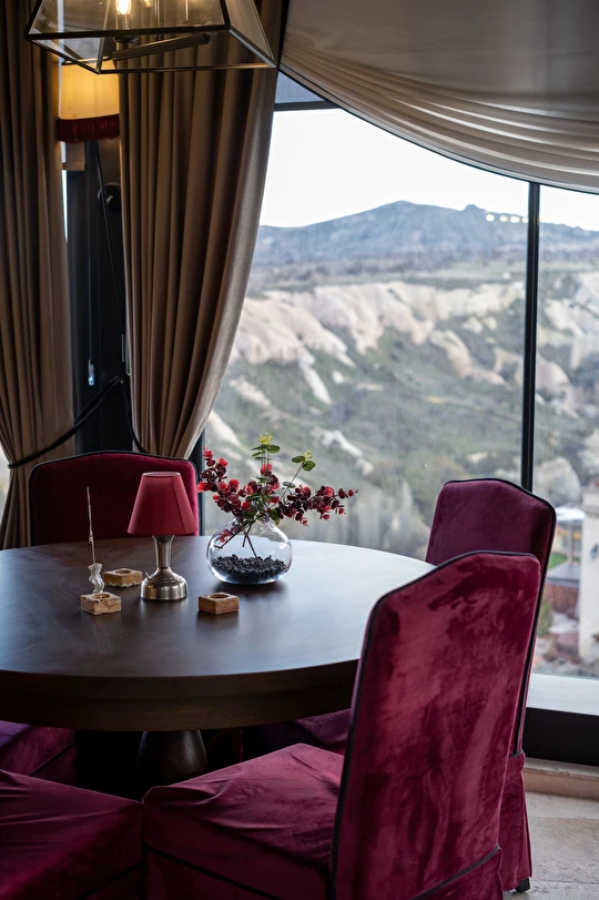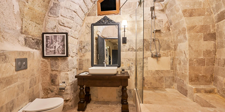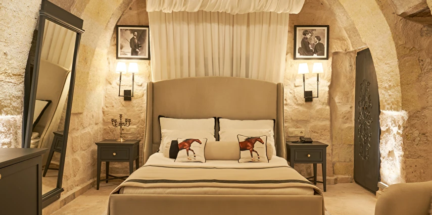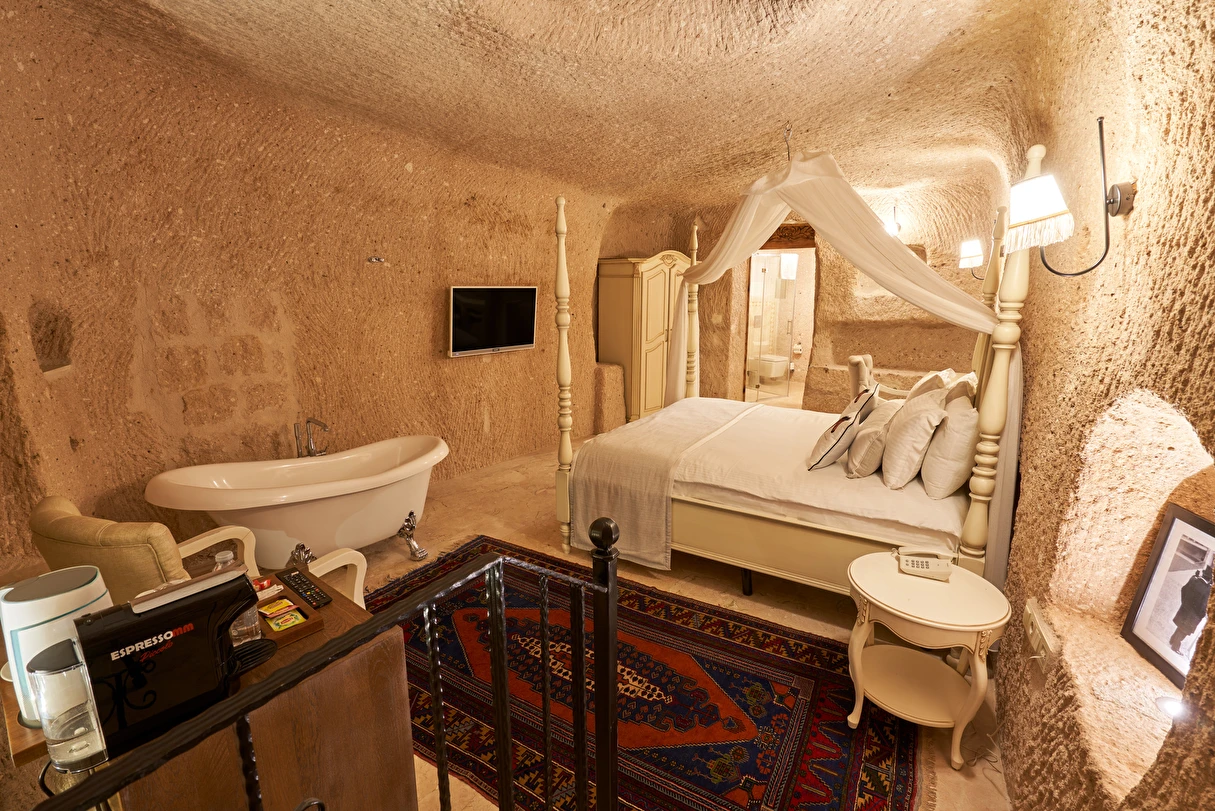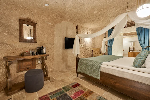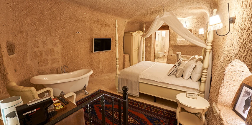 Tesis, bölgenin karakteristik kaya ve vadi manzaralarının tam ortasında konumlanmış olup, hem kültürel keşifler hem de dinlenme odaklı konaklamalar için ideal bir nokta sunar. Gününüzü Kapadokya’nın hikâyelerini keşfederek, sabahları ise gün doğumunun ve vadilerin büyüsünü izleyerek geçirebilirsiniz.
