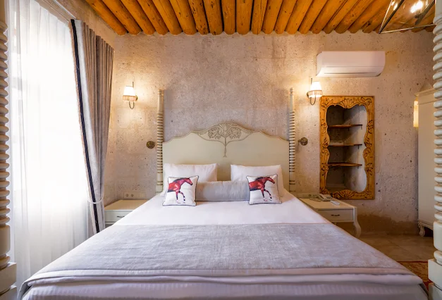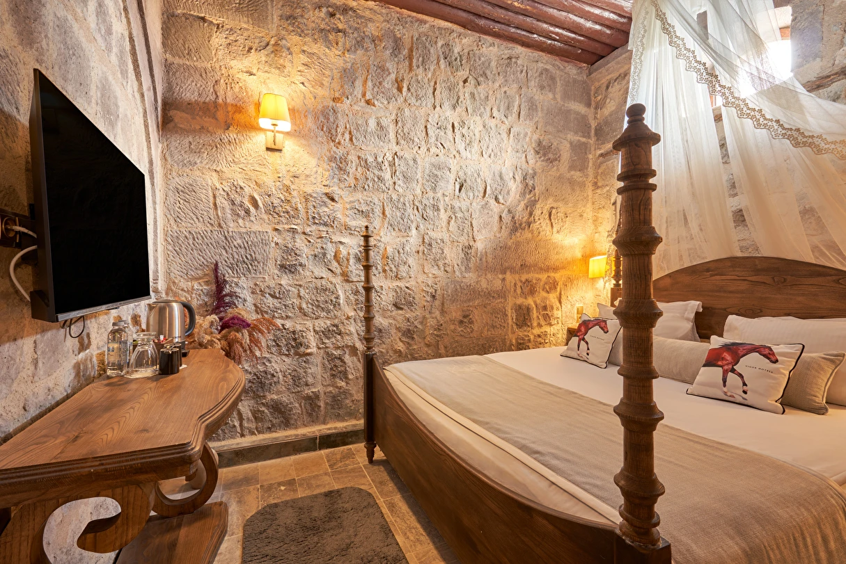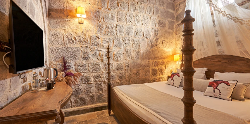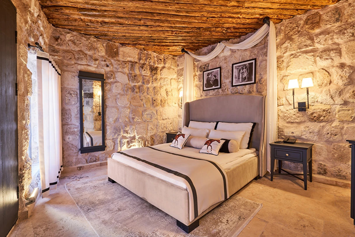 Odaların dekorasyonunda yerel mimarinin izleri korunurken, modern yaşamın gerektirdiği tüm detaylara yer verilmiştir. Kablosuz internet, minibar, klima ve teras gibi olanaklar sayesinde konforunuz ön planda tutulmuştur.