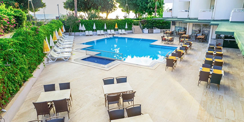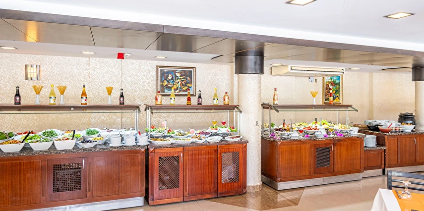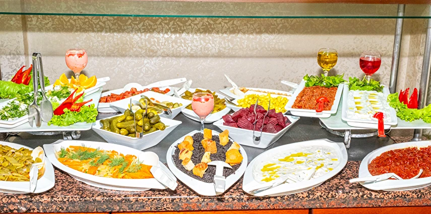 Sabah kahvaltısı, öğle ve akşam yemekleri açık büfe olup, tesisin belirlemiş olduğu saatler ve markalar dahilinde yerli alkollü ve alkolsüz içecekler 10:00 ile 23:00 a kadar ücretsizdir. Saat 23:00`dan itibaren tüm yiyecek ve içecekler ücretlidir. İthalat içecekleri, her türlü kokteyller, alkollü kokteyller, taze meyve suları, dondurma, şişelenmiş içecekler, Türk kahvesi, espresso, cappuchino ücretlidir.