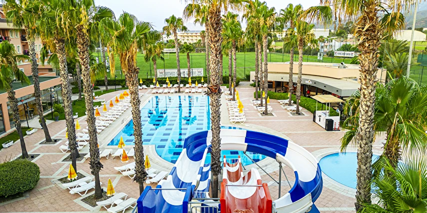 Su kaydırakları 01.05 - 15.10.2026 tarihleri arasında aktif olacaktır. Günlük çalışma saatleri otel yönetimi tarafından özel koşullara ve mevsimsel nedenlere göre değiştirilebilir.