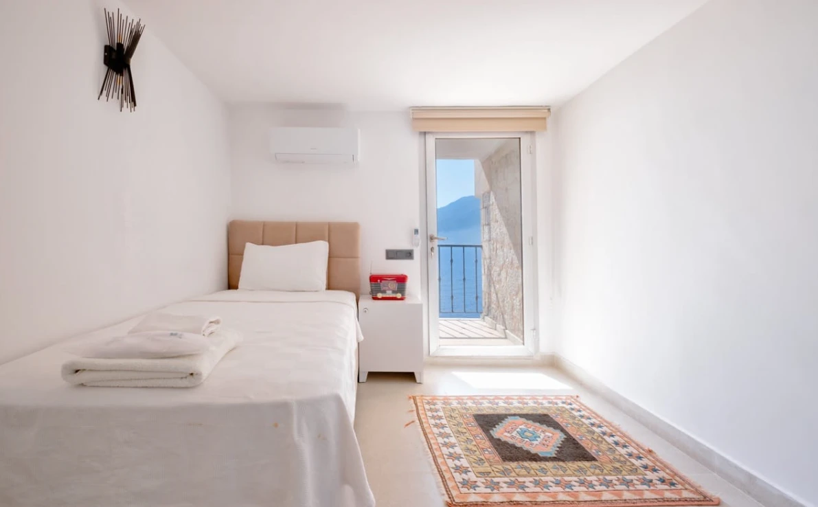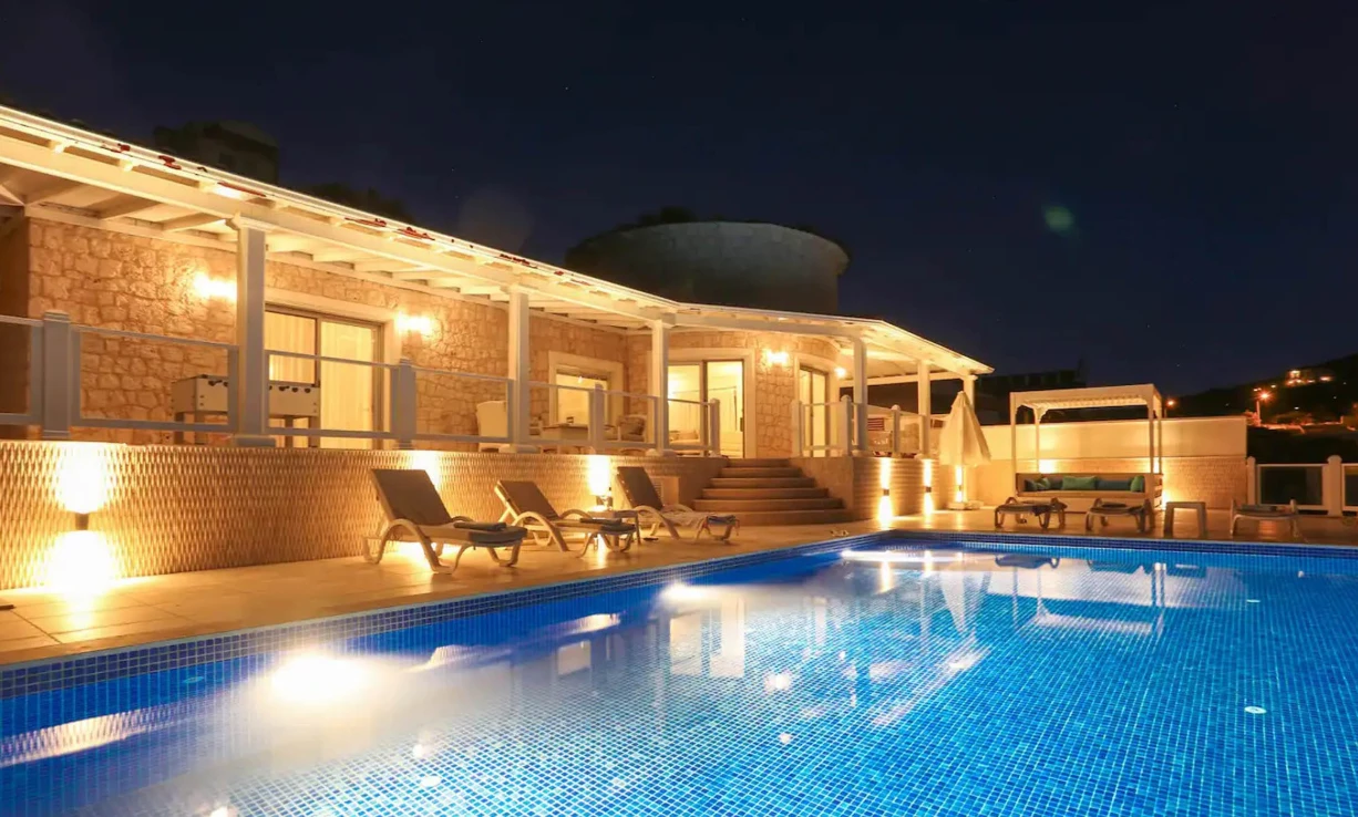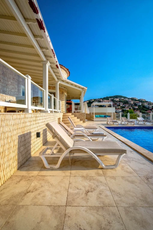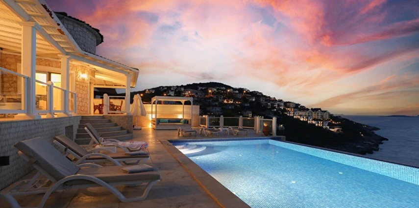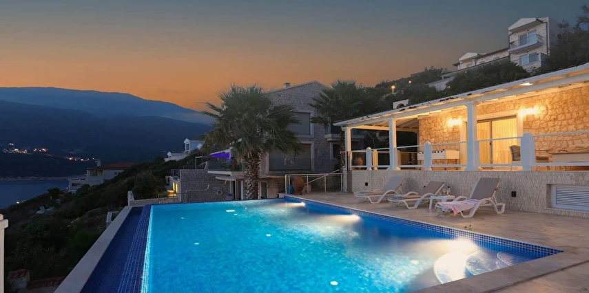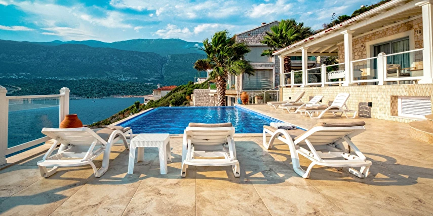 Yatak odaları ve banyolar şık bir şekilde tasarlanmış ve modern olanaklarla tam donatılmıştır, böylece maksimum konfor ve kolaylık sağlanır. Villanın sonsuzluk havuzu nefes kesen deniz manzaraları sunar ve palmiye, hurma, portakal, limon ve zeytin ağaçlarıyla dolu güzel bir bahçe ile çevrilidir. Konuklar, rahat açık hava oturma alanında dinlenebilir, havuzun yanındaki kamelya yatağında uyuyabilir veya langırt oynayabilir. Villada ayrıca özel bir kapalı otopark da bulunmaktadır. Villa’nın toplam alanı 180 m2’dir ve tüm odalar klimalıdır. Mutfak tam donanımlıdır ve salonda modern ve rahat bir oturma grubu ile birlikte geniş bir düz ekran TV vardır. Villa’nın jakuzisi tamamen camla kaplıdır ve konuklar dinlenirken muhteşem deniz manzarasının keyfini çıkarabilirler. Villa Alis’te rahatlığın en üst noktasını şık bir şekilde yaşayın. Konaklamanızı ayırtın ve daha önce hiç olmadığı kadar Kaş’ın büyüleyici güzelliğini keşfedin.