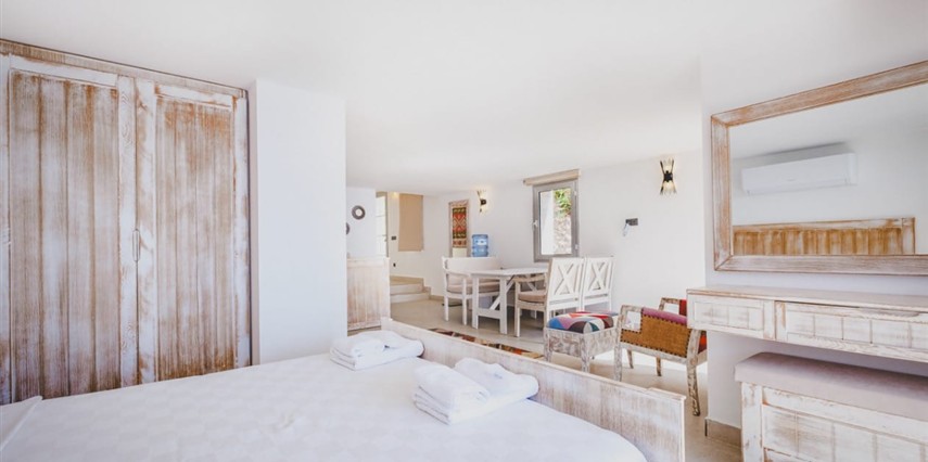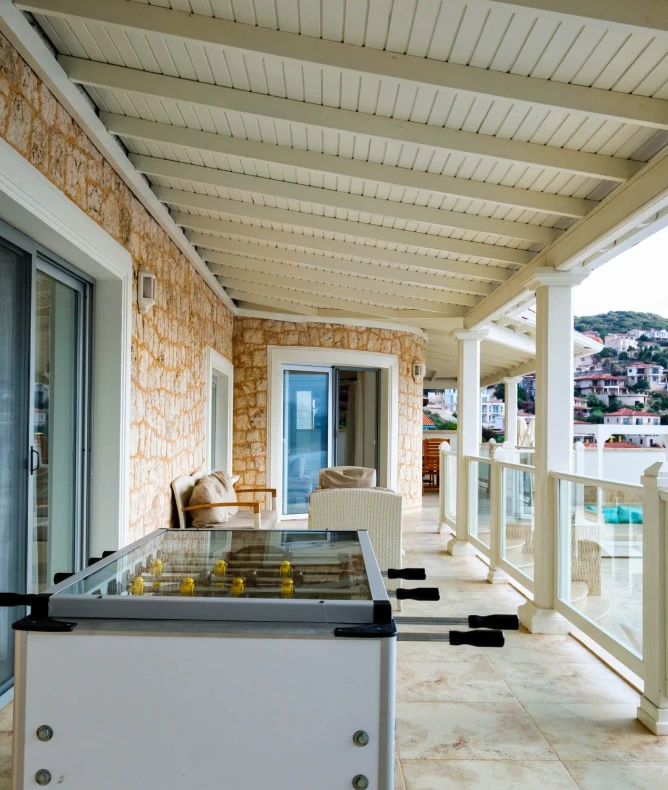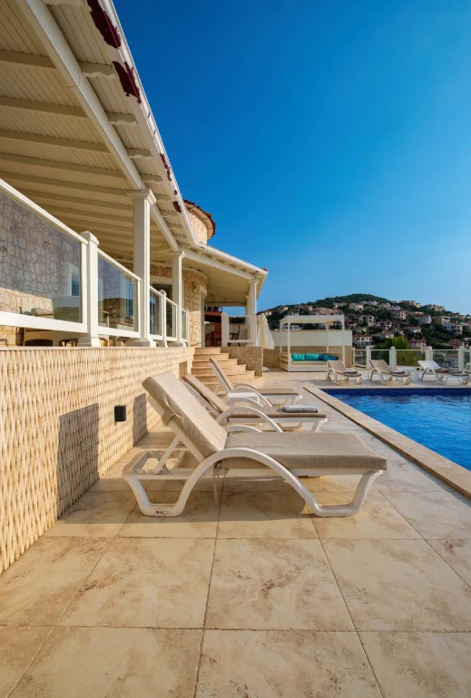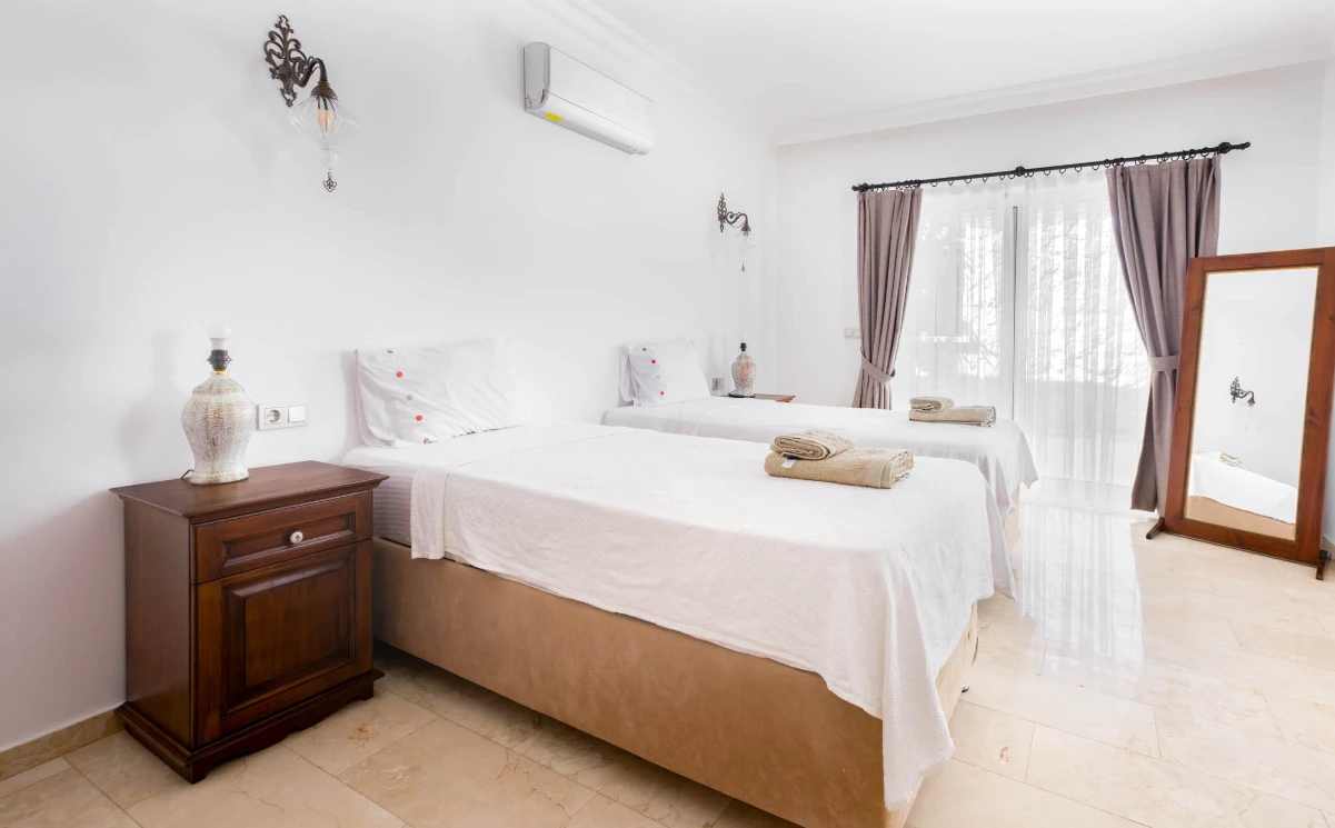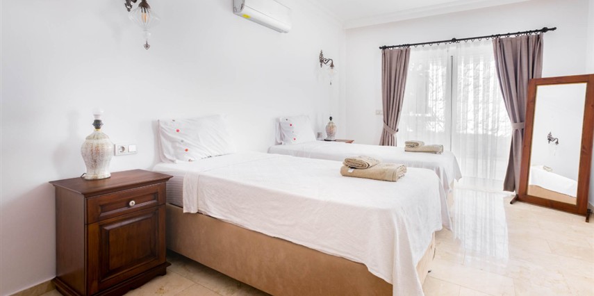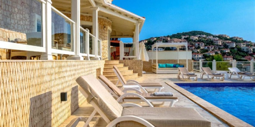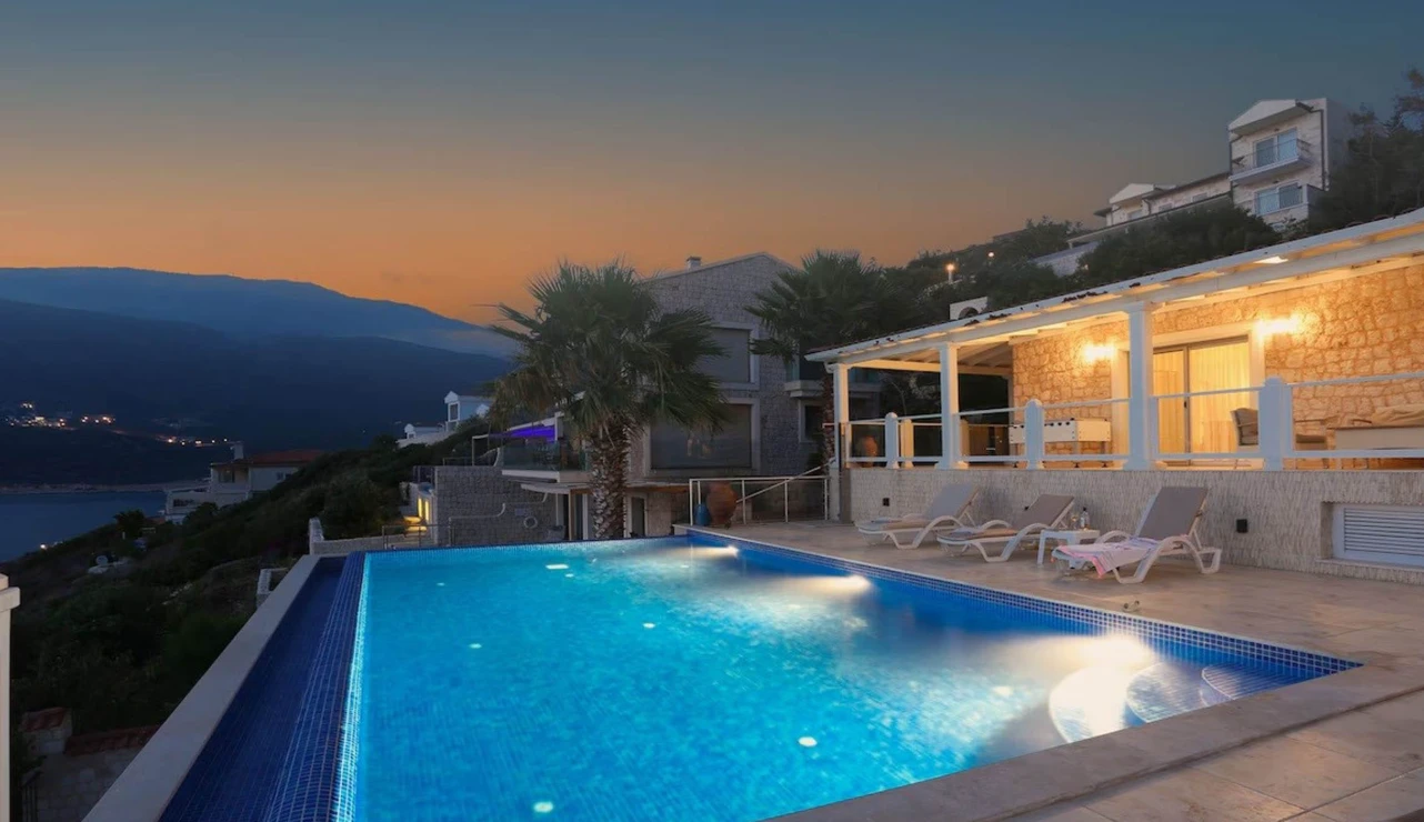 Yatak odaları ve banyolar şık bir şekilde tasarlanmış ve modern olanaklarla tam donatılmıştır, böylece maksimum konfor ve kolaylık sağlanır. Villanın sonsuzluk havuzu nefes kesen deniz manzaraları sunar ve palmiye, hurma, portakal, limon ve zeytin ağaçlarıyla dolu güzel bir bahçe ile çevrilidir. Konuklar, rahat açık hava oturma alanında dinlenebilir, havuzun yanındaki kamelya yatağında uyuyabilir veya langırt oynayabilir. Villada ayrıca özel bir kapalı otopark da bulunmaktadır. Villa’nın toplam alanı 180 m2’dir ve tüm odalar klimalıdır. Mutfak tam donanımlıdır ve salonda modern ve rahat bir oturma grubu ile birlikte geniş bir düz ekran TV vardır. Villa’nın jakuzisi tamamen camla kaplıdır ve konuklar dinlenirken muhteşem deniz manzarasının keyfini çıkarabilirler. Villa Alis’te rahatlığın en üst noktasını şık bir şekilde yaşayın. Konaklamanızı ayırtın ve daha önce hiç olmadığı kadar Kaş’ın büyüleyici güzelliğini keşfedin.