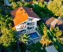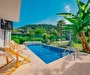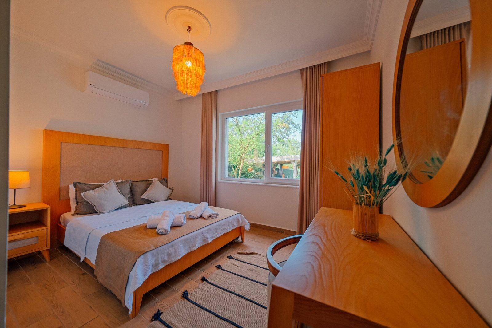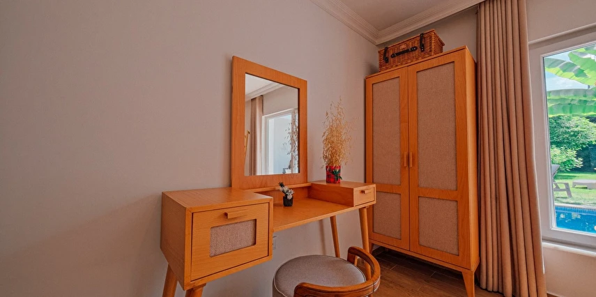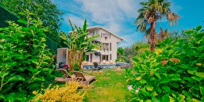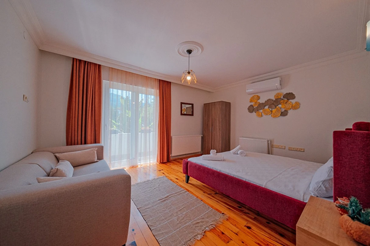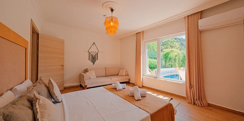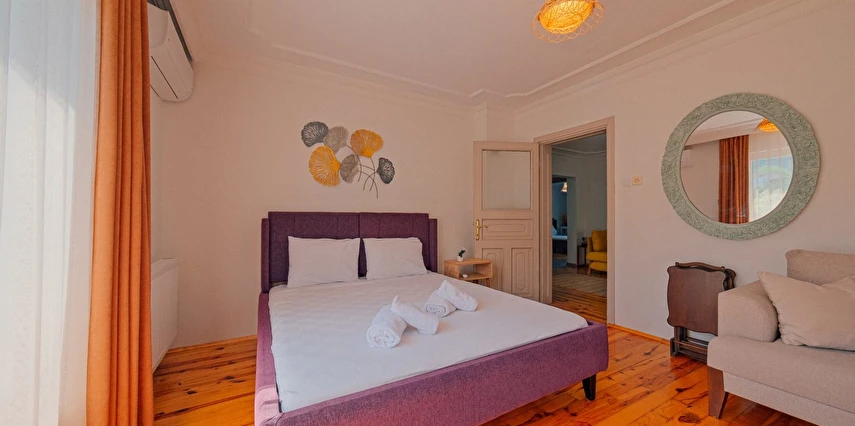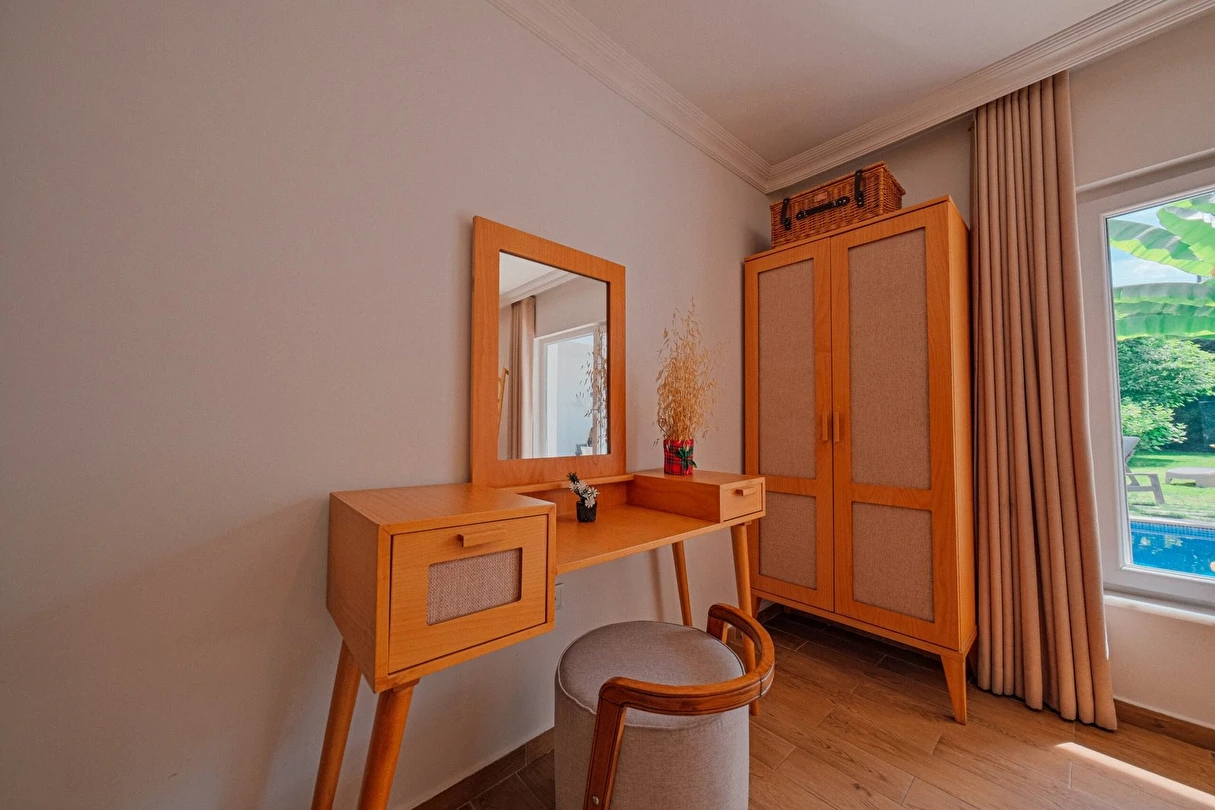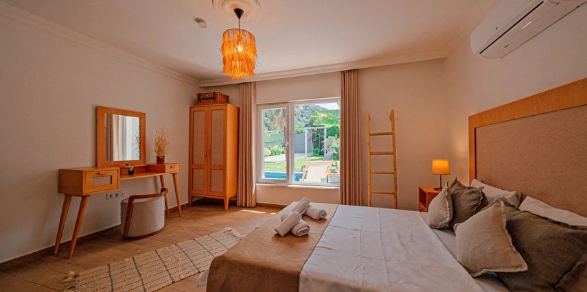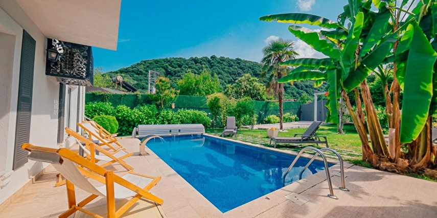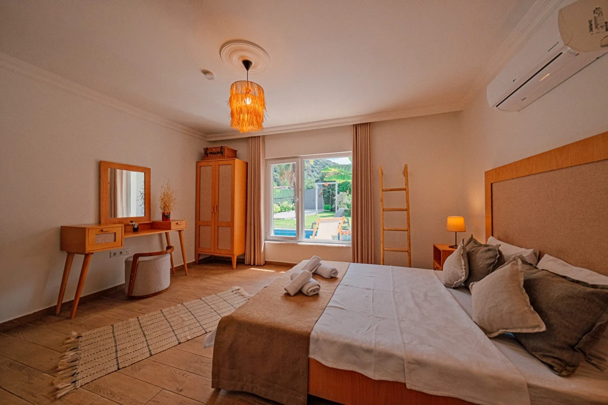 Tesisimiz bir dönüm bahçe içinde, korunaklı yüksek duvarları ile misafirlerinin mahremini önemseyen güvenlikli, 6 yatak odalı 5 banyolu 360 m² kullanım alanına sahip, uzun tatil konaklamaları için uygun, iki katlı müstakil villadır.