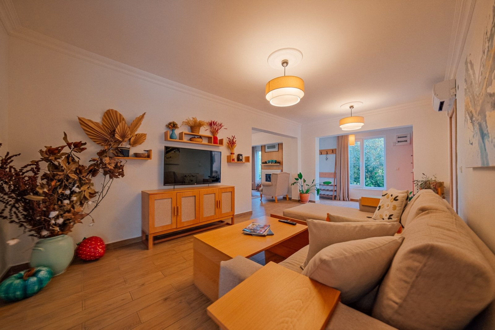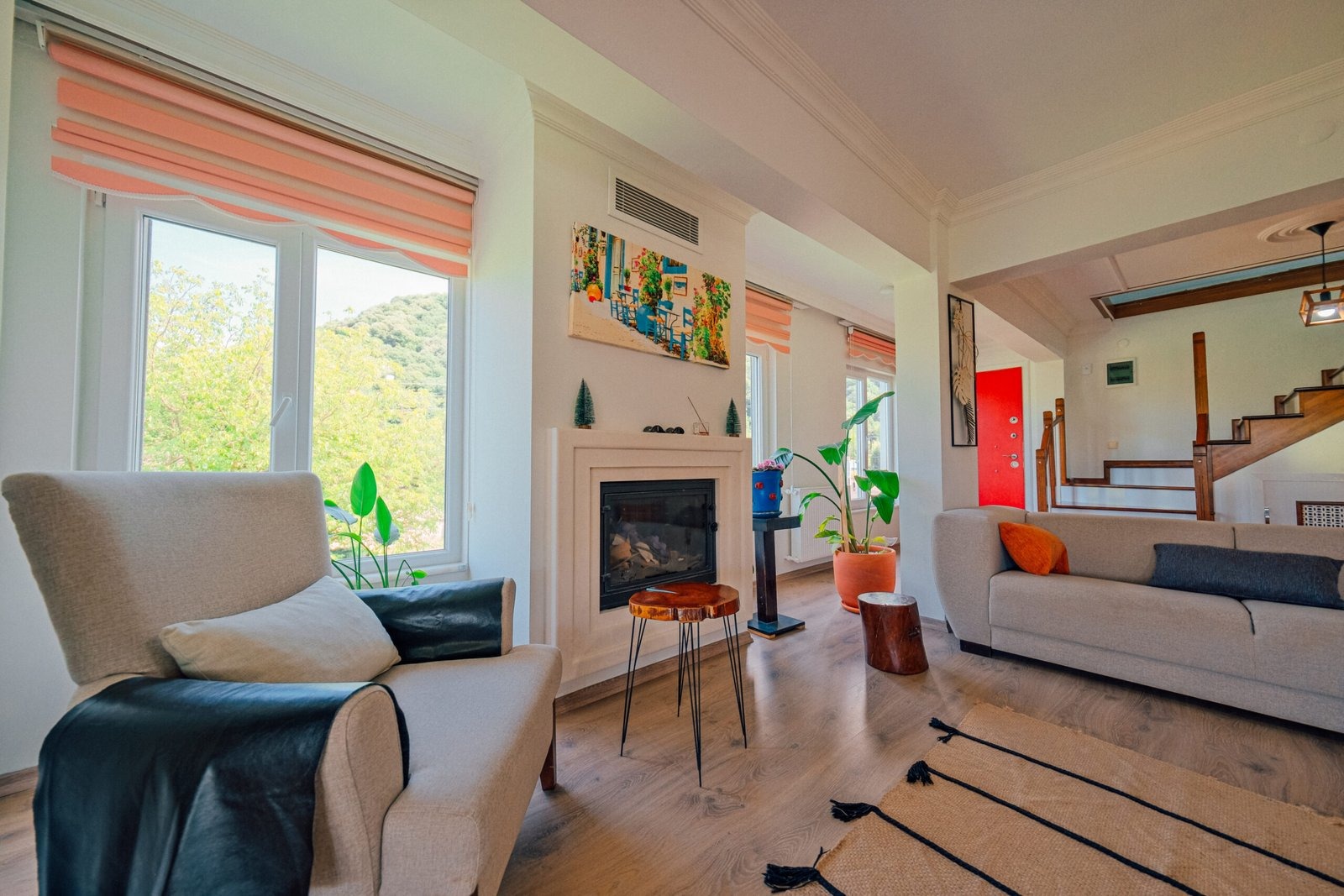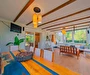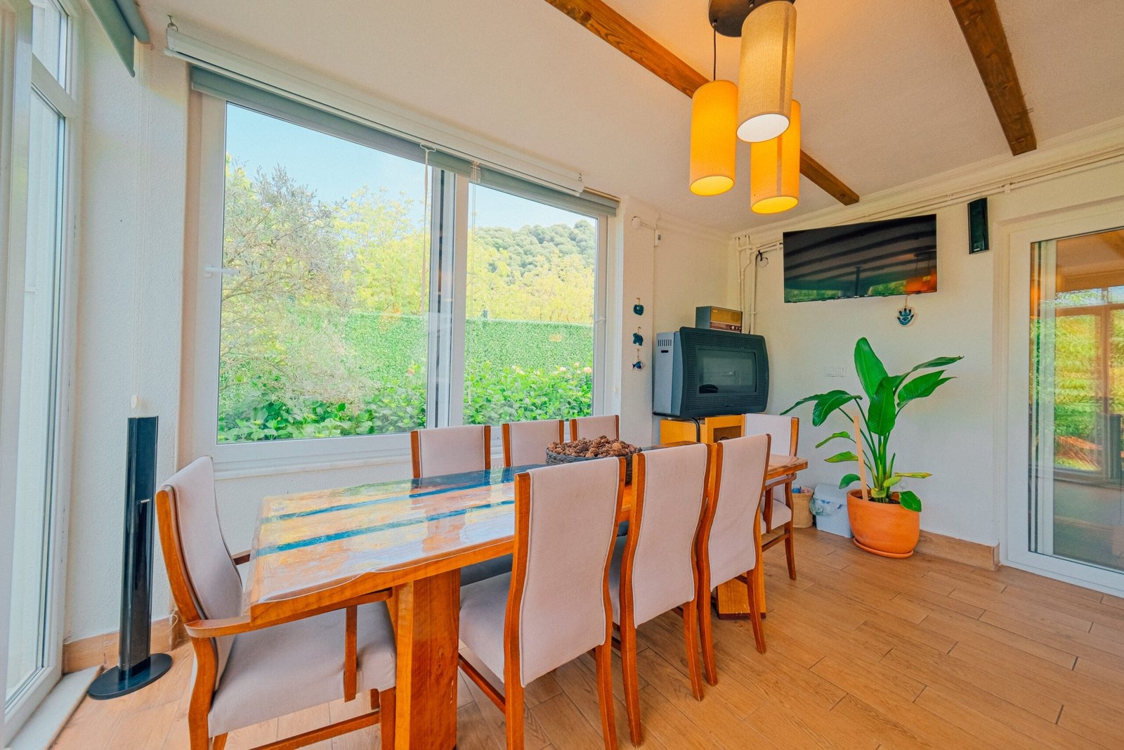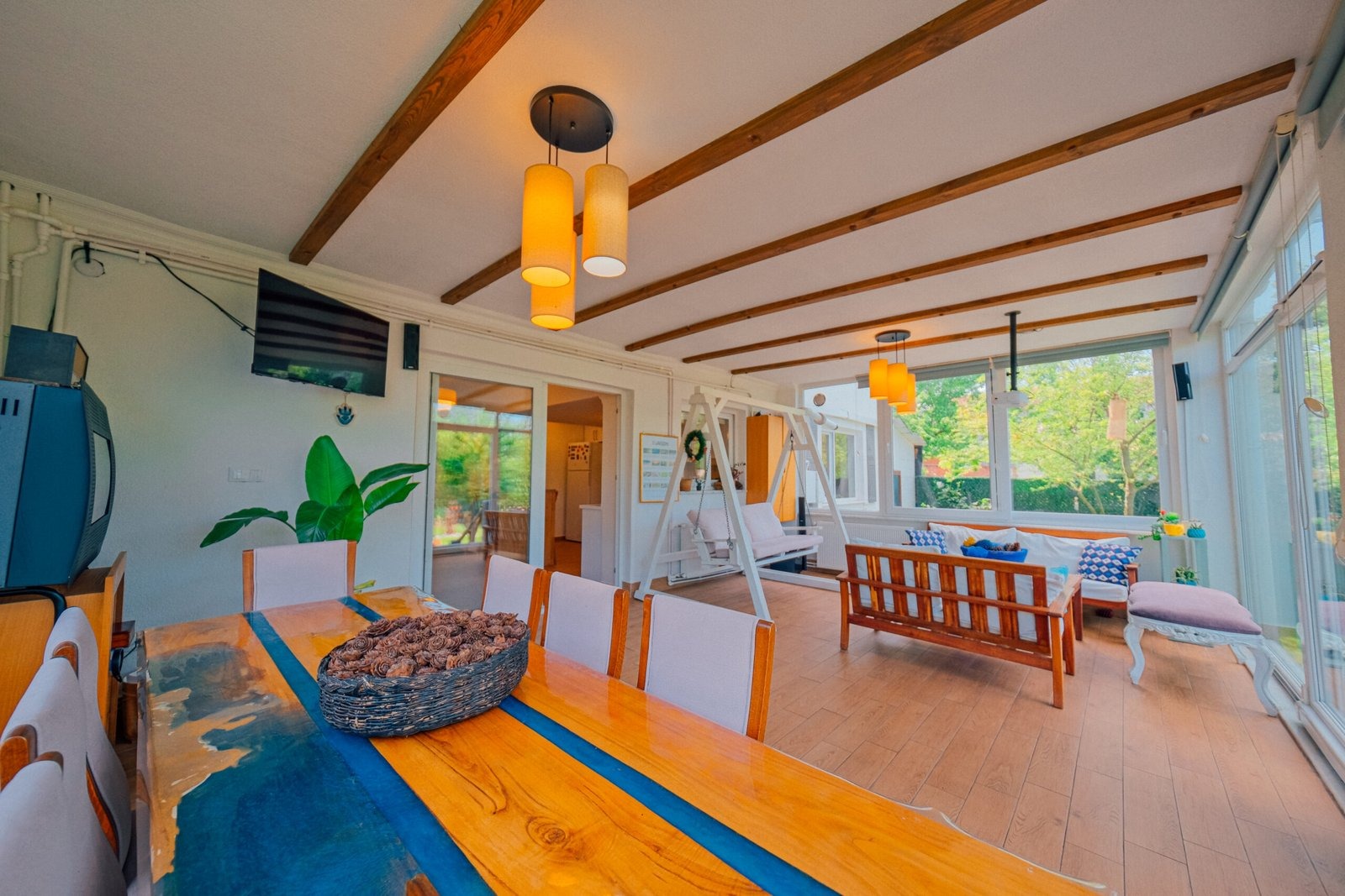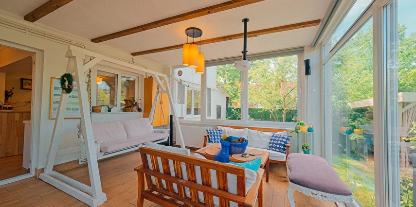 Sapanca Villa Atlas'ta 3 oda + 3 banyo, açık mutfak, salonda odun şöminesi, 30 m² camlı veranda ve doğalgaz şöminesi, üstü kapalı çardak, barbekü, otopark, Wi-Fi, Led tv, klima, doğalgaz ile alttan ısıtma, tüm bahçe korunaklıdır dışarıdan görünmez.