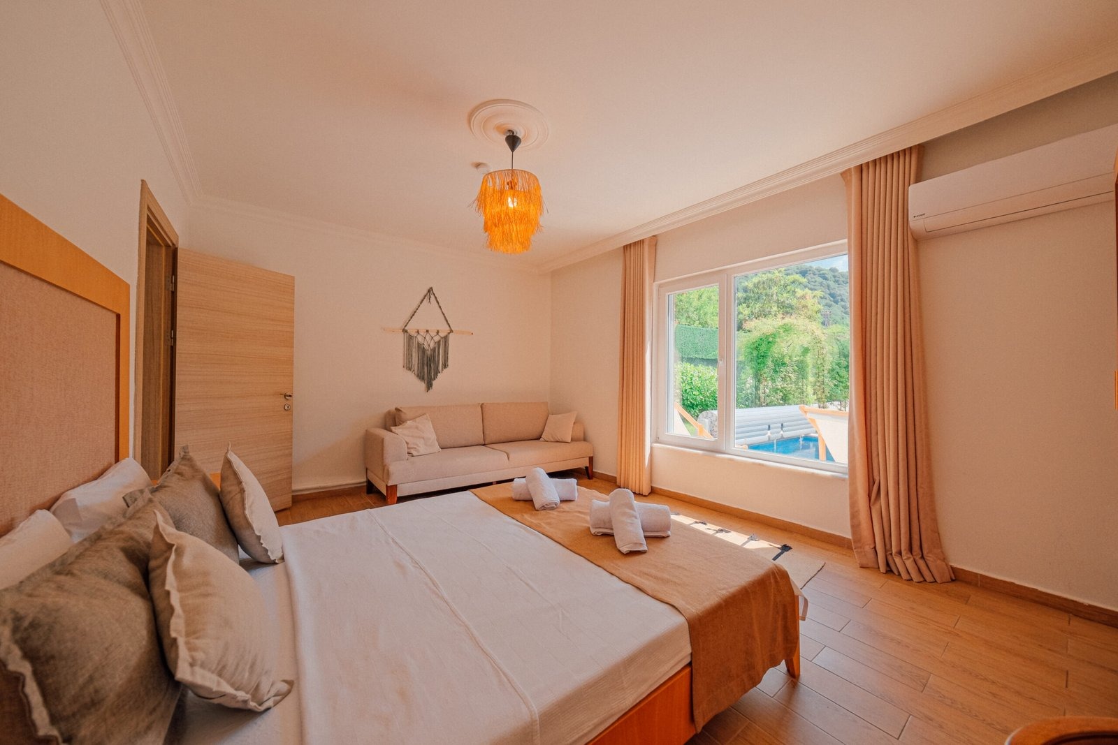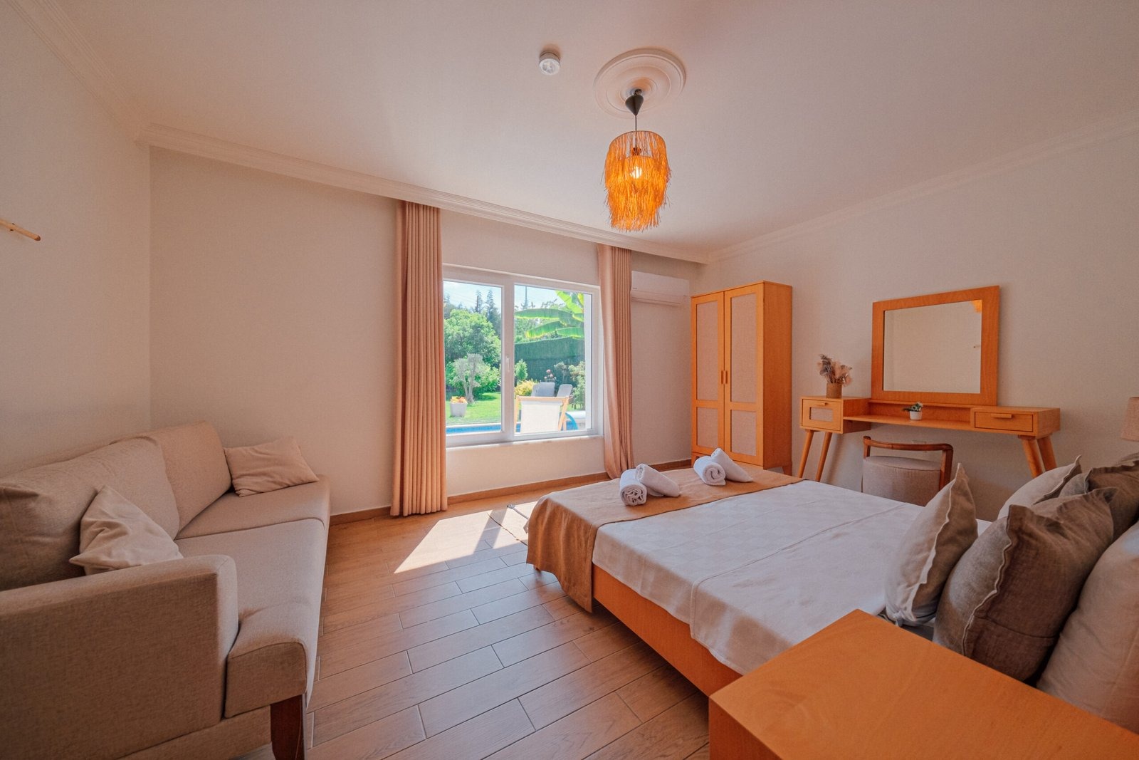 Sadece 1. kat konaklamaya müsaittir. Diğer katlar boştur, tüm ev, bahçe ve havuz size aittir.