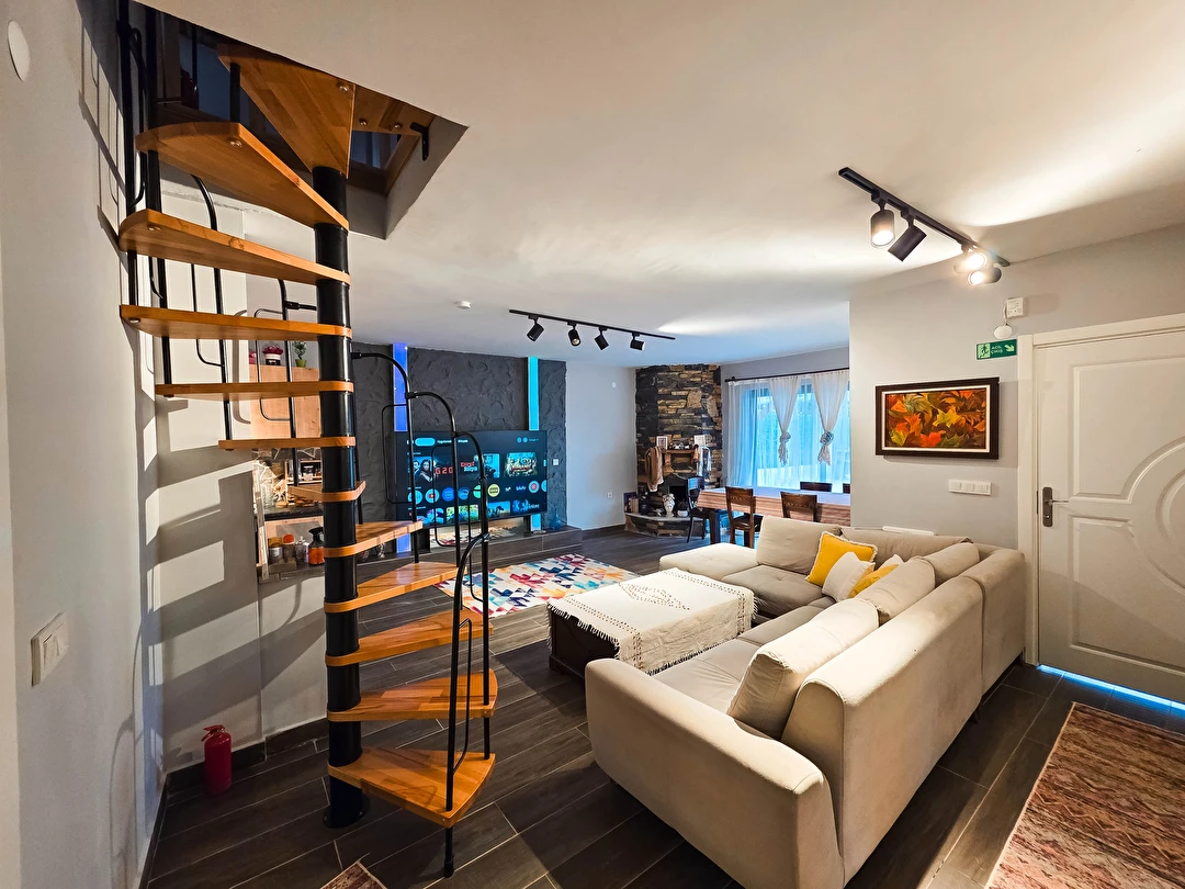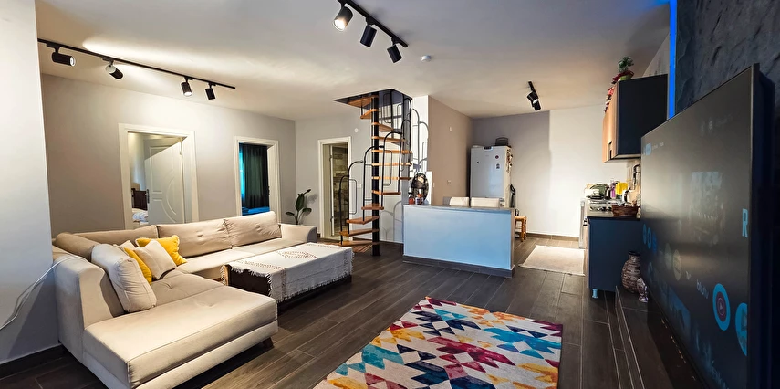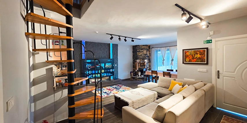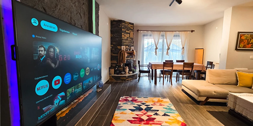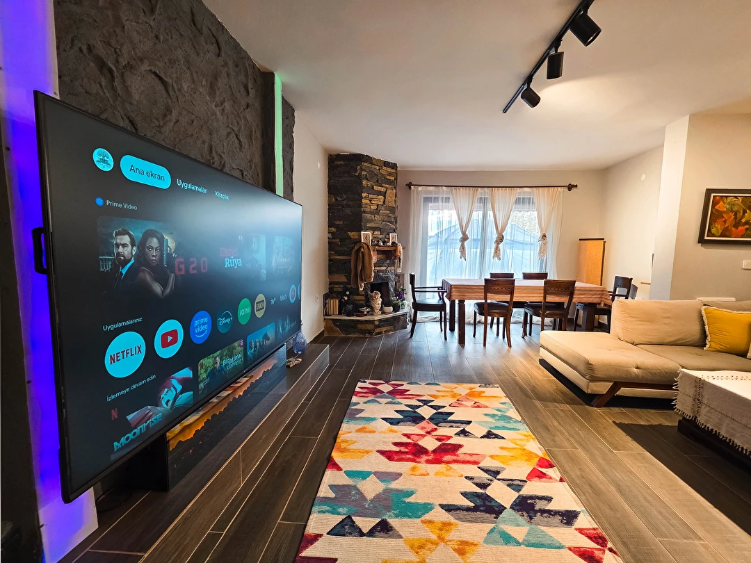 • Ferah ve modern döşenmiş geniş salon 86 inc televizyon
