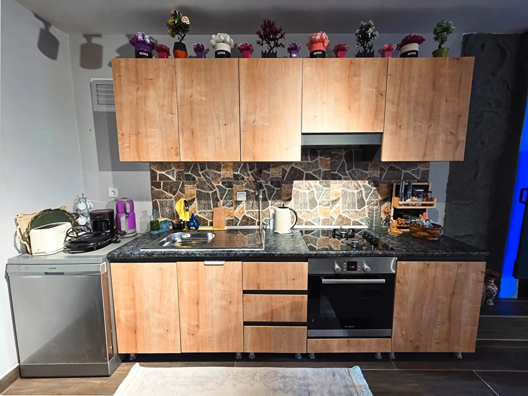 Villamızda kendi yemeklerinizi rahatça yapabilmeniz için tam donanımlı bir mutfak bulunmaktadır. Geniş buzdolabı, fırın, ocak, bulaşık makinesi, çay makinesi, kahve makinesi, tost makinesi gibi tüm mutfak eşyaları mevcuttur.
