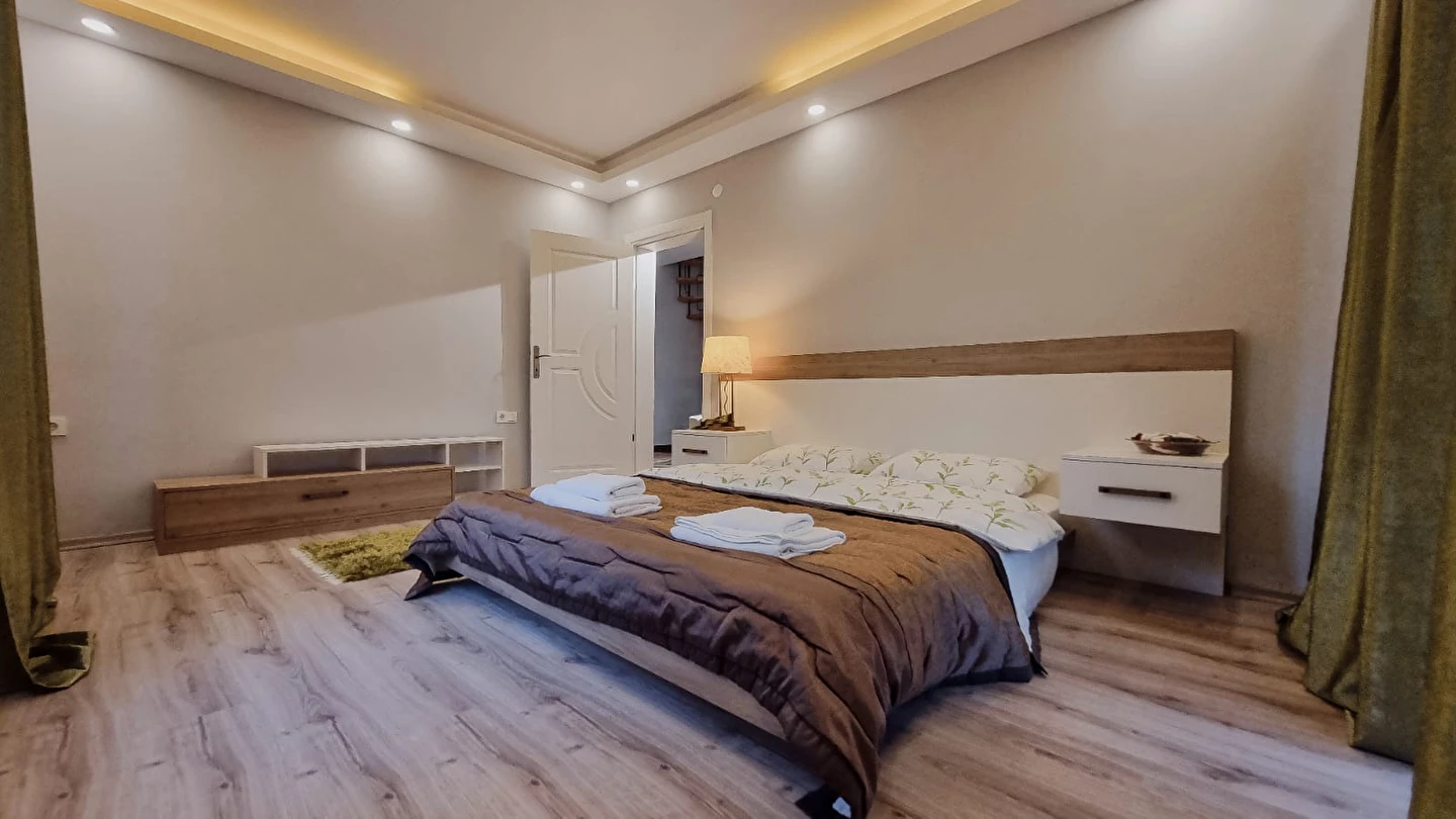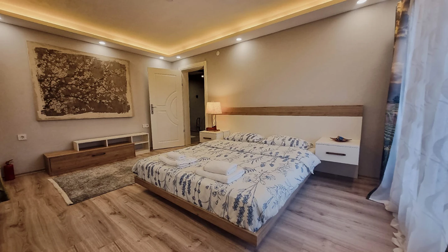 Villamız, geniş alanları sayesinde 8 kişiye kadar rahat konaklama imkanı sunar. Kalabalık aileler ve arkadaş grupları için mükemmel bir seçenek olup, hem iç hem dış mekan aktiviteleri için bolca alan sağlar.