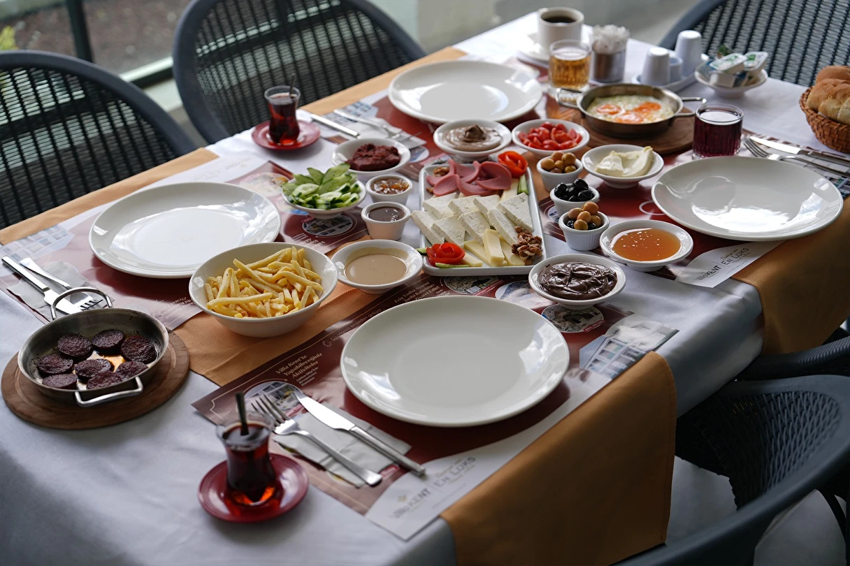 Özel Bahçe, Şark Köşesi, Villa İçi Kapalı Termal Havuz, Türk Hamamı, Ferah Salon, Amerikan Mutfak, 3 Adet Yatak Odası, Jakuzi ve Sauna ile rahatınız düşünülerek tasarlanmıştır. Özel ebeveyn yatak odasında 1 adet çift kişilik yatak, Misafir odasında 2 adet tek kişilik (birleştirilebilir) yatak, Çocuk odasında 2 adet tek kişilik yatak, Oturma Grubu, 6 Kişilik Yemek Masası, Tüm mutfak araç gereçleri ve küçük büyük elektronik ev aletleri. Barbekü Alanı, Camlı Döküm Şömine Sobası, Nostaljik Radyo, Duş Kabinleri, 2 Adet Ebeveyn Banyosu, 4 Adet WC, 2 Adet Saç Kurutma Makinesi, 2 Adet Akıllı Televizyon, Yüksek Hızda İnternet, Telefon, Buzdolabı, Bulaşık Makinesi, Elektronik 4’lü Ocak, Fırın, Kettle, Çaycı Seti, Kahve Makinesi, Dijital Tartı, Çamaşır Makinesi, Boy Aynası ve 6 Kişilik Bornoz ve Havlu bulunmaktadır.
