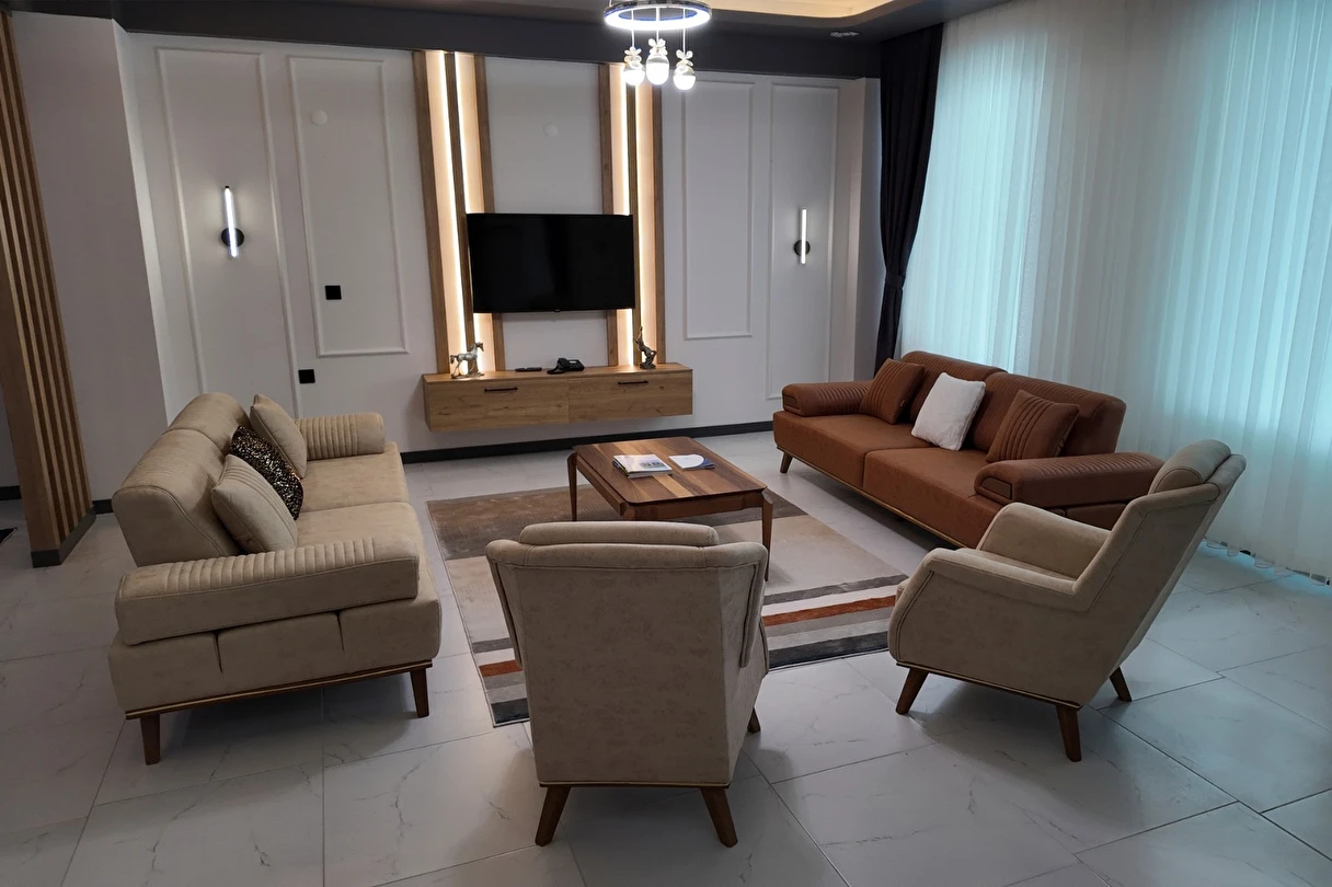 Daha Fazla GösterVilla Kent Termal Otel, misafirlerine konfor, mahremiyet ve doğayla iç içe bir tatil deneyimi sunan özel villa konseptli bir termal tesistir. Modern konaklama anlayışı, doğal çevreyle uyumlu mimari ve özenle planlanmış yaşam alanlarıyla birleşerek huzurlu bir atmosfer oluşturur. Sıcak renk tonları ve seçkin mobilyalarla dekore edilmiş villalar, misafirlerin kendilerini ev konforunda hissetmesini sağlar.