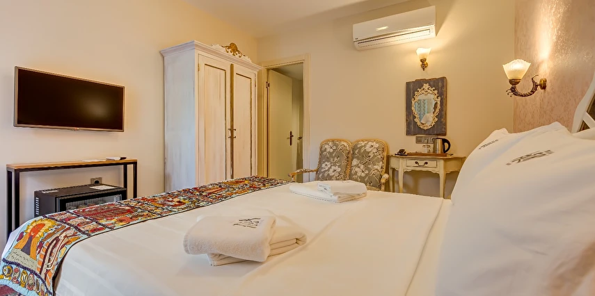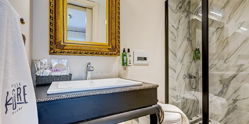 Villa Kore 1975, tümü geçmişe sadık kalınarak kısmen yenilenip düzenlenmiş ve ayrı ayrı döşenmiş odaları ile misafirlerini ağırlıyor. Yalı binasının hemen önünde özel plajı ve arka bölümünde ise kendine ait bir açık havuzu bulunuyor. Slow binasında açık bir yüzme havuzu yer alıyor ve özel plaja sadece bir kaç adım mesafede konumlanan bu odalar, iç dekorasyon ve tasarım açısından yalı binasındaki oda tiplerinden farklılık gösteriyor. Slow binasında 4 farklı tipte oda bulunuyor ve bu binada 12 yaş üzeri misafirler konaklayabiliyor. Tesisin kendine ait otoparkı mevcut. Villa Kore Çeşme'nin tüm odalarında klima, TV, ücretsiz Wi-Fi, buzdolabı, kasa, saç kurutma makinası bulunuyor. Çeşme Ilıca Yıldızburnu’nda bulunan Villa Kore, kendine ait plajı ve her biri farklı zevklere hitap edecek şekilde dekore edilmiş 10 odasıyla misafirlerine hizmet veriyor. Tesisin açık havuzu ise plaja alternatif sunuyor. Tesisin odalarında; klima, TV, ücretsiz WiFi, buzdolabı, kasa, saç kurutma makinası bulunuyor. Misafirlerine otopark olanağı da sunan tesis Slow ve Yalı olmak üzere iki farklı binada hizmet veriyor. Tesisin Slow binasında 12 yaş üzeri misafirler konaklayabiliyor. Çeşme Ilıca Yıldızburnu’nda bulunan Villa Kore, kendine ait plajı ve her biri farklı tasarlanmış 10 odasıyla misafirlerine hizmet veriyor.