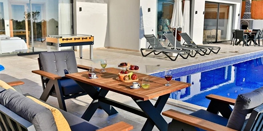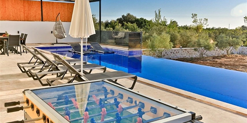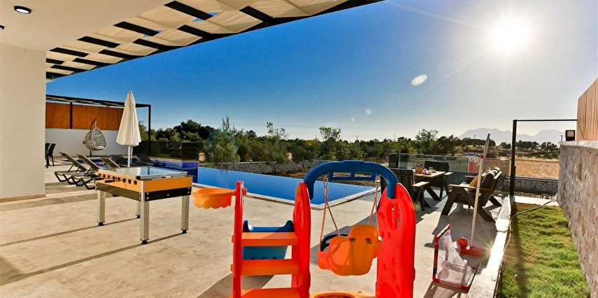 Geniş Bahçe ve Havuz Alanı: Villa Olivet, geniş bir bahçe alanına sahiptir. Korunaklı yüzme havuzu ve havuz terası ile ferah bir ortam sunar. Ayrıca, çocuklar için çocuk havuzu ve oyun parkı mevcuttur.