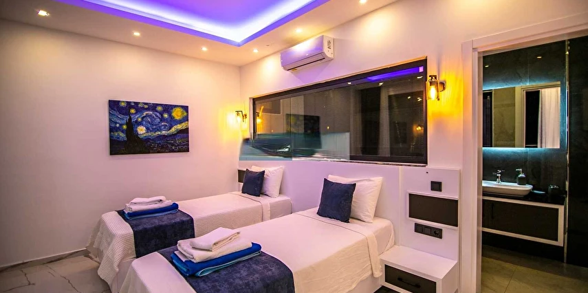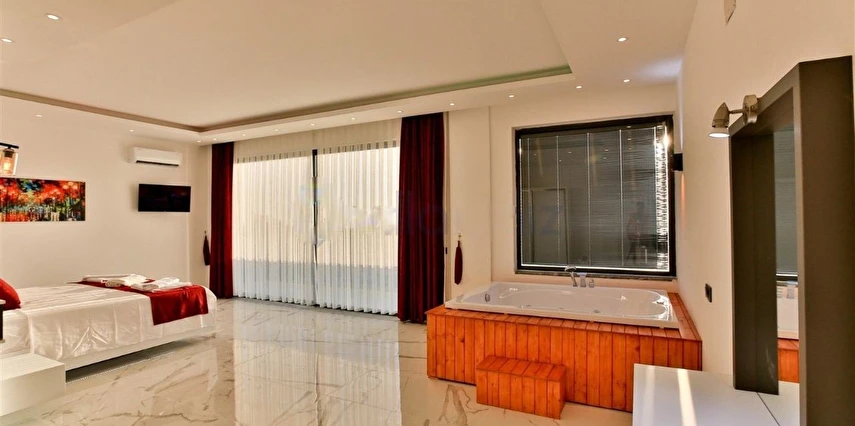 Çift Jakuzili Suit Yatak Odaları: Villada iki adet özel jakuzili suit yatak odası bulunmaktadır. Her iki yatak odasının da Jakuzisi bulunmaktadır. Bu odalarda konforlu bir şekilde dinlenebilir ve lüksün tadını çıkarabilirsiniz.