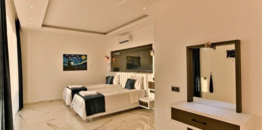 Ek Yatak Olanakları: Villada 2 adet katlanır karyolalı ortopedik yatak bulunmaktadır. Ayrıca, 3. yatak odasında 2 adet tekli açılıp kapanabilen yatak mevcuttur. Bu şekilde toplamda 6 kişi konaklama yapabilir.
