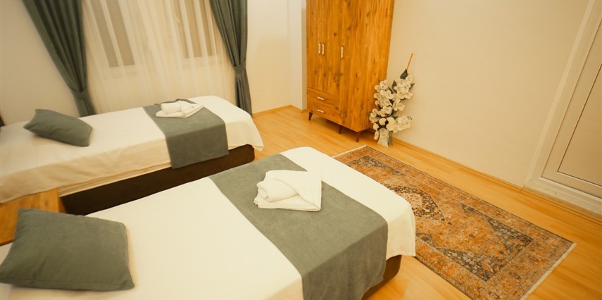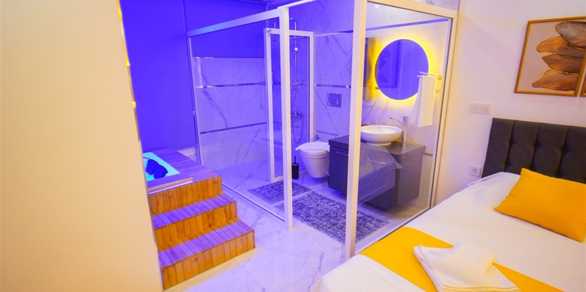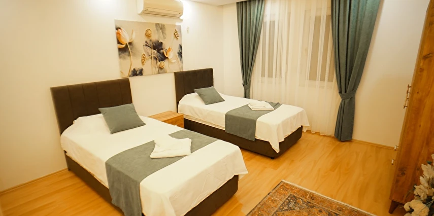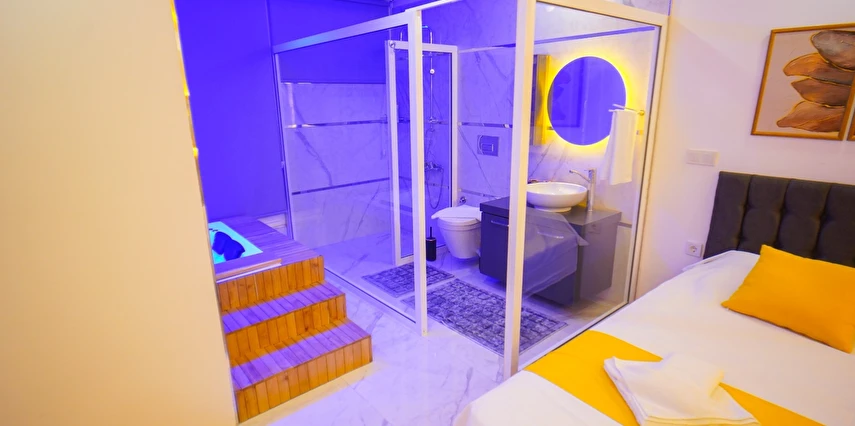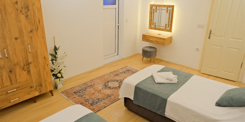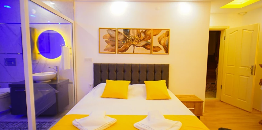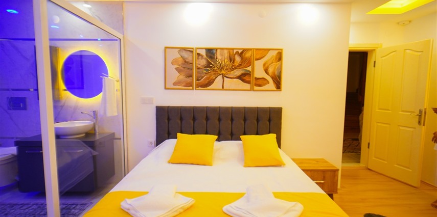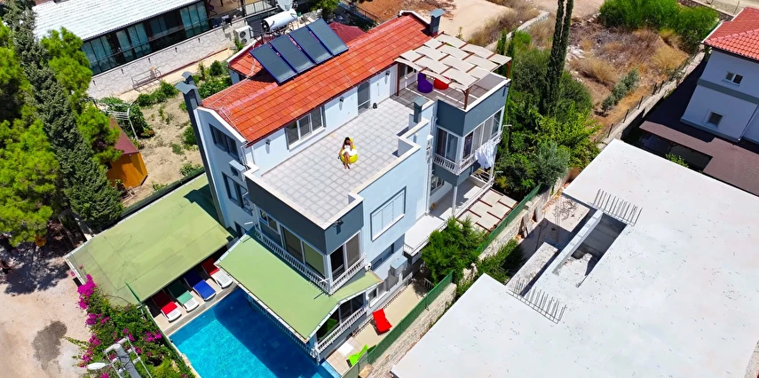 Not: 3 yatak odalı. Kalabalık aileler olursa binanın bodrum katı mevcut. Burada da 1+1 oda var. Ekstra ücret karşılında bu oda da aktif edilebiliyor. Odanın aktif edilmesi için villa sahibinden fiyat alınması gerekiyor.