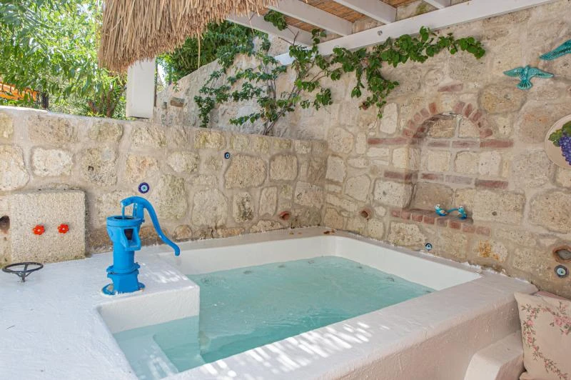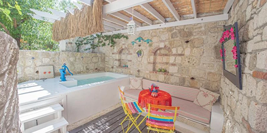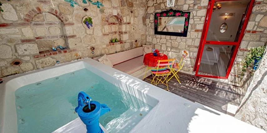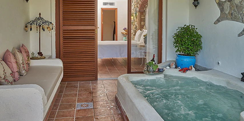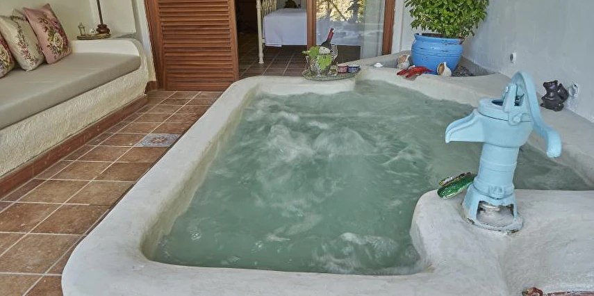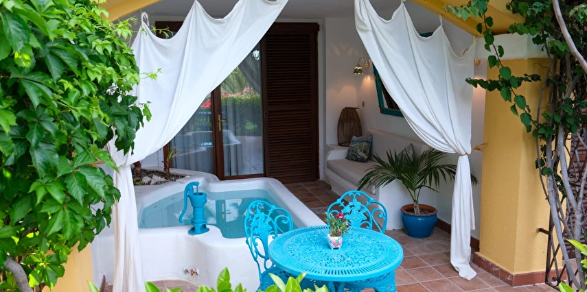 Misafirlerine güne muhteşem bir kahvaltı eşliğinde enerjik bir başlangıç yapma fırsatı sunan Villa Taraça Alaçatı Romantik Otel, barlarıyla da misafirlerinin tatiline lezzet katıyor. Garden Suit - Jakuzili oda tipinin jakuzisi odanın dışında olduğundan dolayı sadece yaz aylarında kullanılmaktadır.