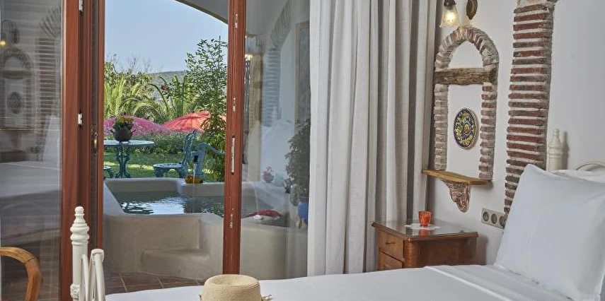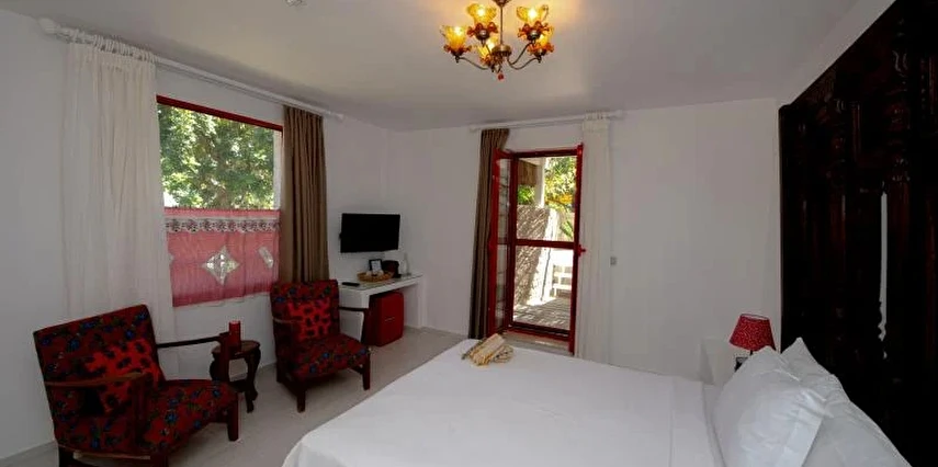 Açık havuzu, şık dekore edilmiş odaları ve göz alıcı mimarisiyle öne çıkan tesiste sabahları zengin bir kahvaltı servisi sunuluyor.