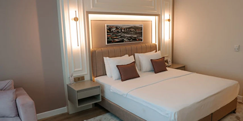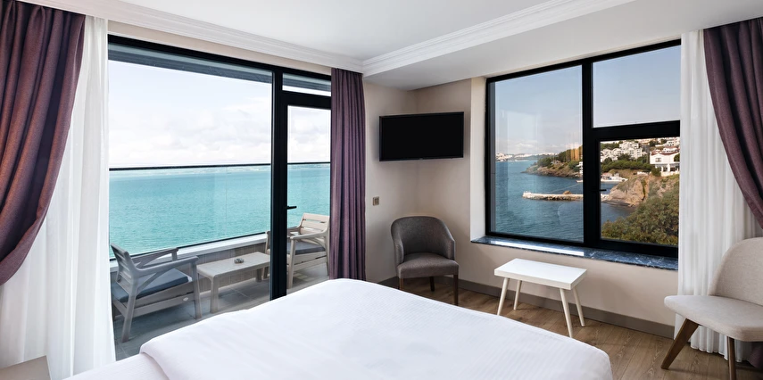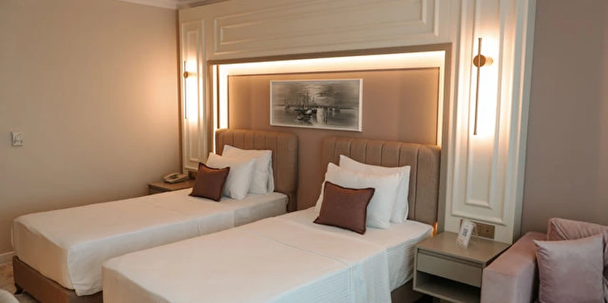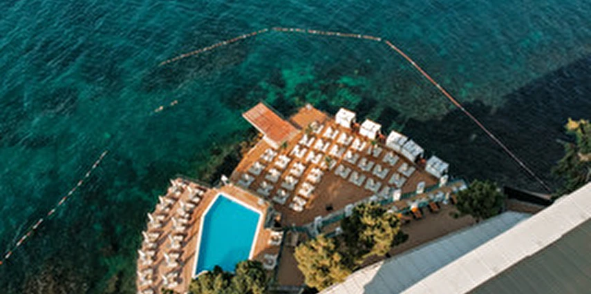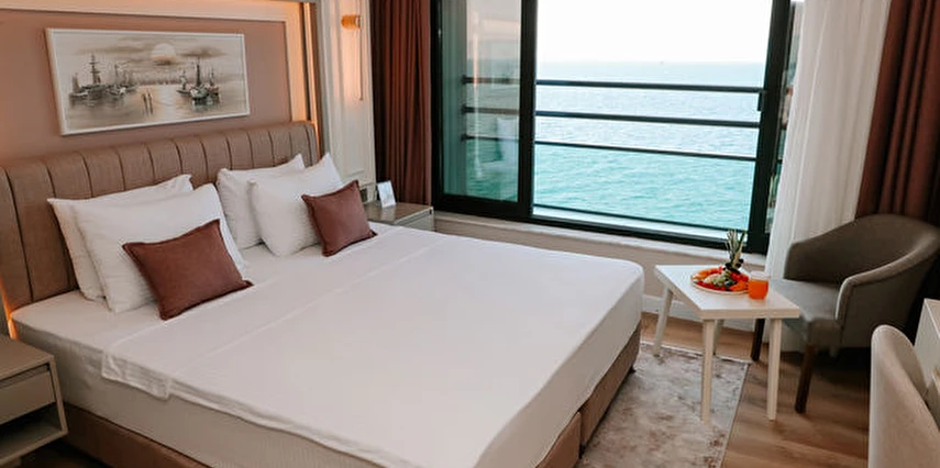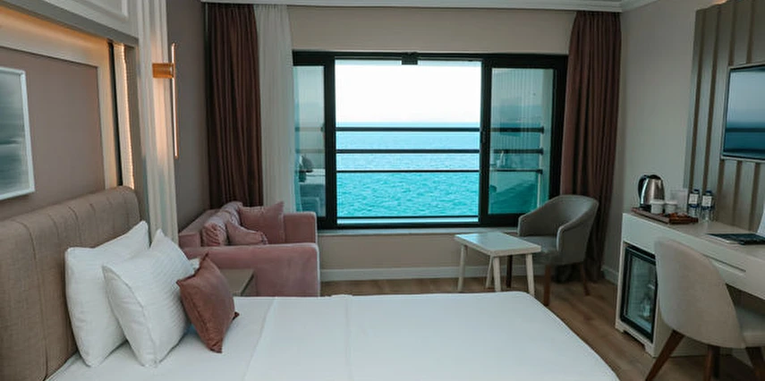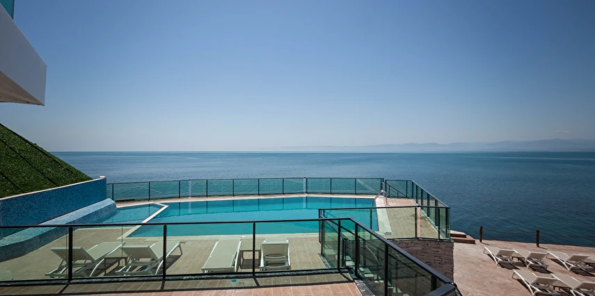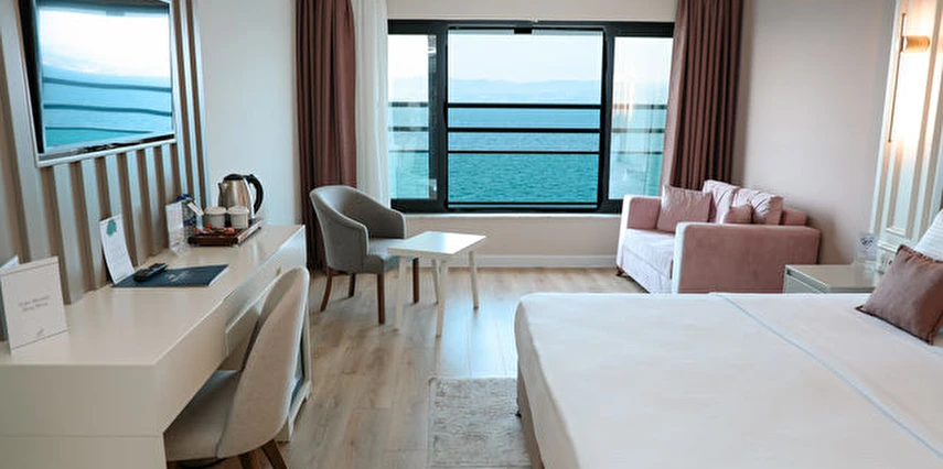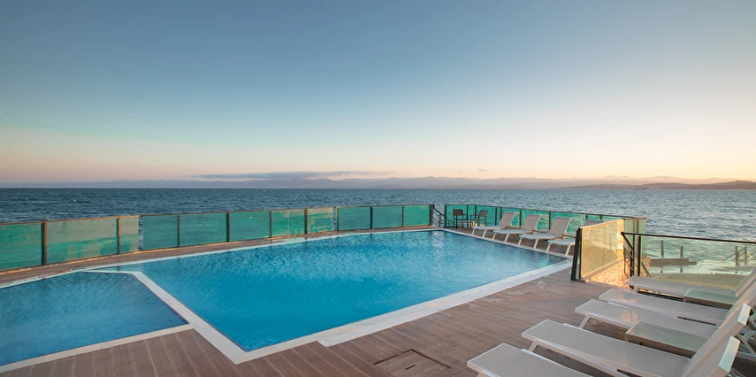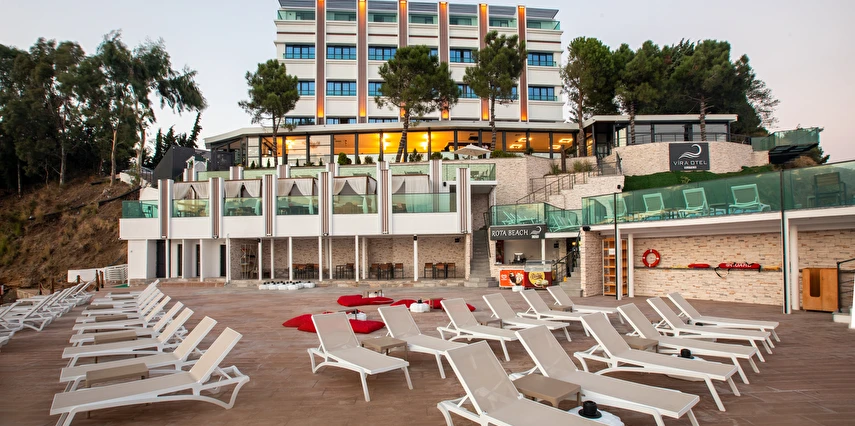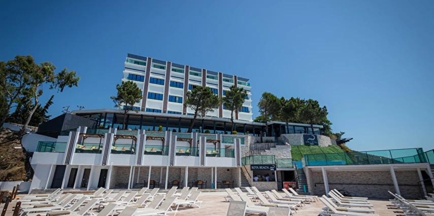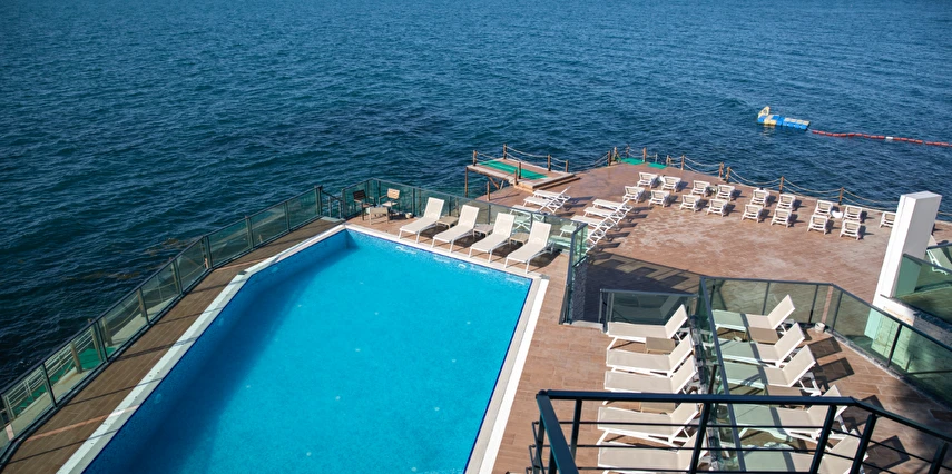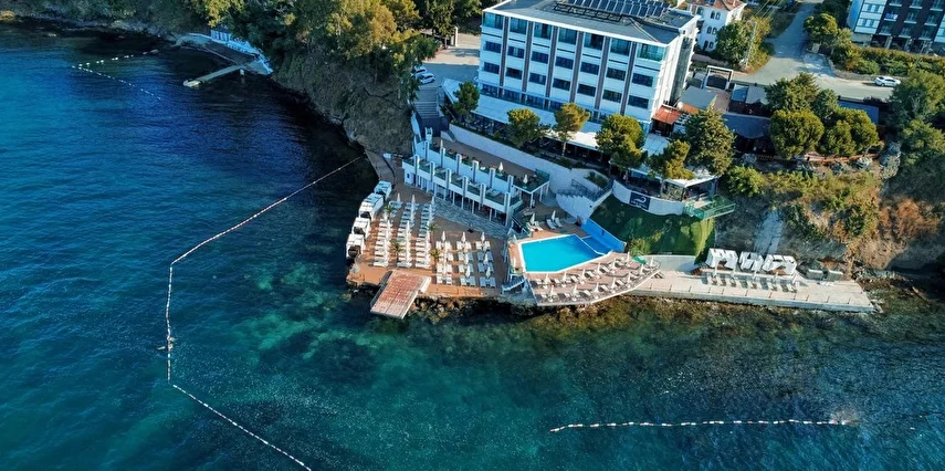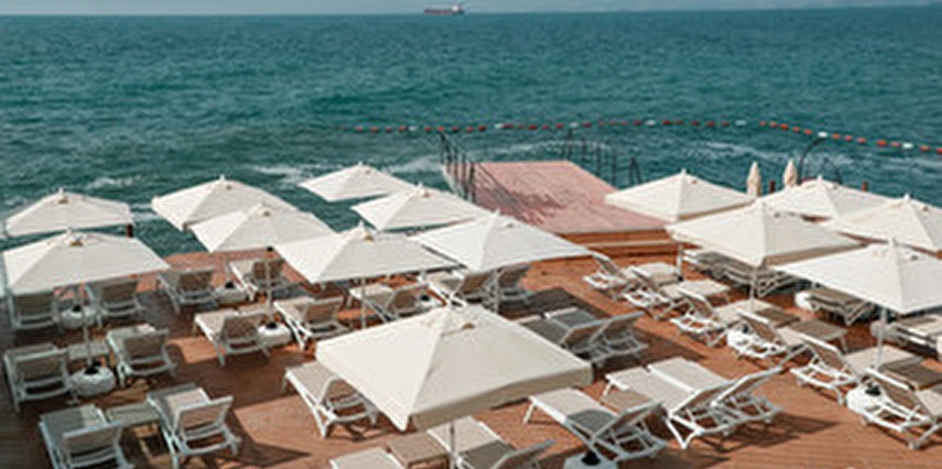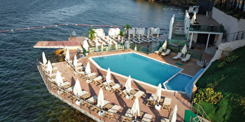 Otelin kendine özel plajı; platform beton bir iskeleden oluşmakta olup, su derinliği suyla temas edilen alanda 30 cm'den başlamaktadır. ***