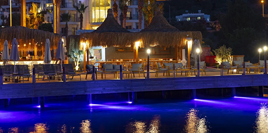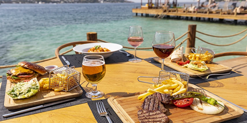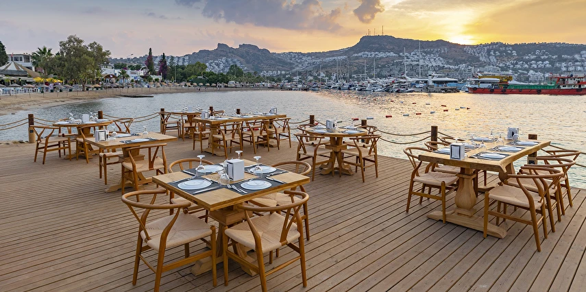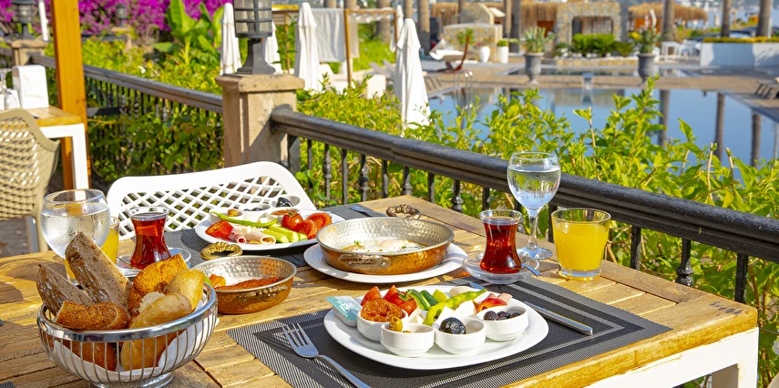 Güne, iskelenin eşsiz manzarası eşliğinde sunulan zengin geleneksel Türk kahvaltısı ile başlayabilir; gün boyunca açık ve kapalı yüzme havuzlarının keyfini çıkarabilirsiniz. Kineba Restaurant, taze ve özenle hazırlanan seçkin Türk mutfağının lezzetleriyle misafirlerine unutulmaz bir gastronomi deneyimi sunmaktadır.