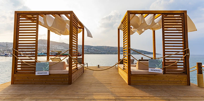 Tesisin kendine özel iskelesi mevcuttur. İskeleden denize girilmektedir. Dalış, yelken, sörf ve su sporları sahilde özel işletme tarafından ücretli hizmet vermektedir.