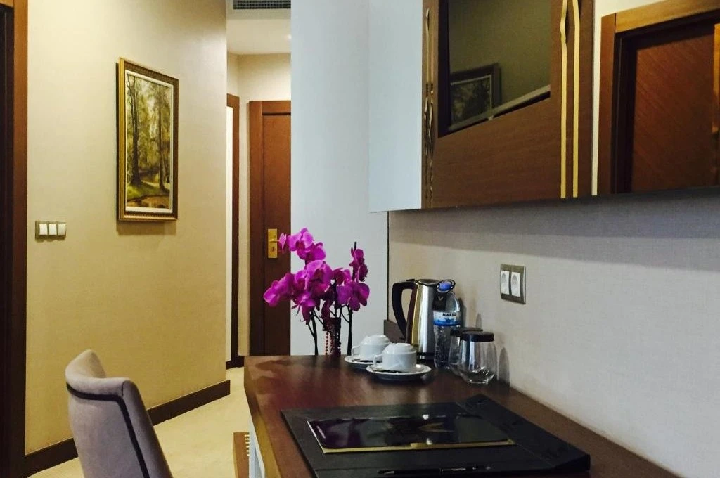 - Tüm odalarda modern dekorasyon kişiye özel kapı zili, temizlik yapınız, rahatsız etmeyiniz seçenekleri ile dijital hizmet alma panelleri, VRF Mitsubishi electric bireysel kontrollü klima sistemi, LCD TV, emanet kasa, saç kurutma makinesi ve ücretsiz Wi-Fi, minibar, çalışma masası, boy aynası, makyaj aynası, bornoz ve terlik bulunmakta olup odamızda yer alan çay, kahve ve kettle set-up'ı 1 adet su ile ücretsiz olarak kullanımınıza sunulmuştur.