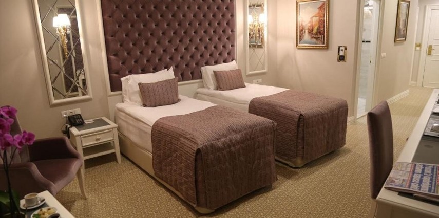 - Hotelimizde 15 adet Twin ve 16 adet French ile 31 adet standart oda, 3 adet Deluxe Oda, 2 adet Suite ve 1 adet King Suite olmak üzere toplam 37 adet tam donanımlı oda bulunmaktadır.